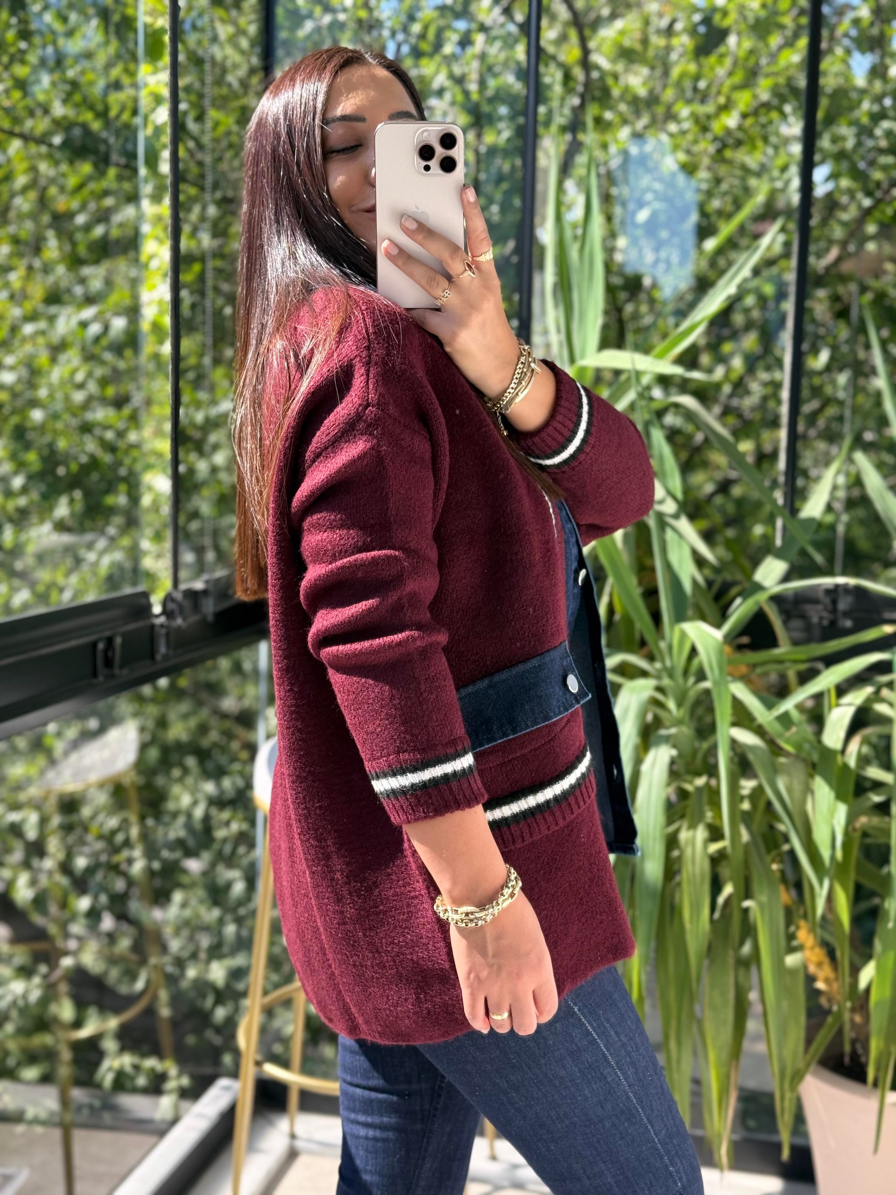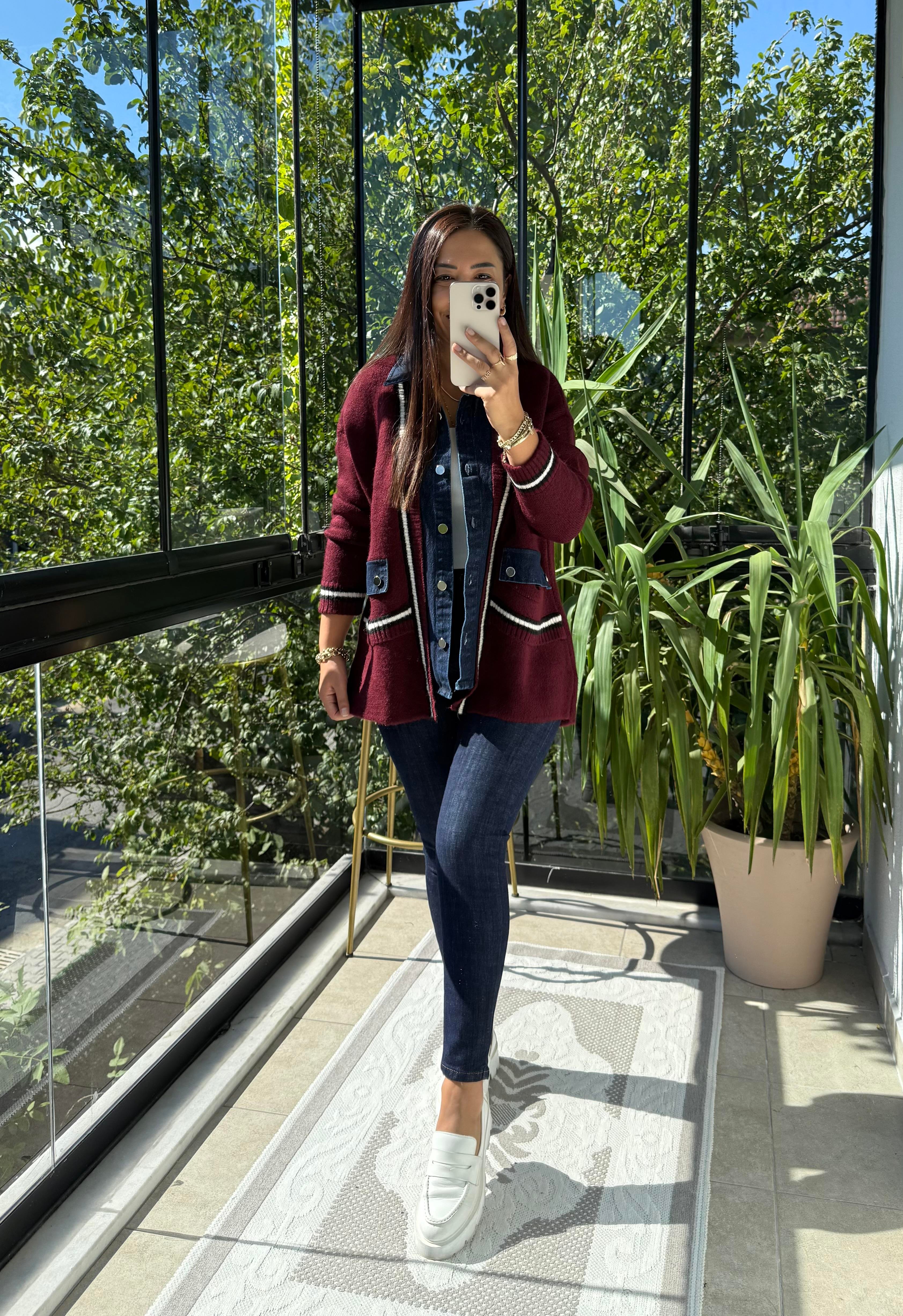 Angora Hırka Kot Detaylı Bordo