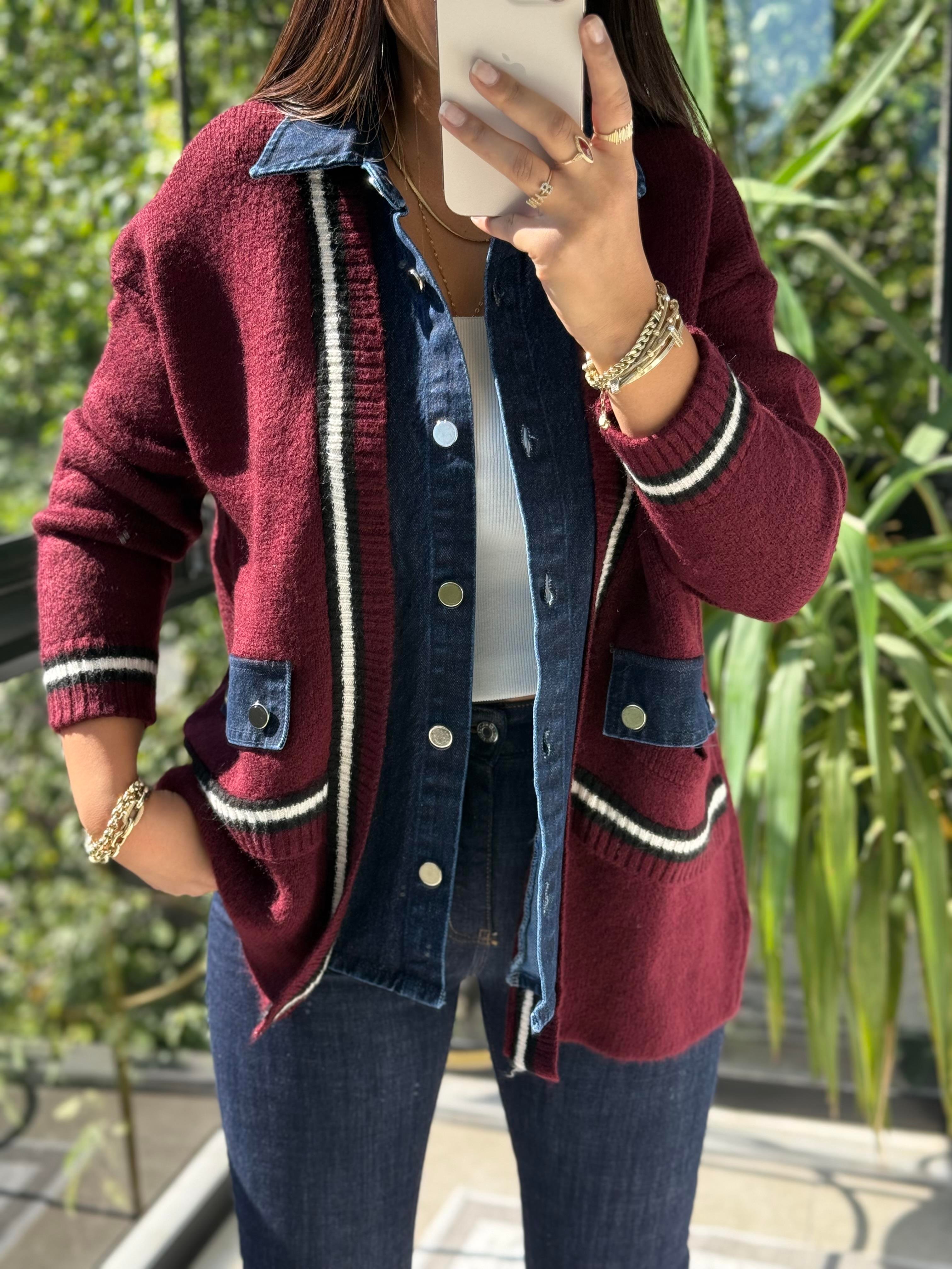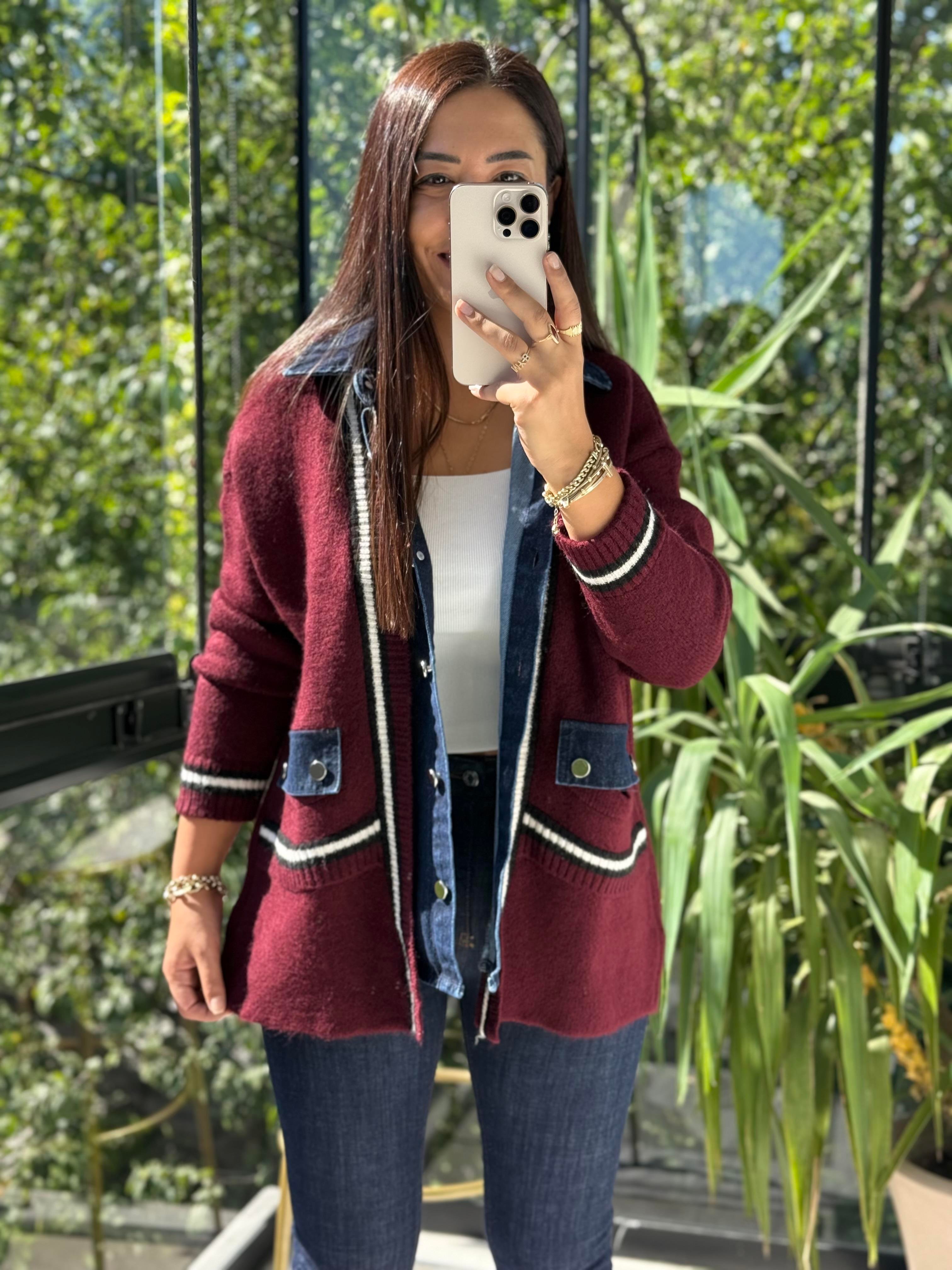 Angora Hırka Kot Detaylı Lacivert Angora Hırka Kot Detaylı Krem Angora Hırka Kot Detaylı Bordo
