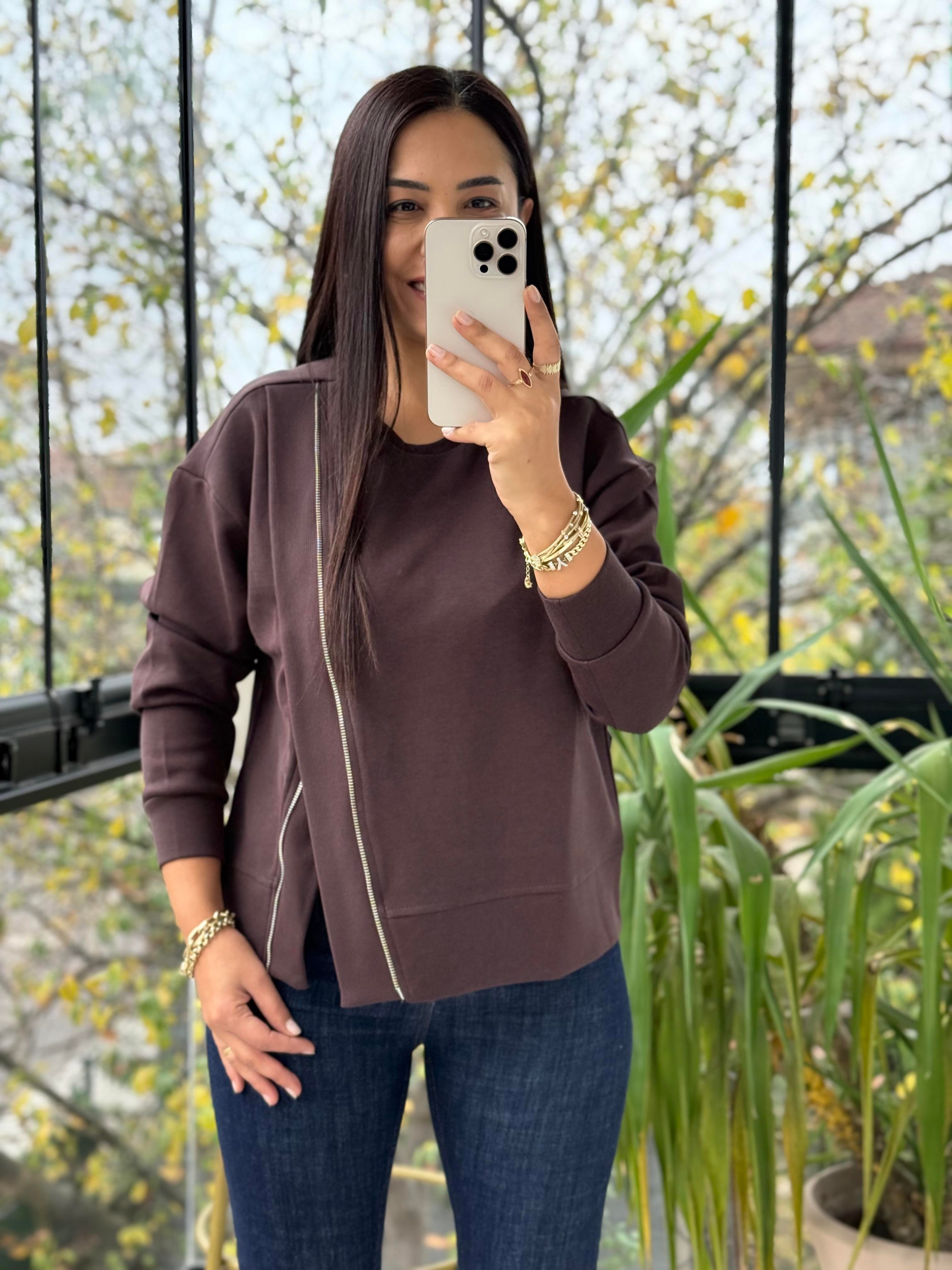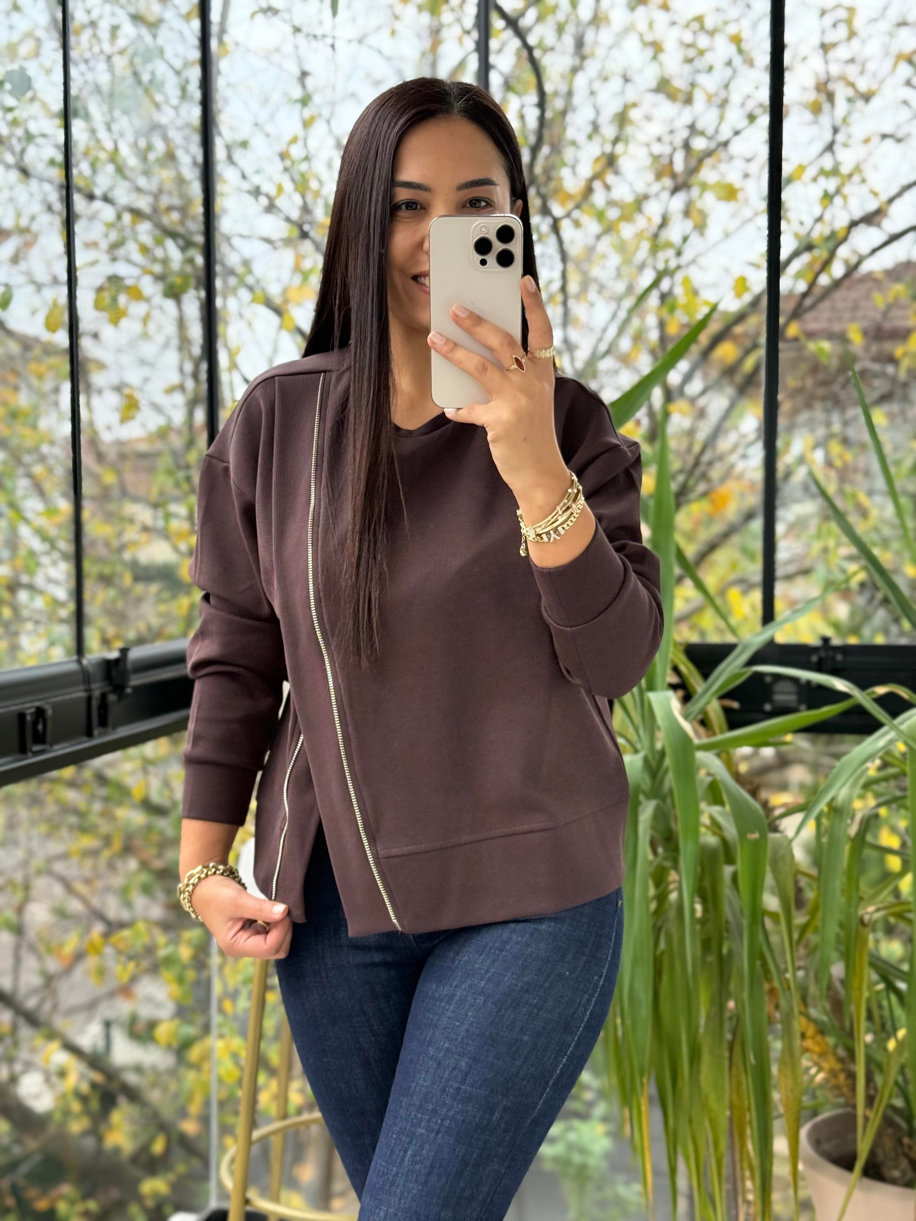 Asimetrik fermuarlı Sweathirt Siyah Asimetrik fermuarlı Sweathirt Kahve