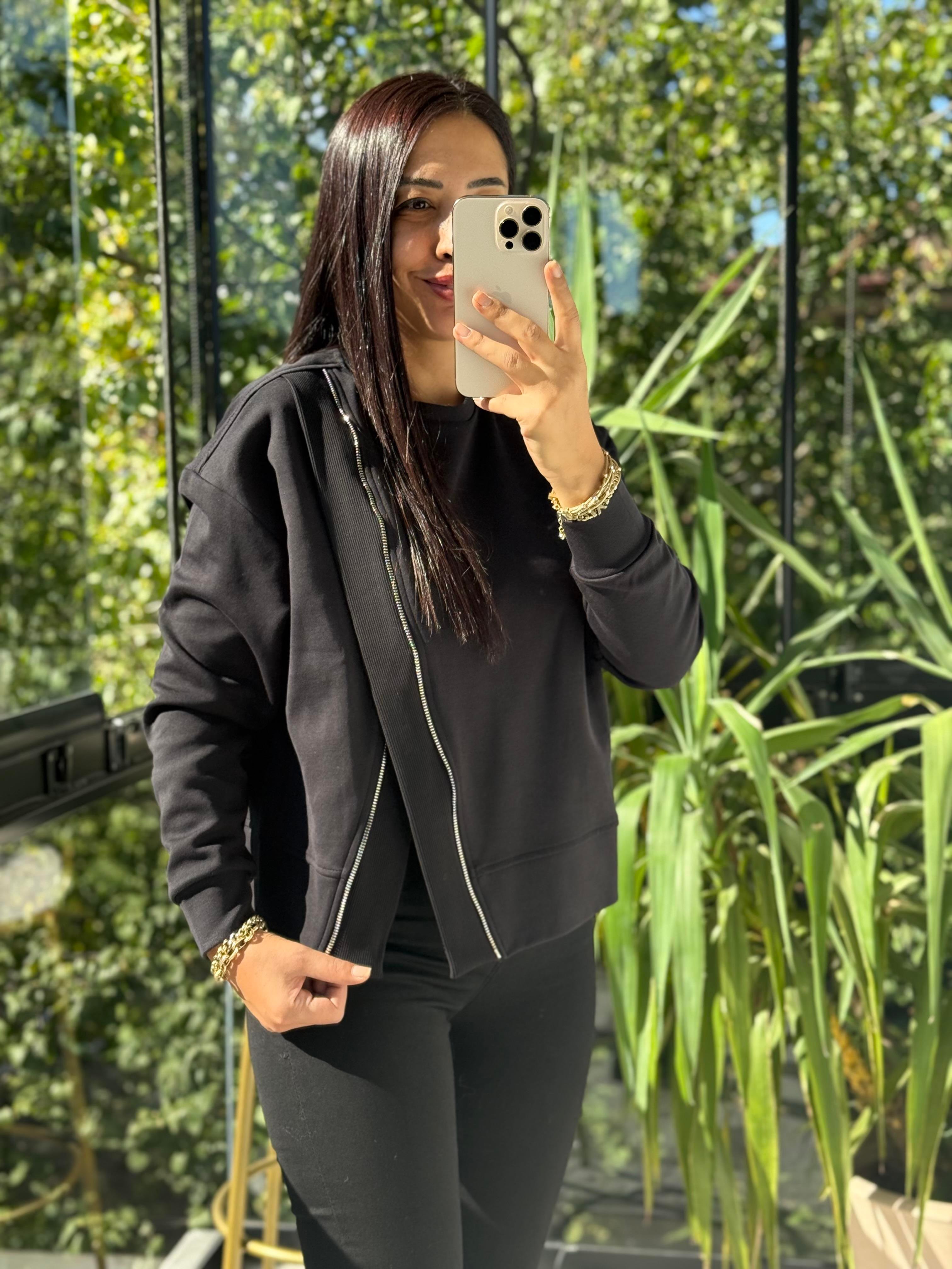 Asimetrik fermuarlı Sweathirt Siyah