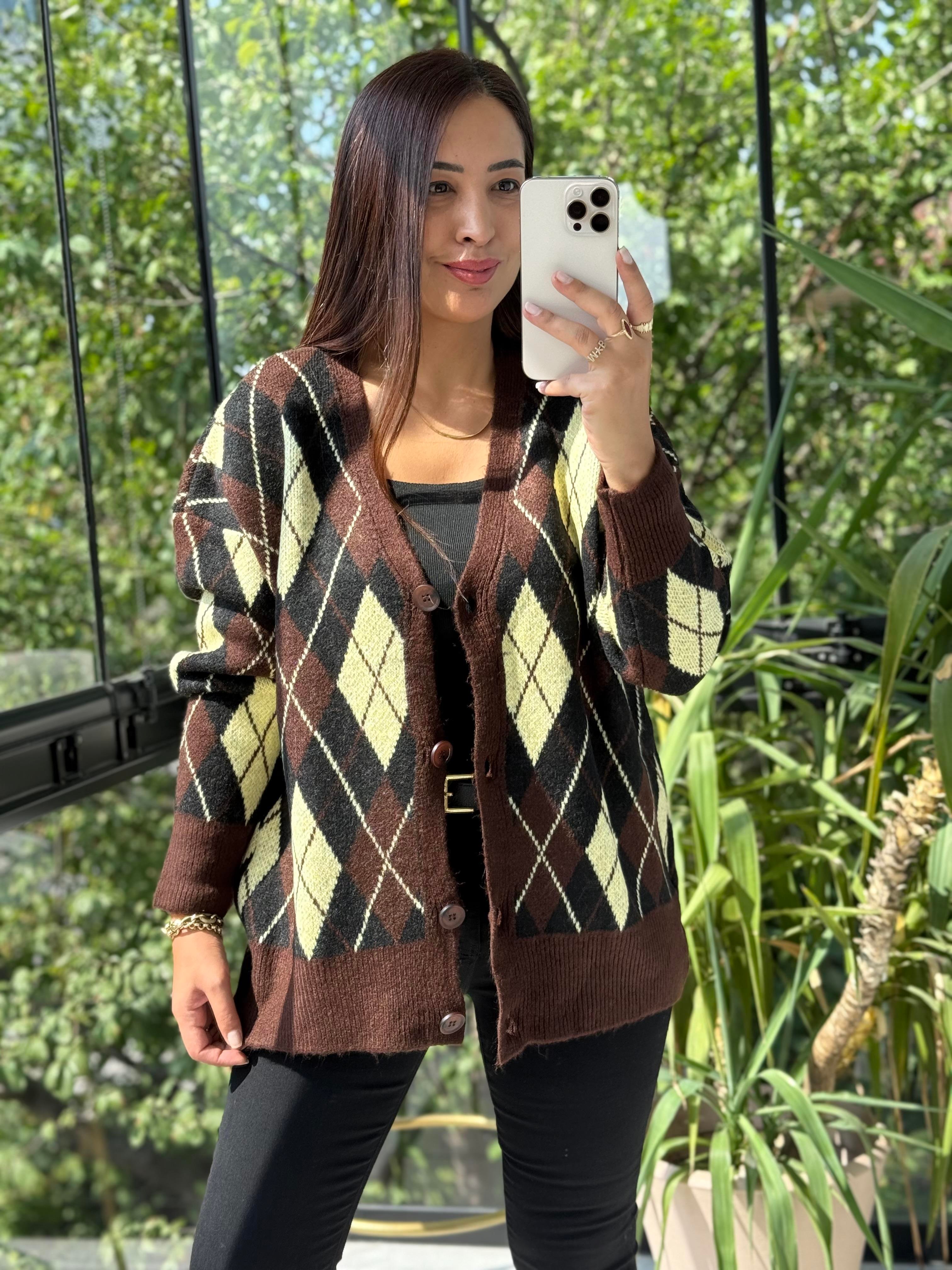 Baklava Jakarlı Hırka Kahve