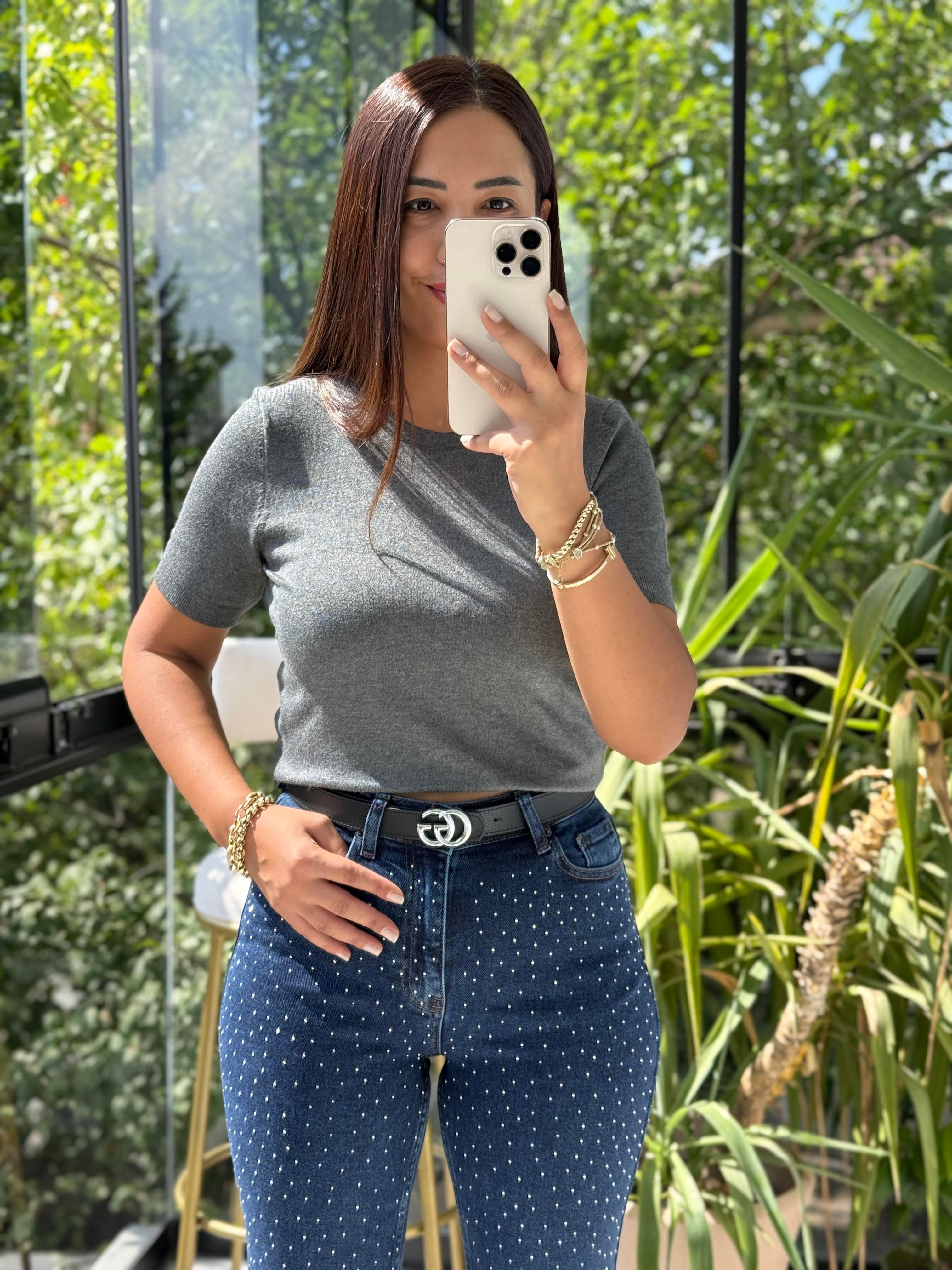 Bisiklet Yaka Kısa Kol Basic Triko Bluz Füme