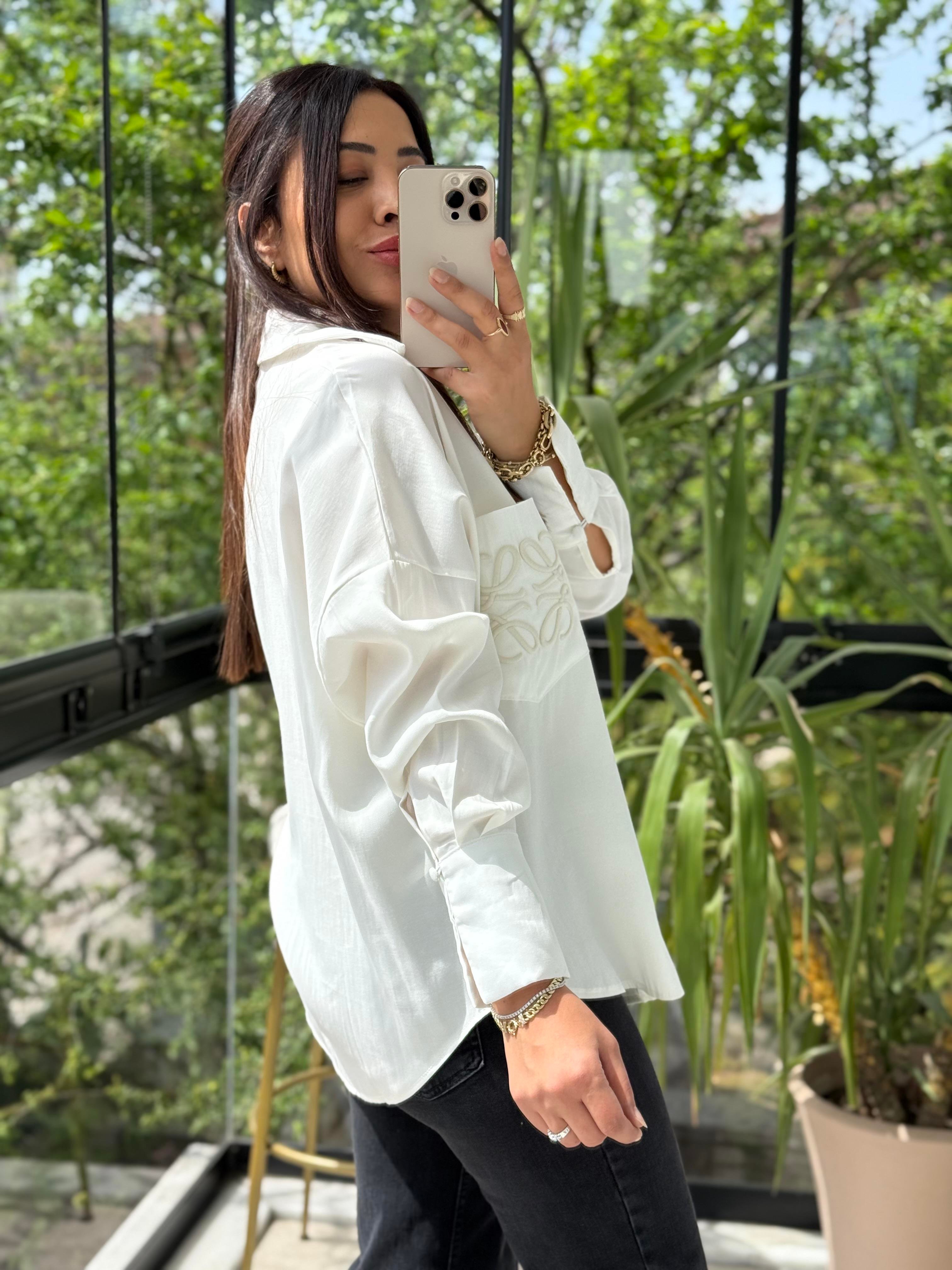 Cebi Nakışlı Gömlek Beyaz
