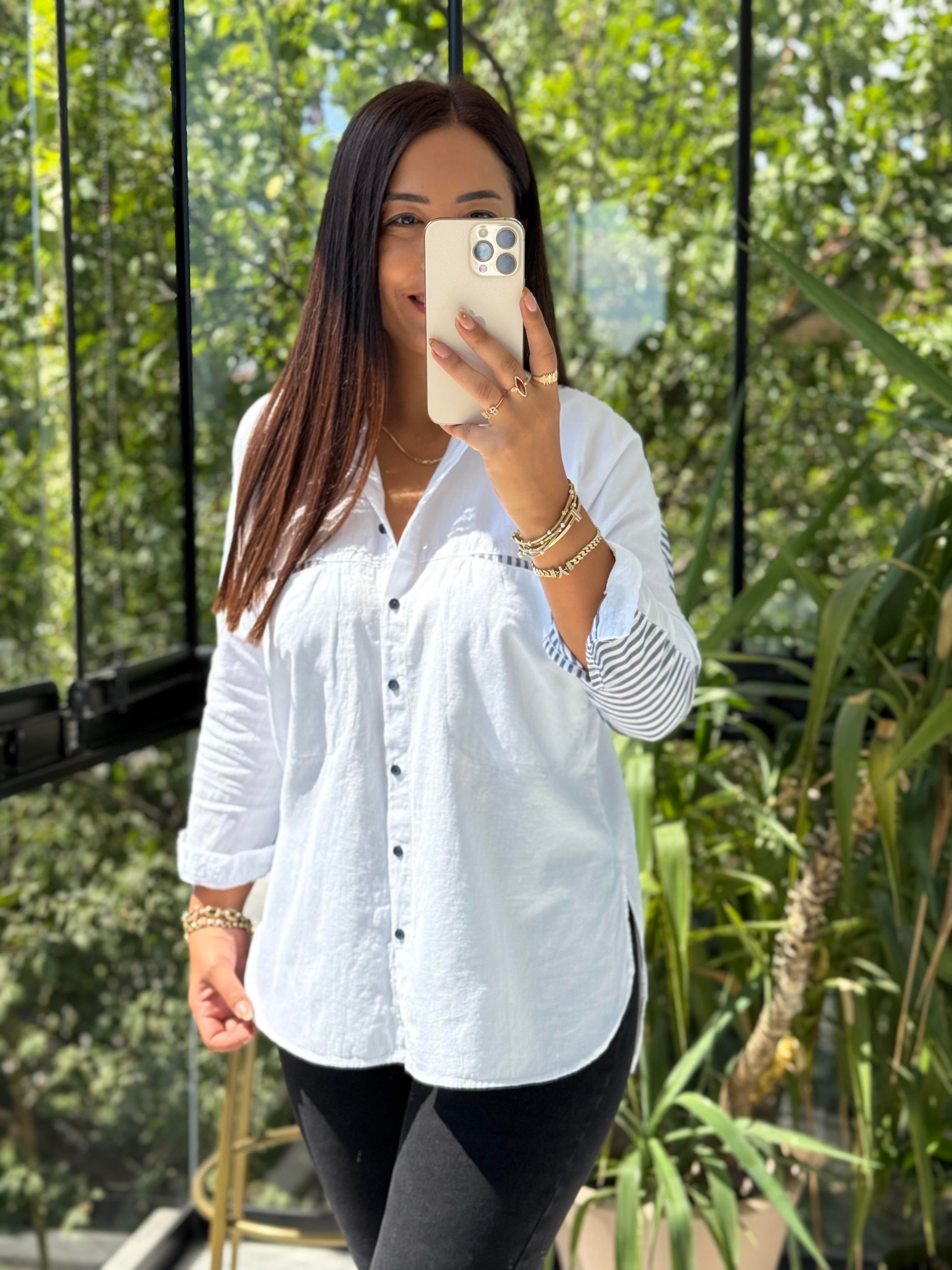 Cep Detaylı Arkası Çizgili Gömlek Beyaz