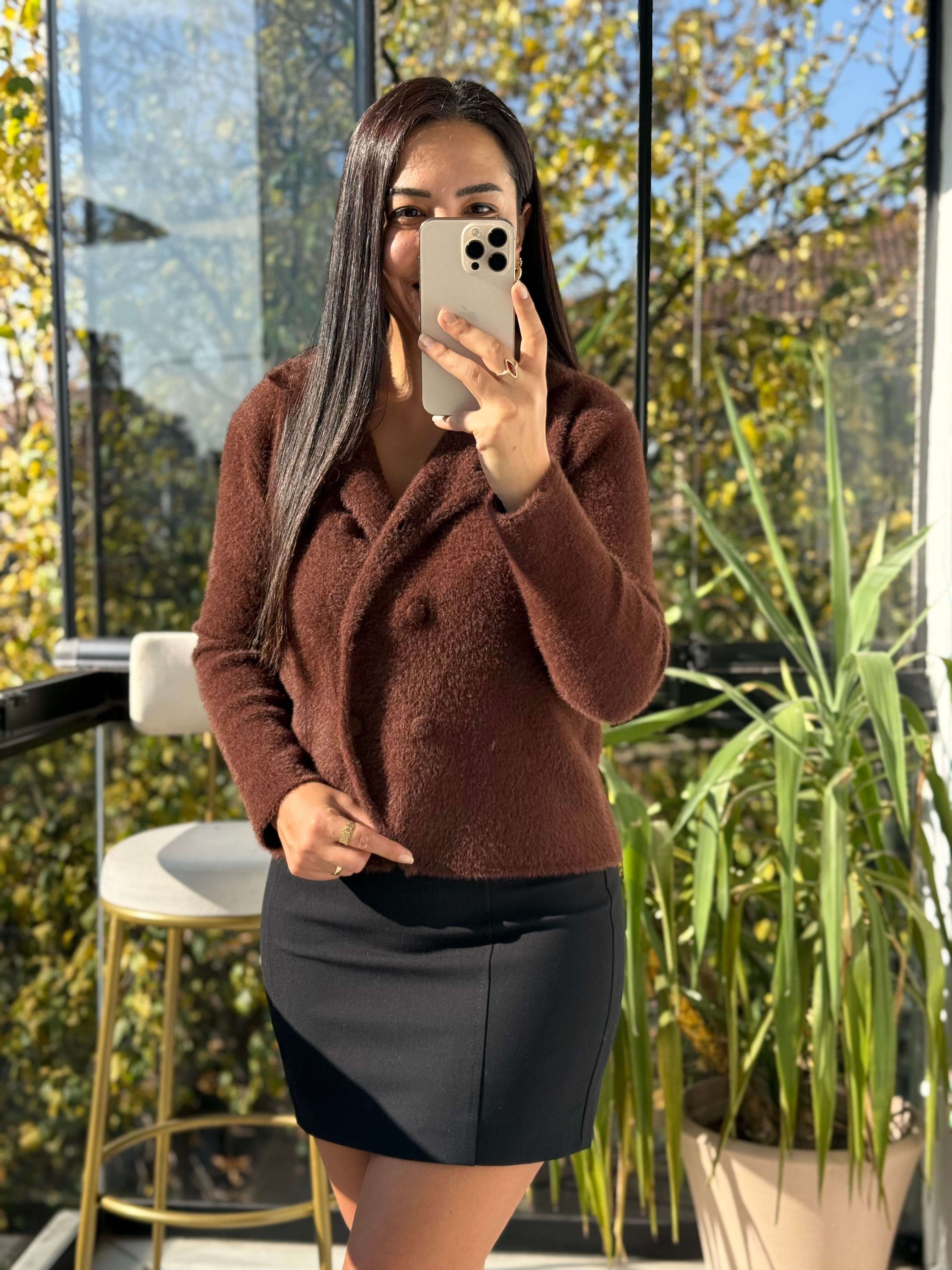 Çift Düğmeli Angora Hırka kahve