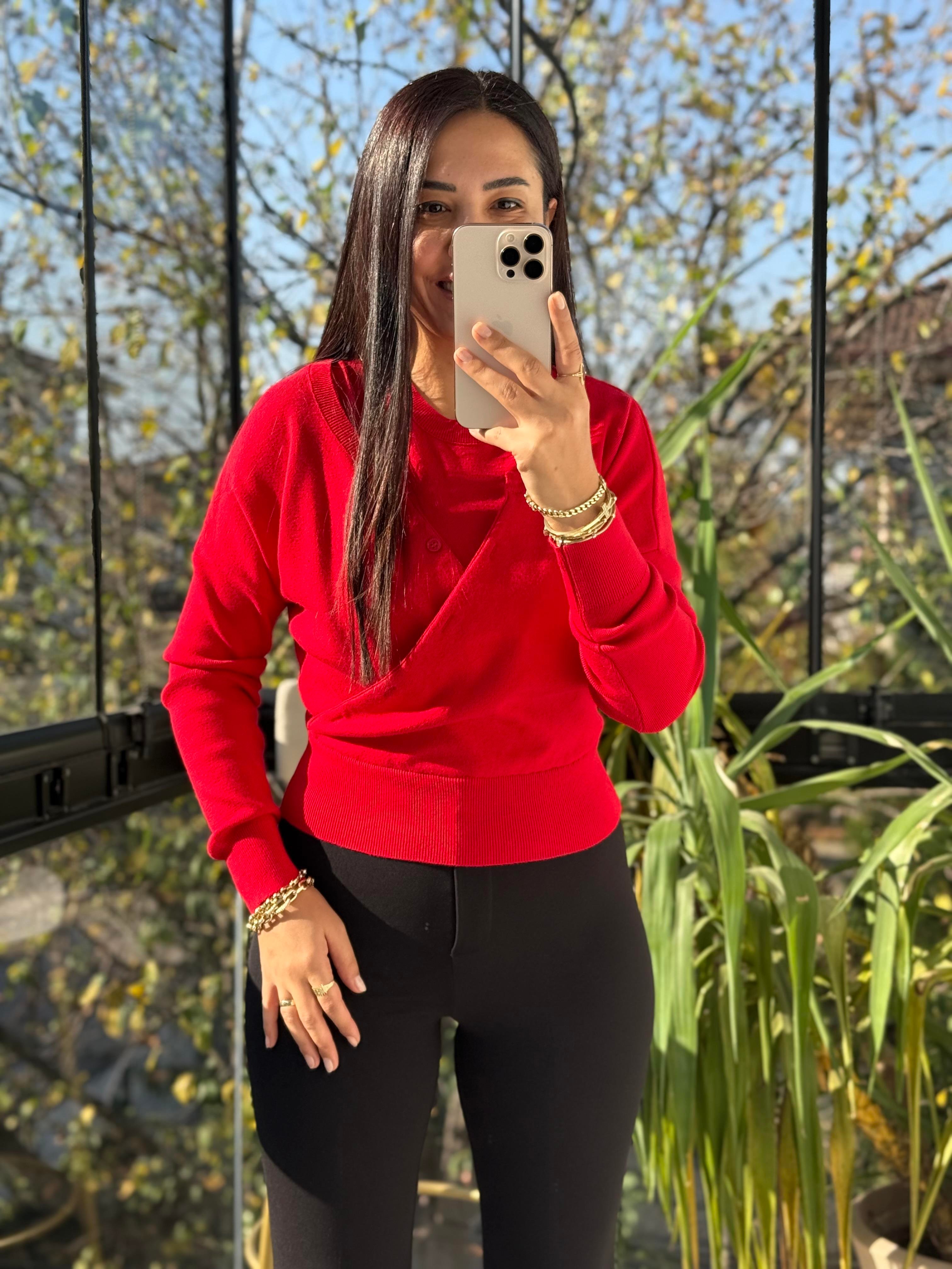 Çift Parçalı Triko Bluz Kırmızı