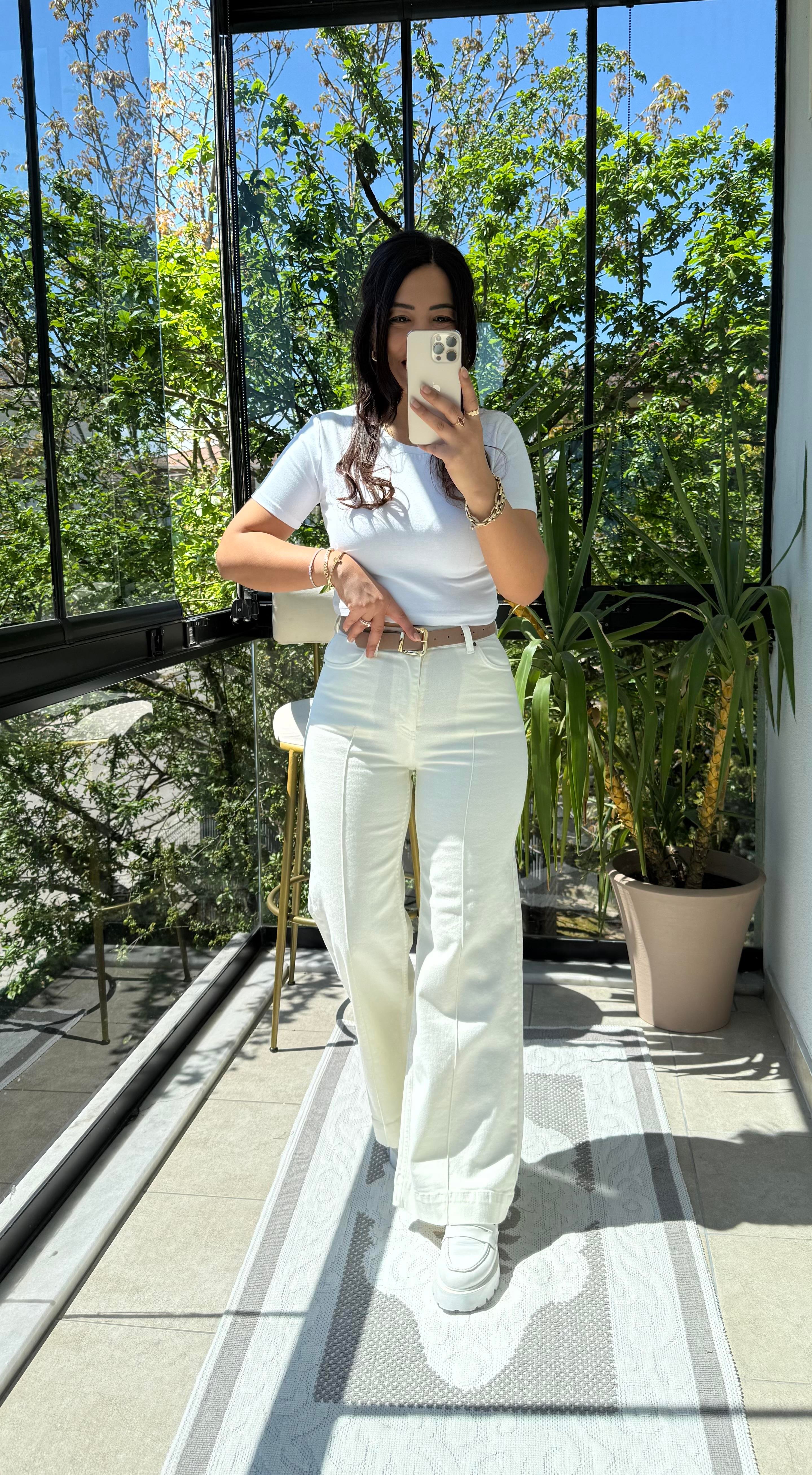 Çımalı Kot Pantolon Krem