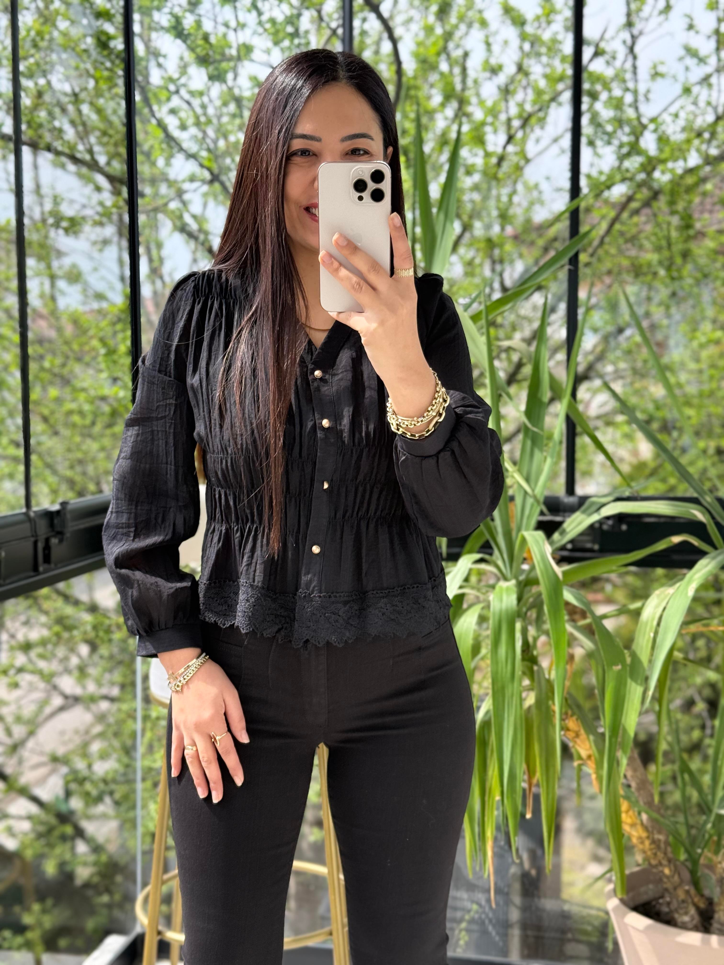 Dantel Rüya Gömlek Bluz Siyah