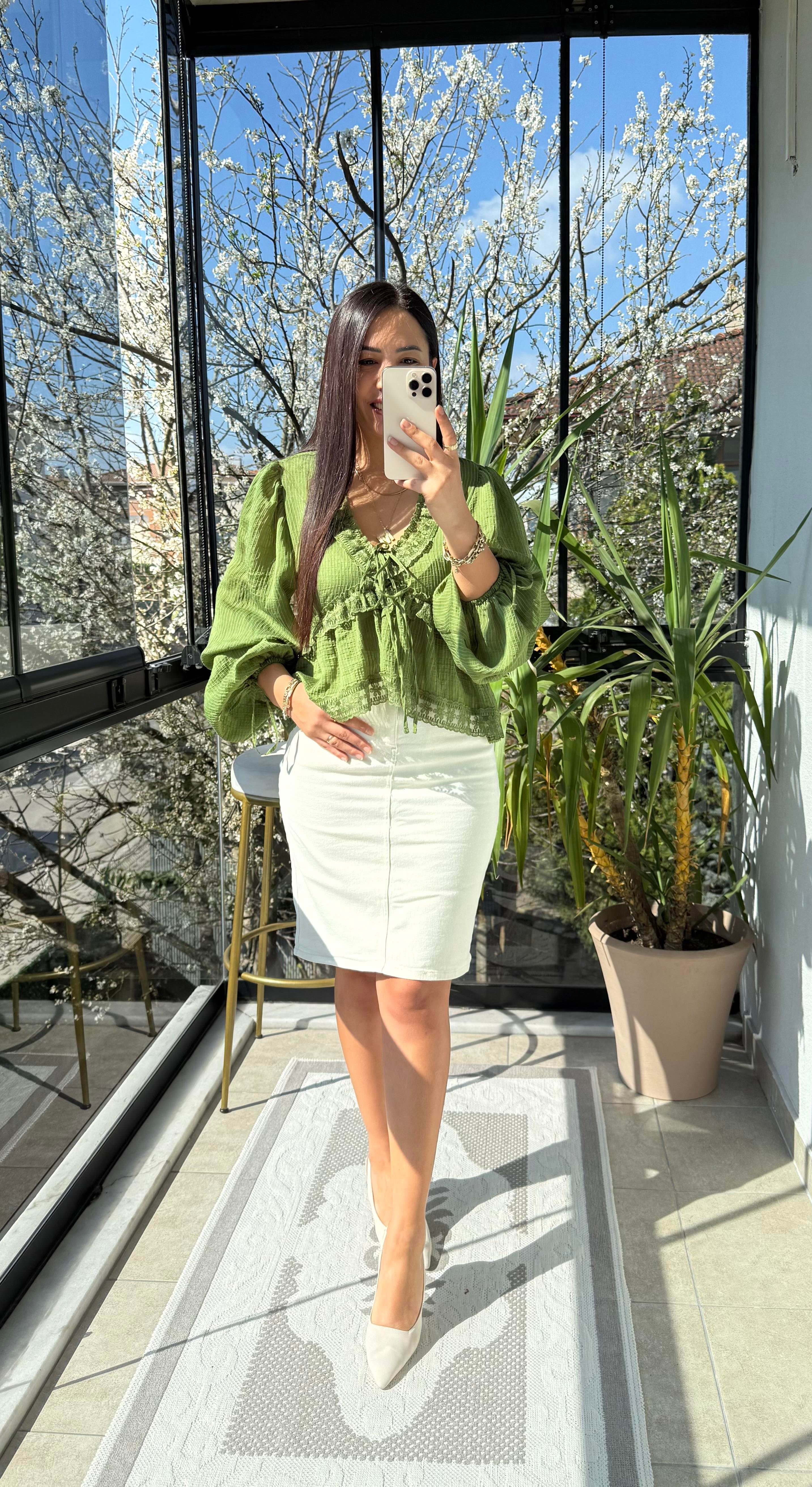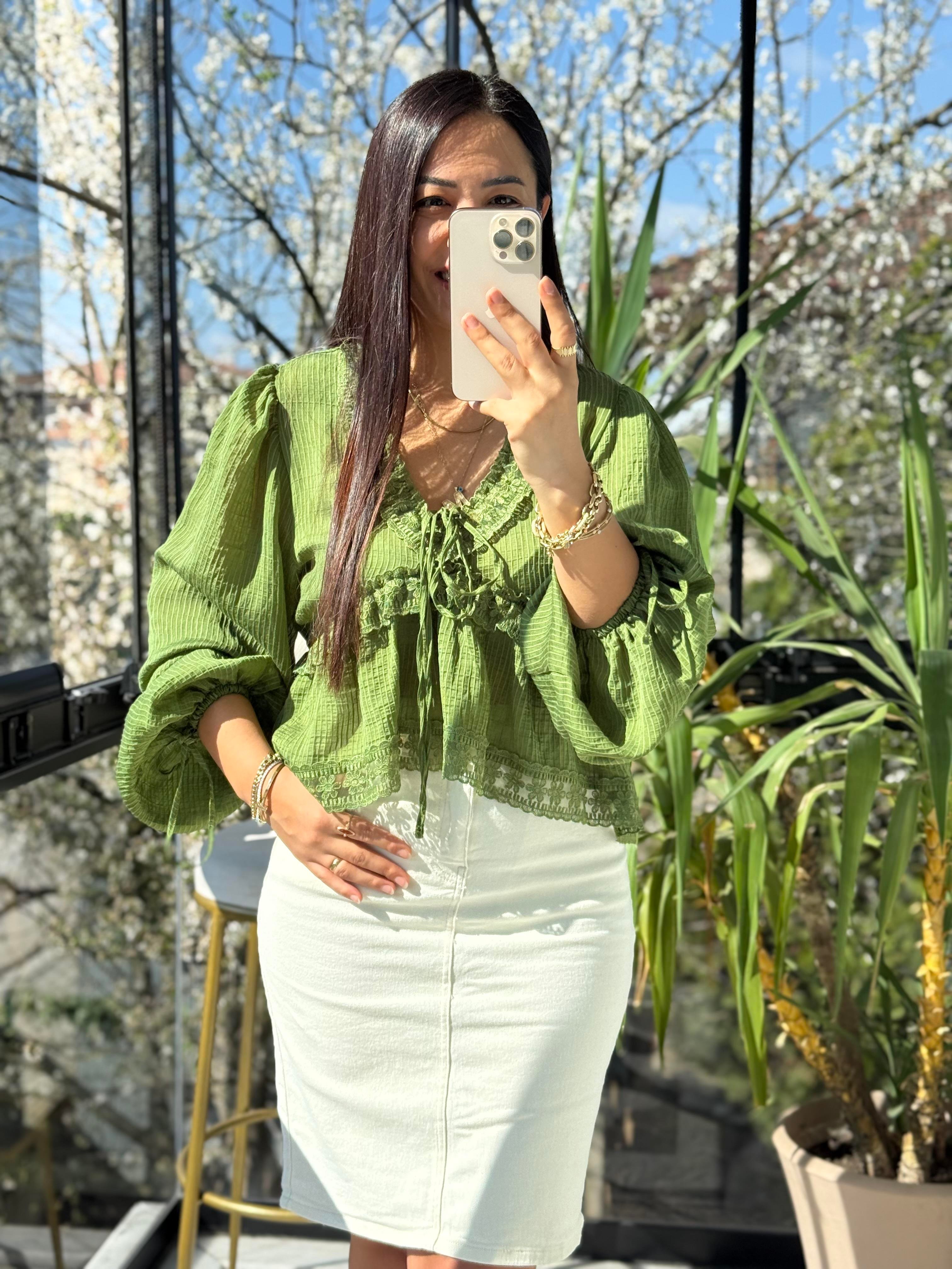 Dantelli Uzun Kol Bluz Yeşil
