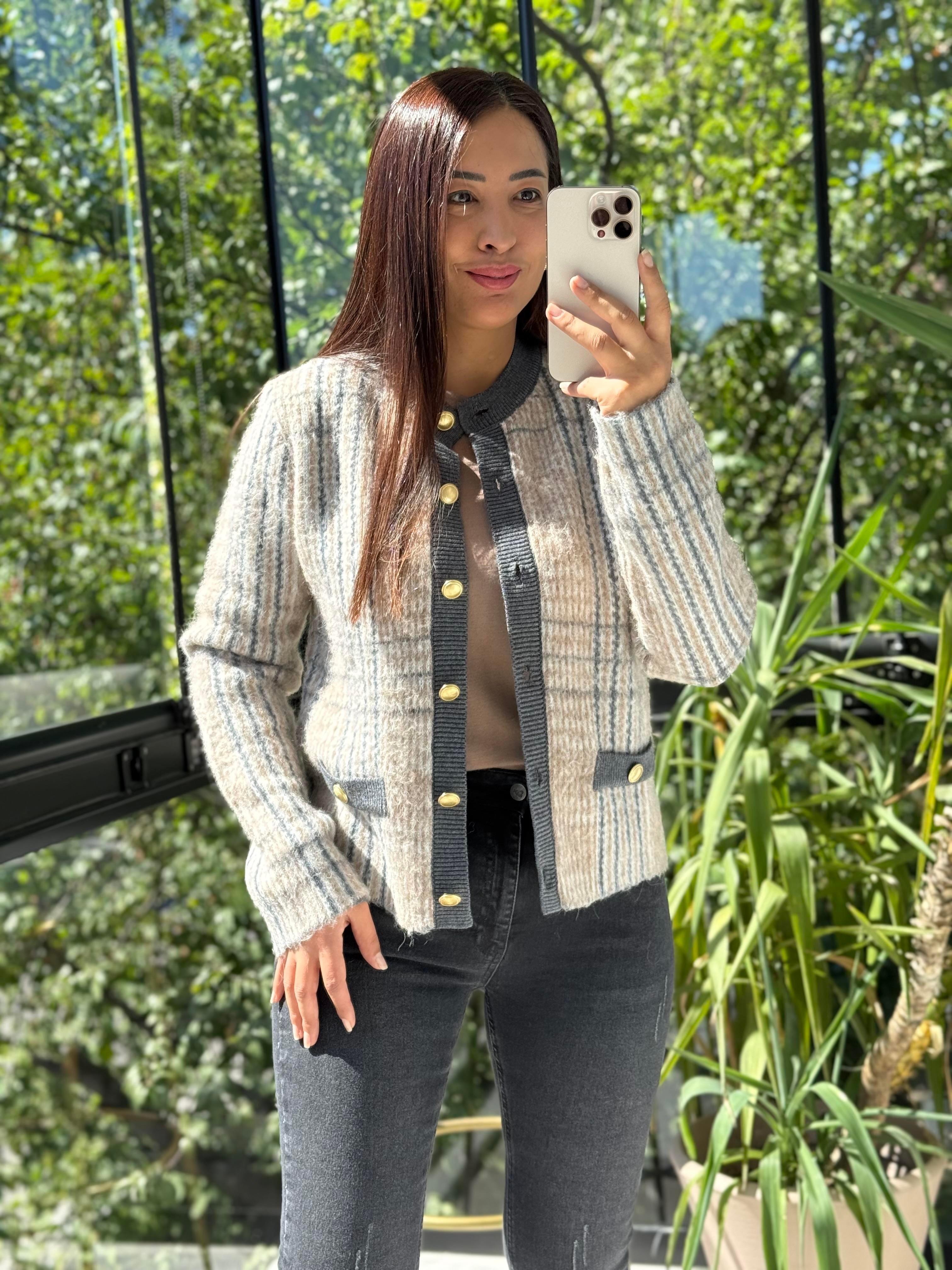 Dilvin Desenli Şardonlu Düğmeli Triko Hırka