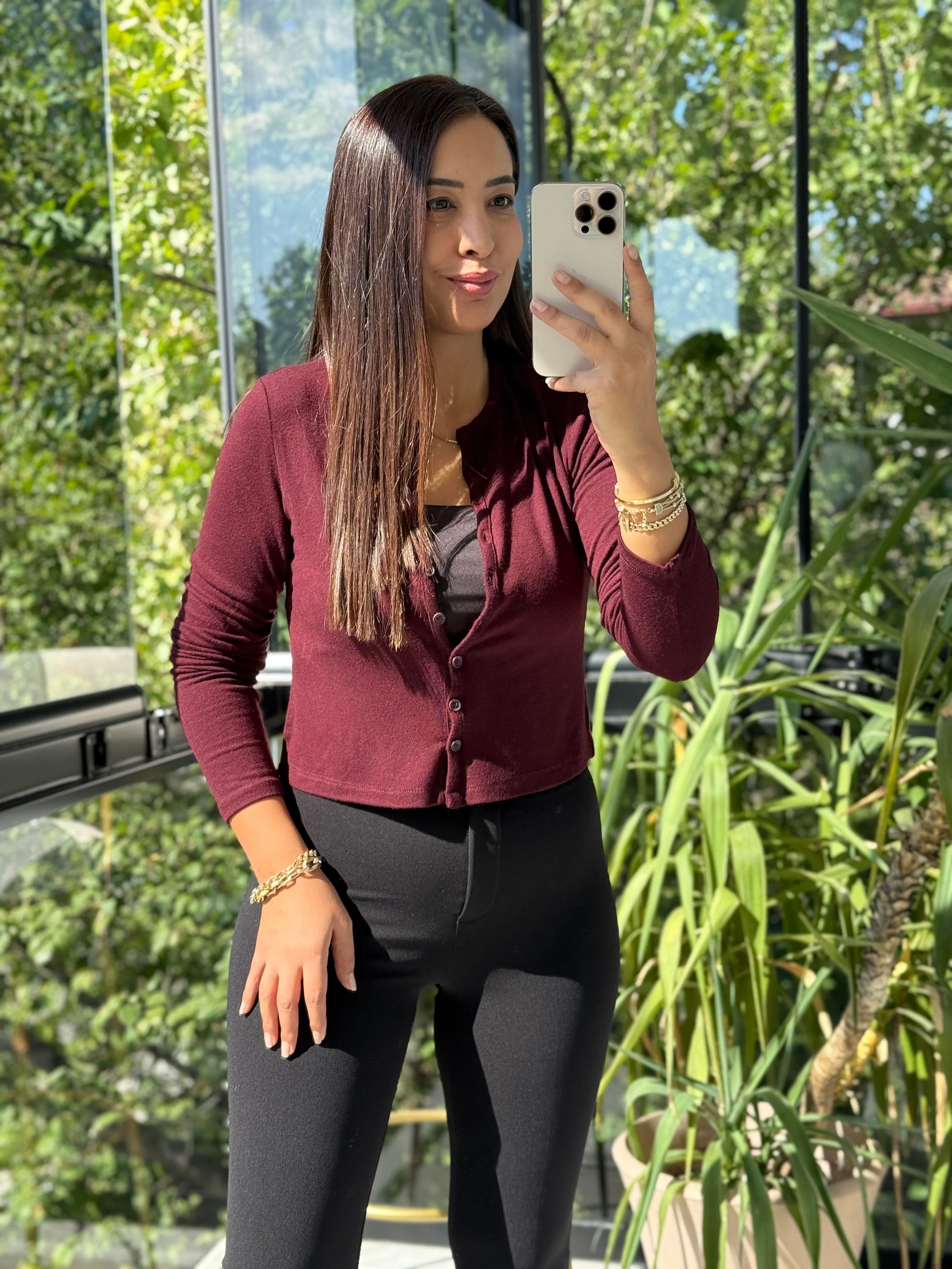 Dilvin Düğmeli Detaylı Hırka Bordo