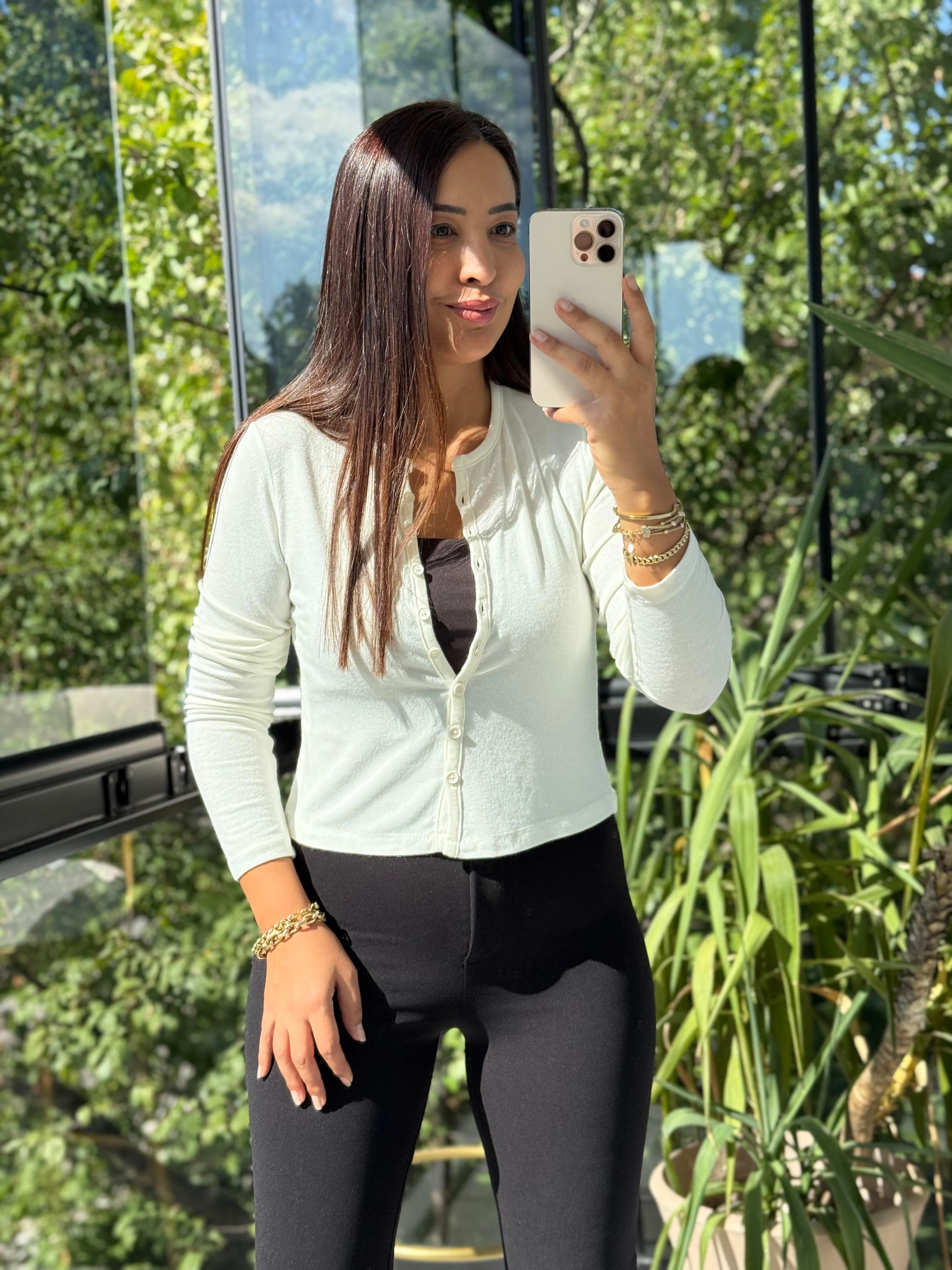 Dilvin Düğmeli Detaylı Hırka Ekru