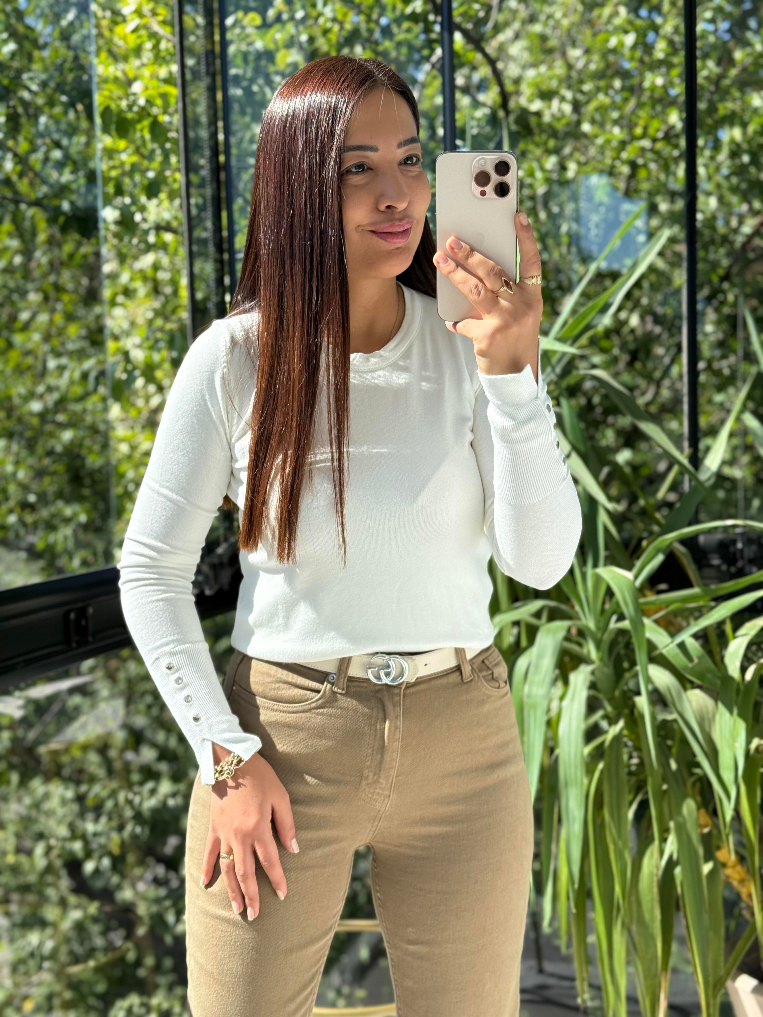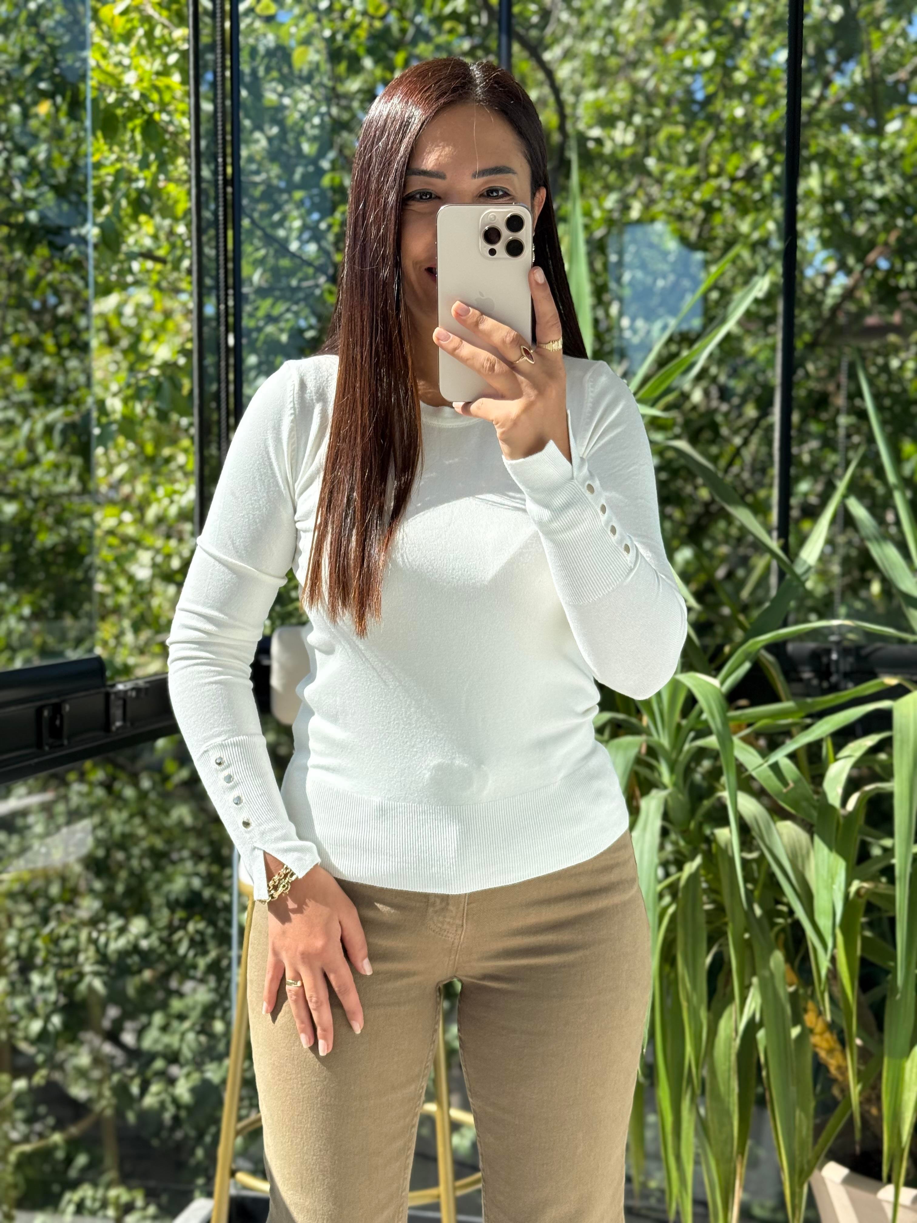 Kol Ortası Droplu Triko Kazak Ekru