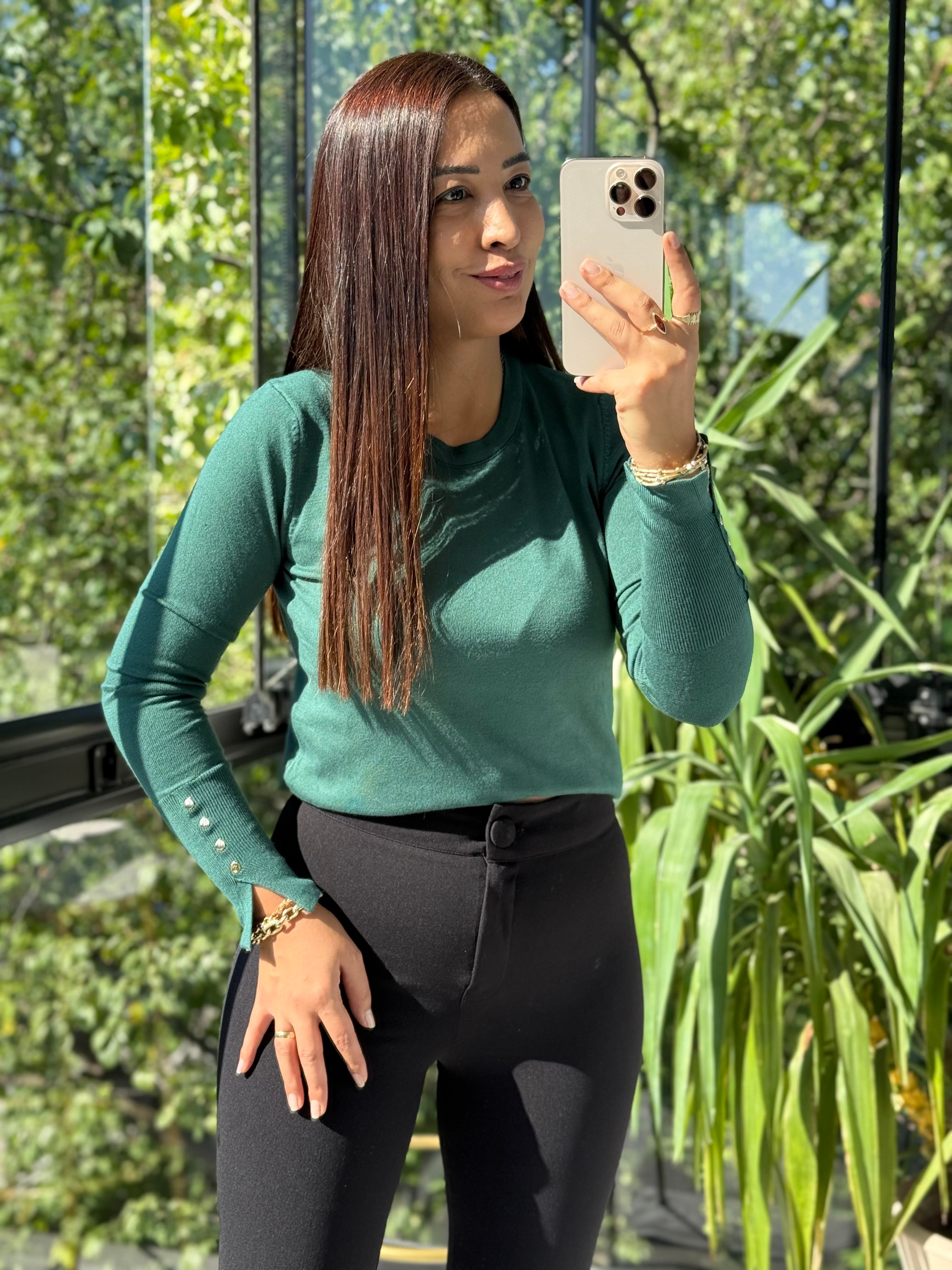Kol Ortası Droplu Triko Kazak Zümrüt