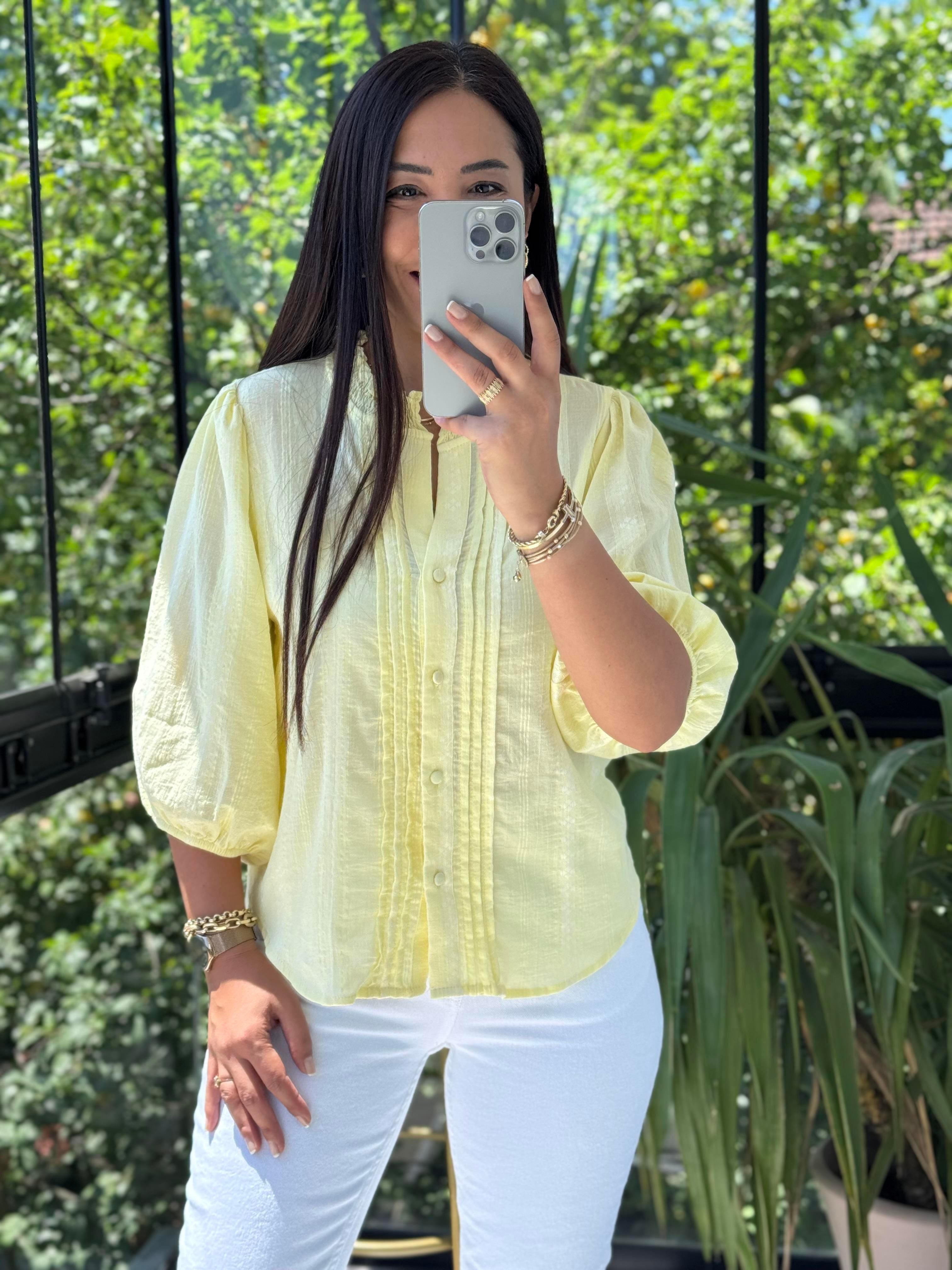 Dilvin Nervür Detaylı Balon Kol Gömlek Sarı