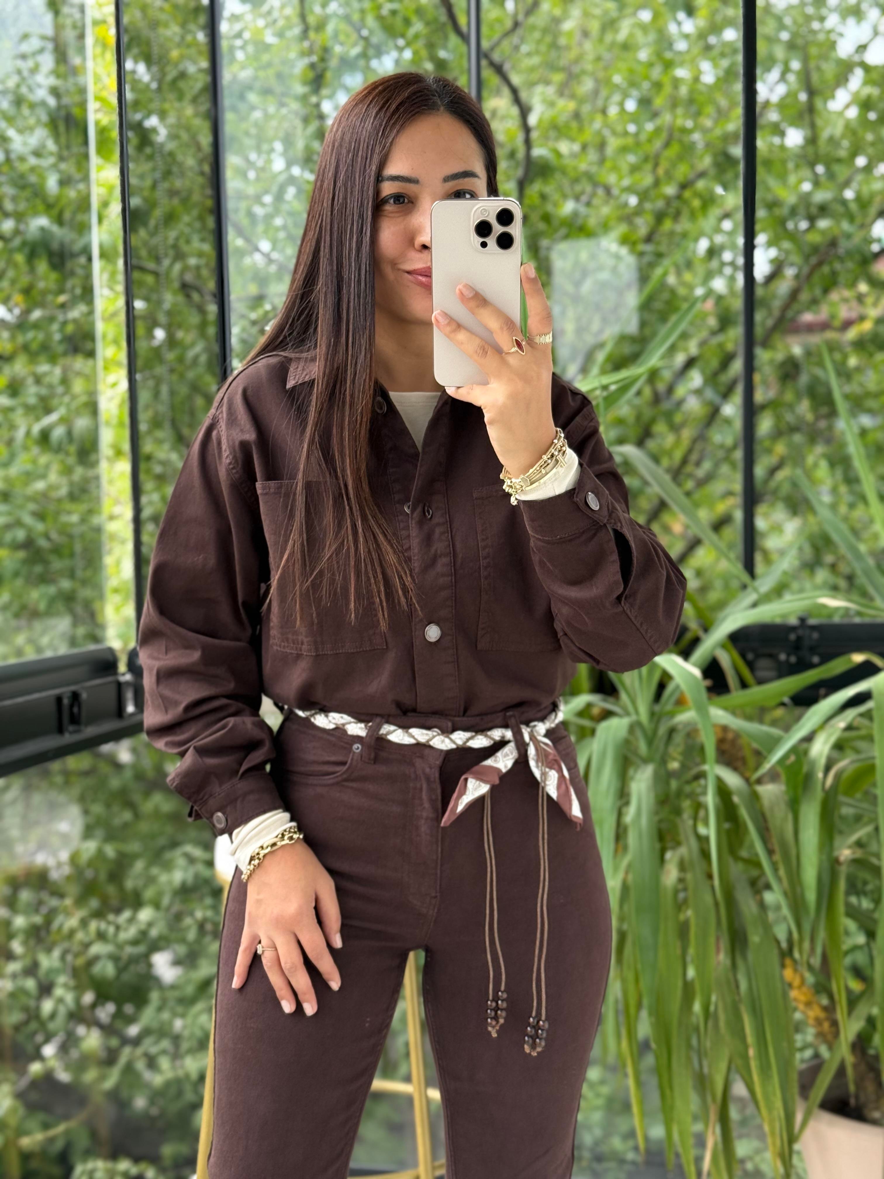 Düğmeli Oversize Gömlek Kahve