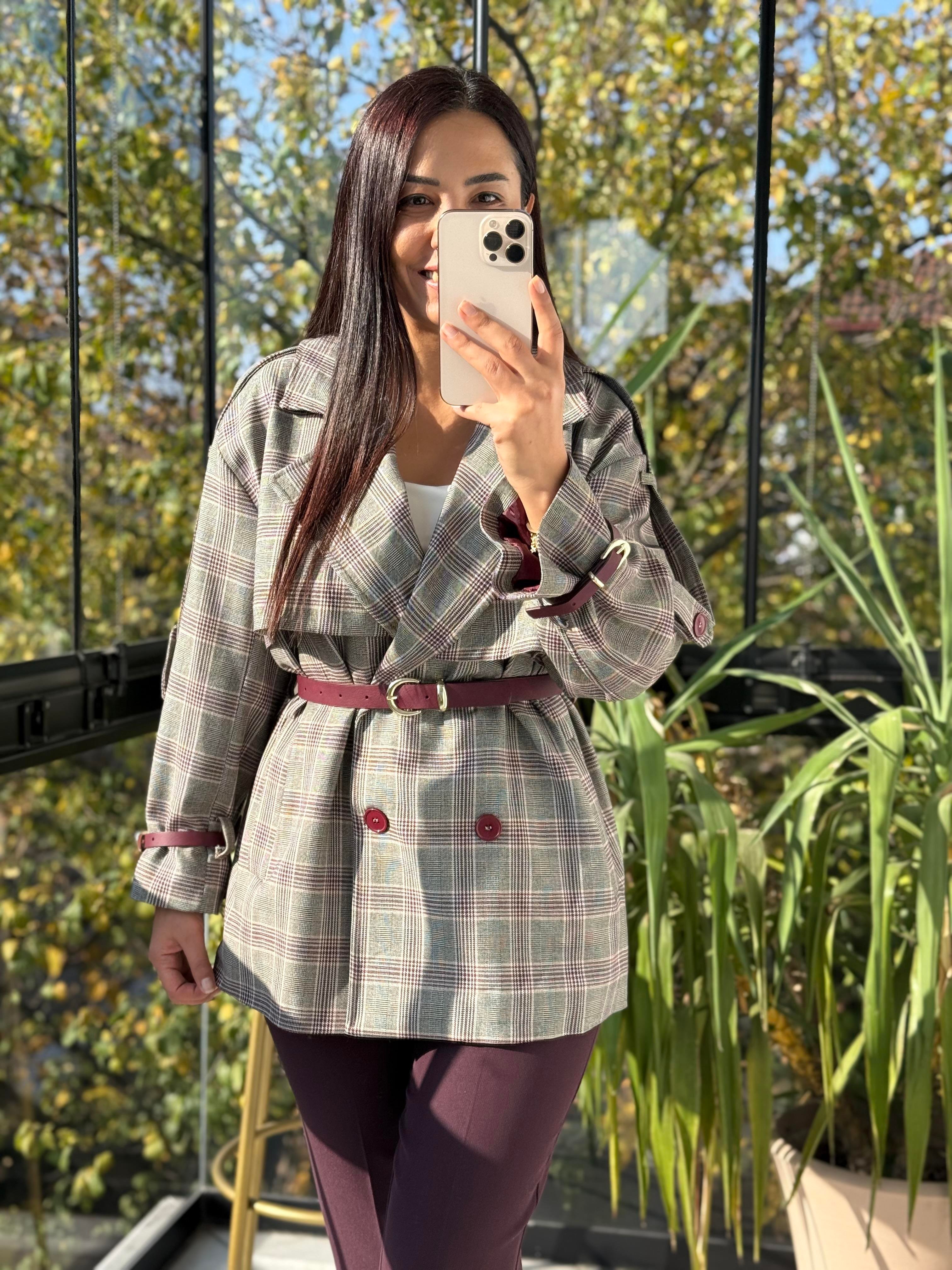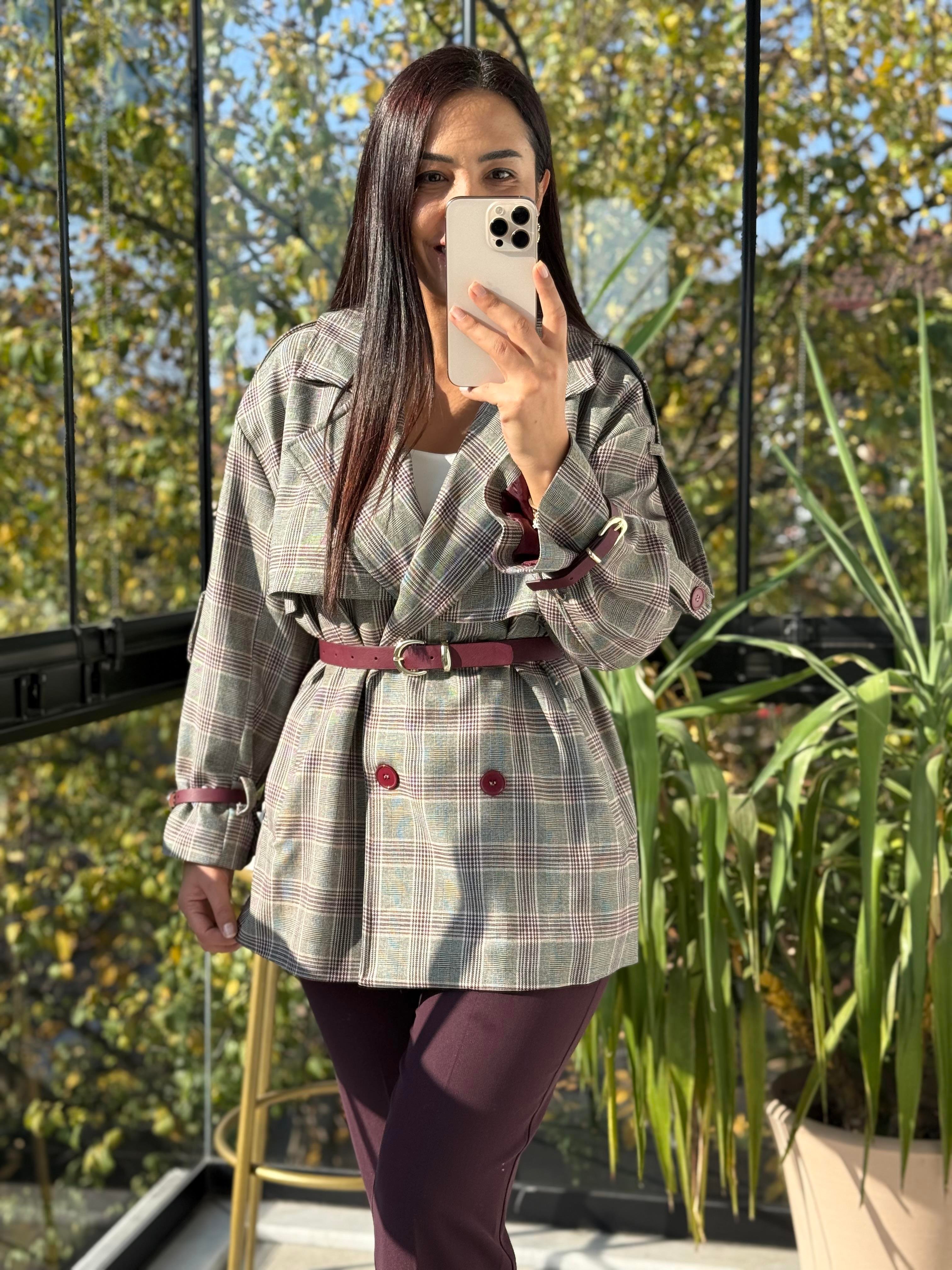 Ekose Kemerli Trenç Bordo Ekose Kemerli Trenç Kahve