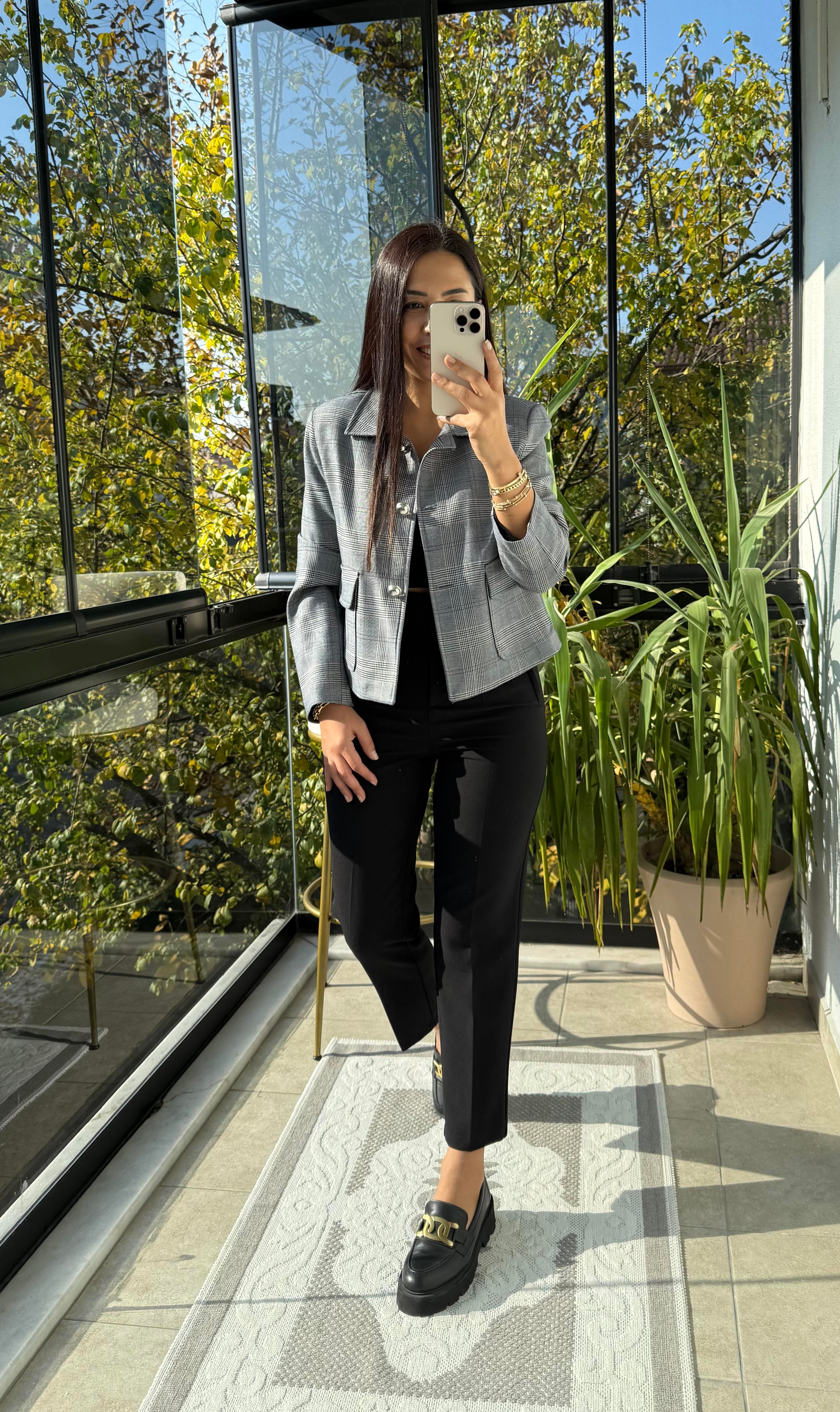 Ekose Top Düğme Crop Ceket Kahve Ekose Top Düğme Crop Ceket Lacivert