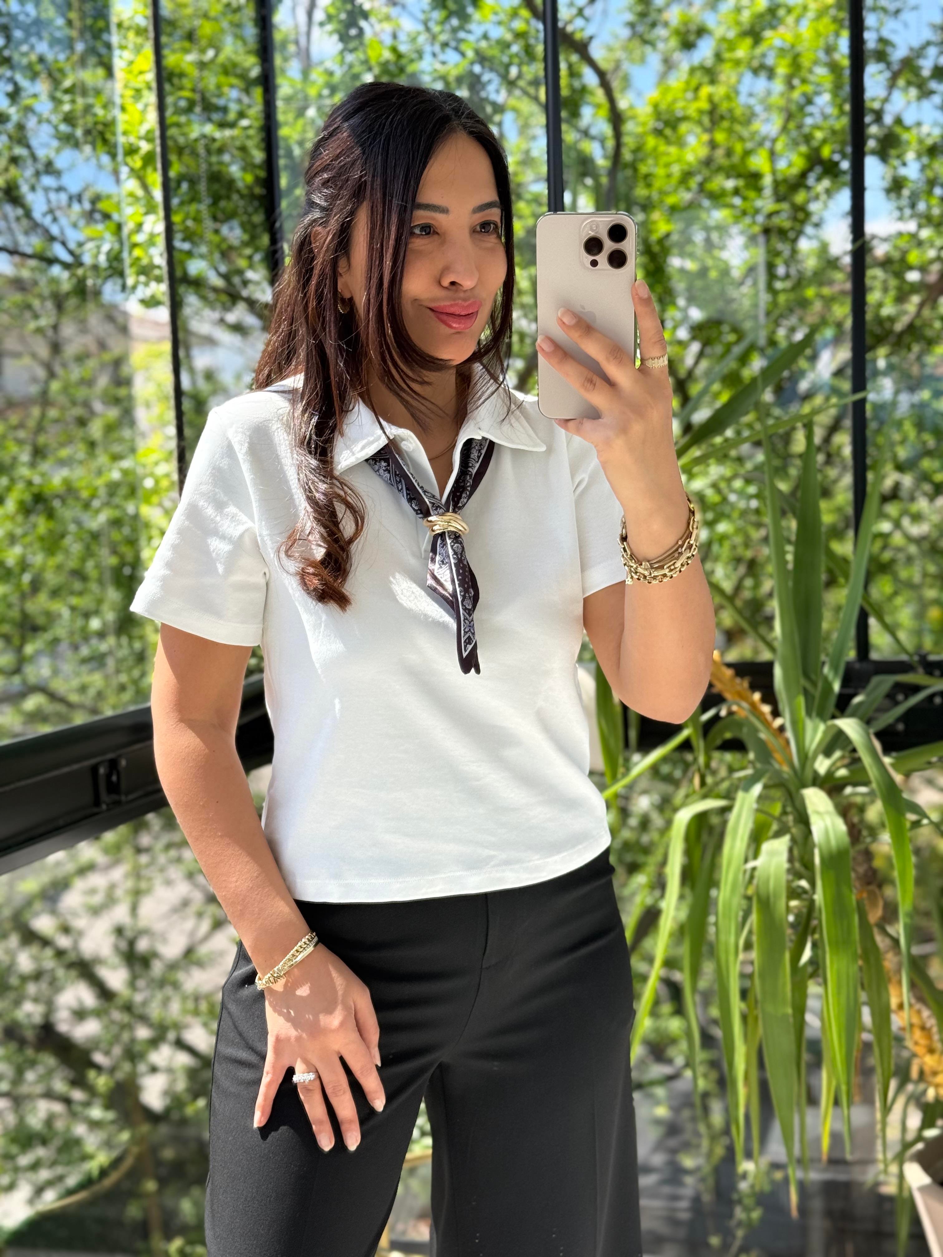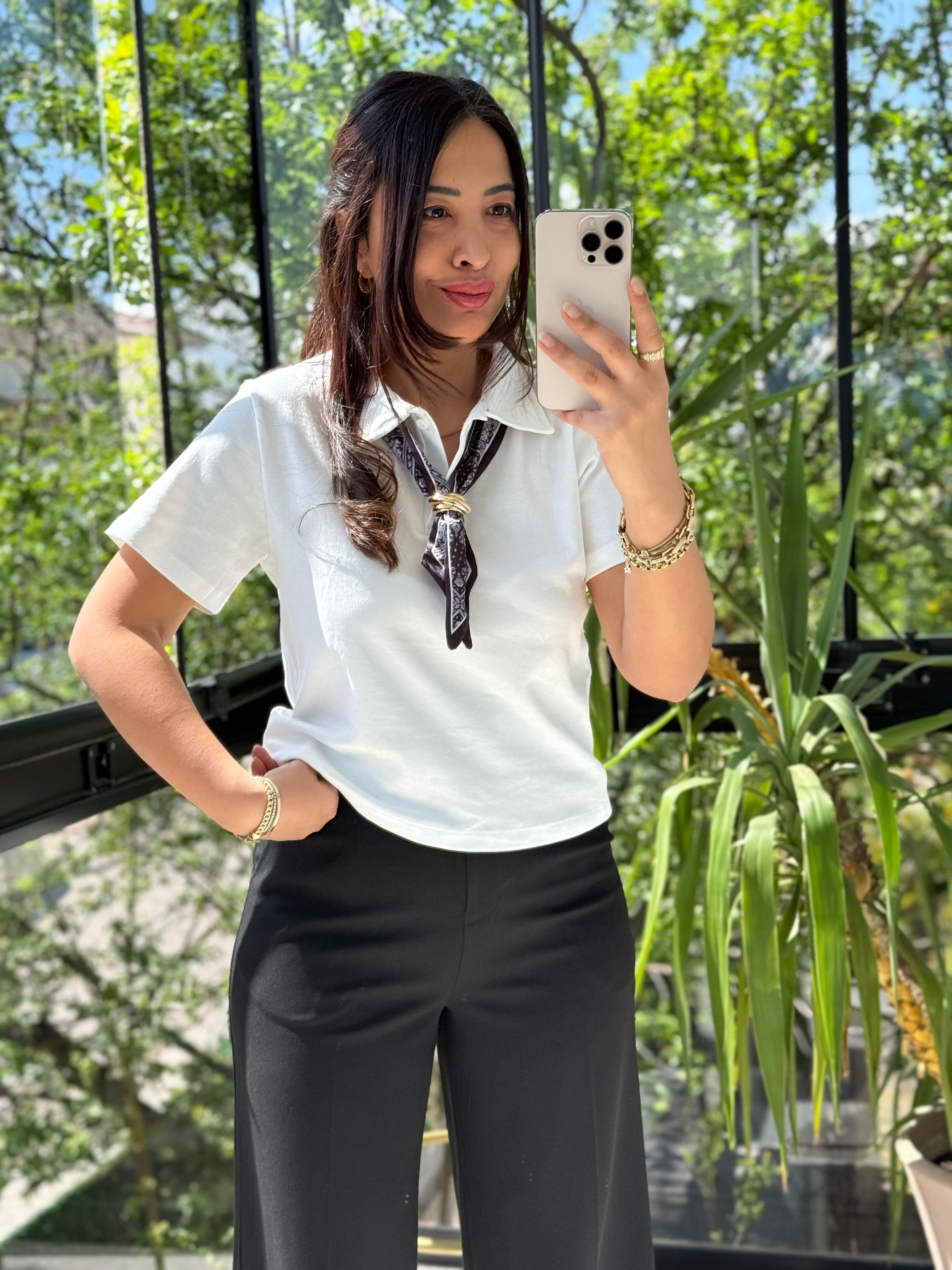 Fularlı Tişört Beyaz Fularlı Tişört Siyah