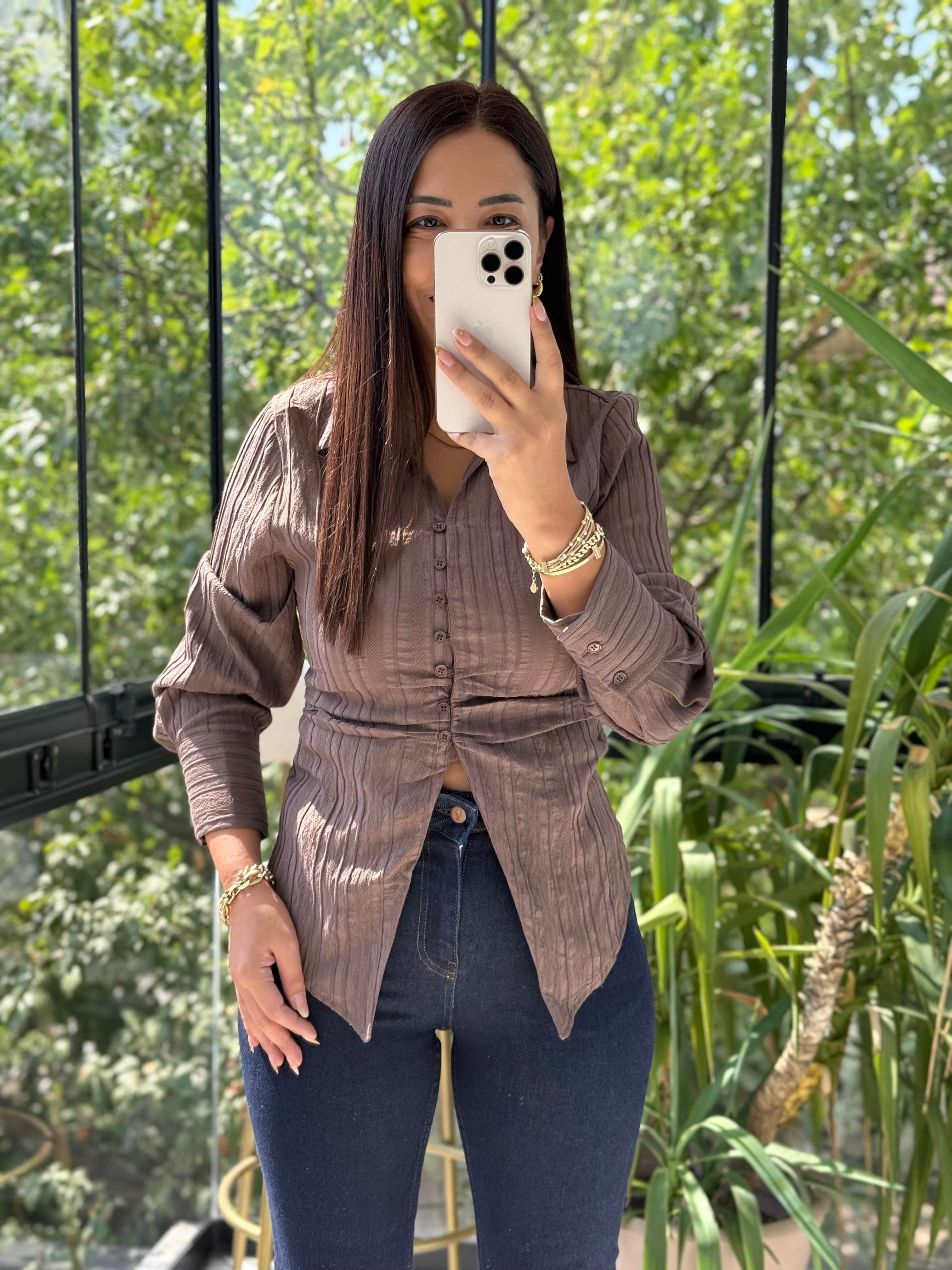 Gipeli Slim Gömlek Kahve Gipeli Slim Gömlek Ekru