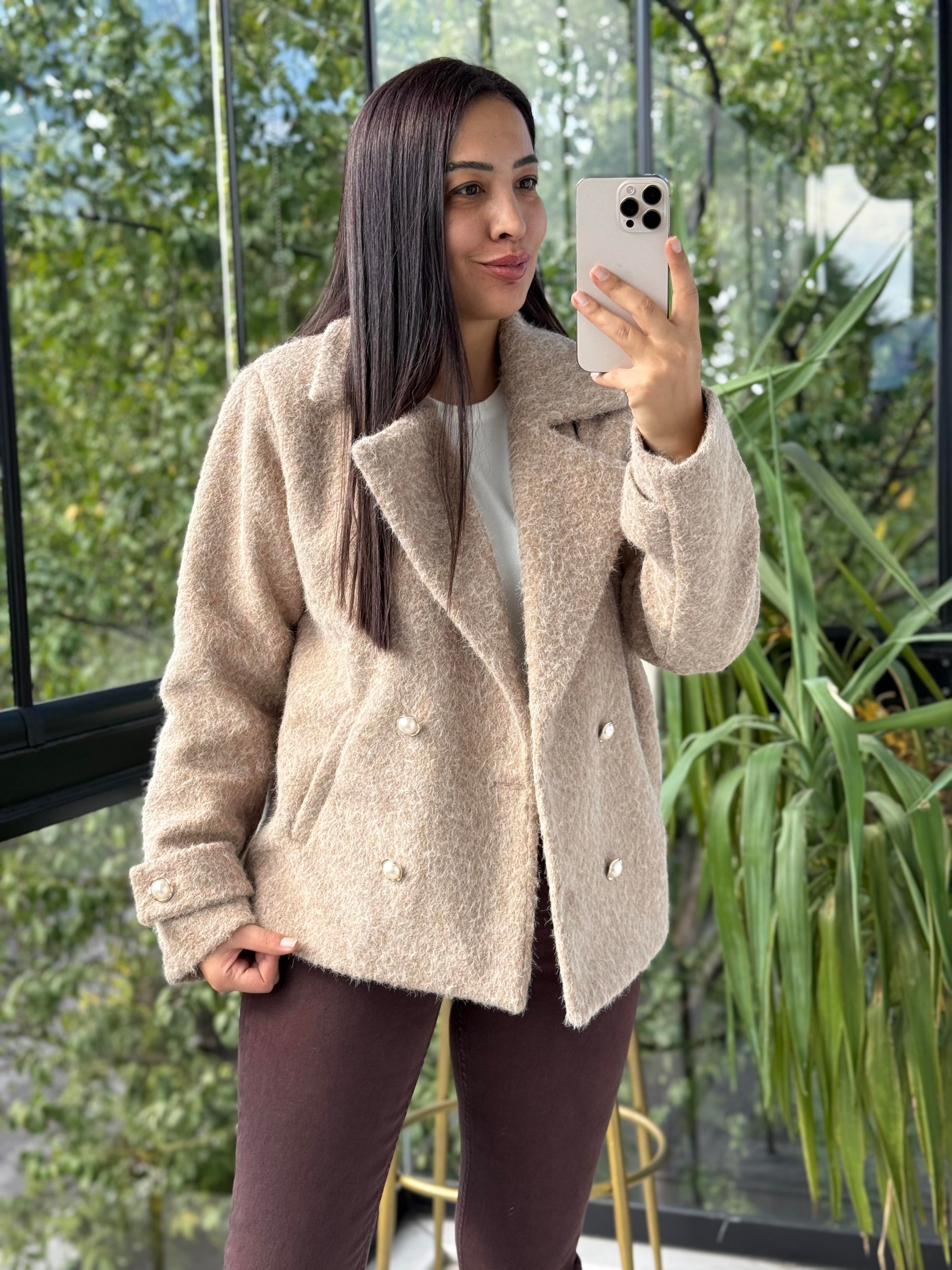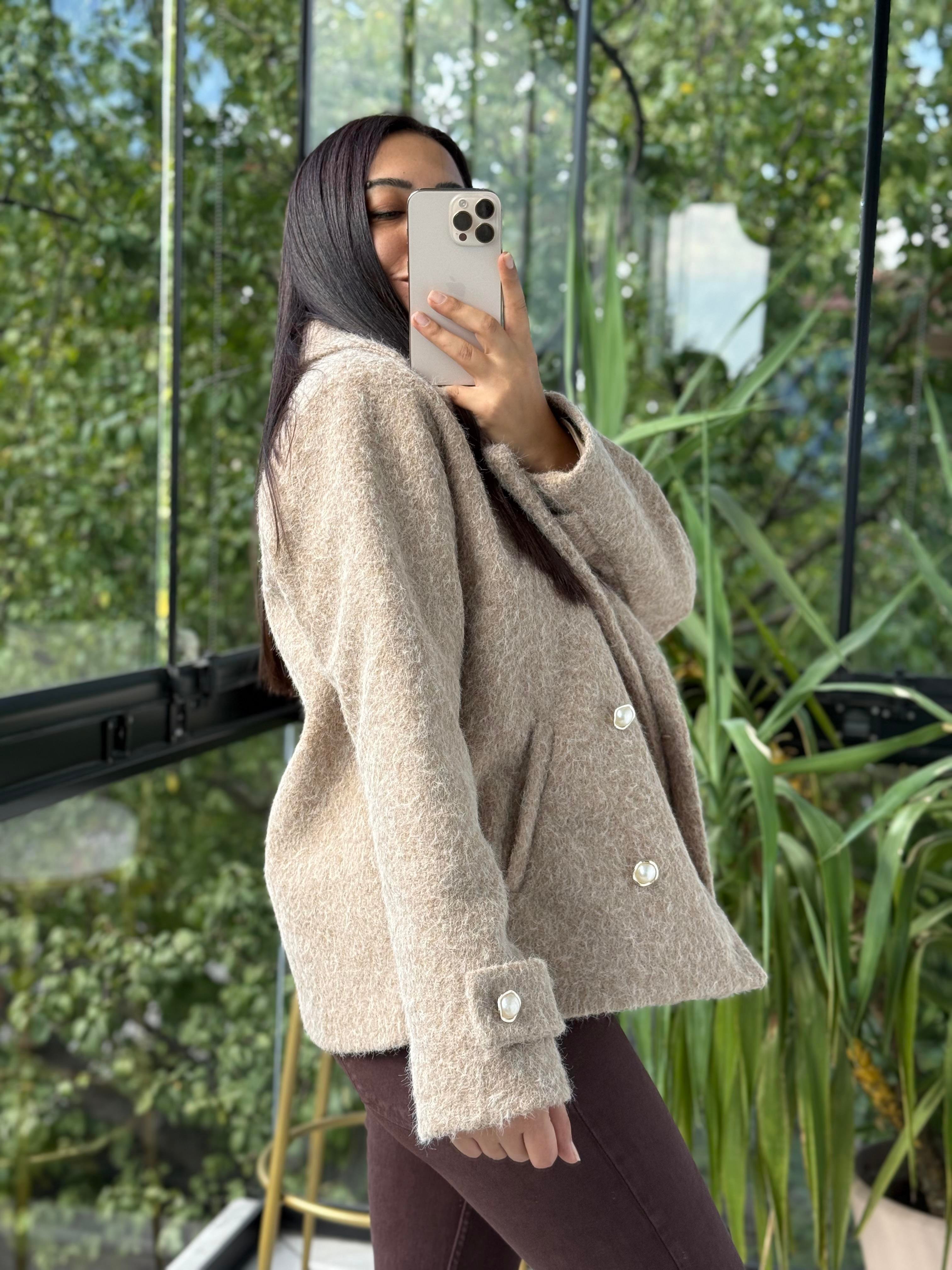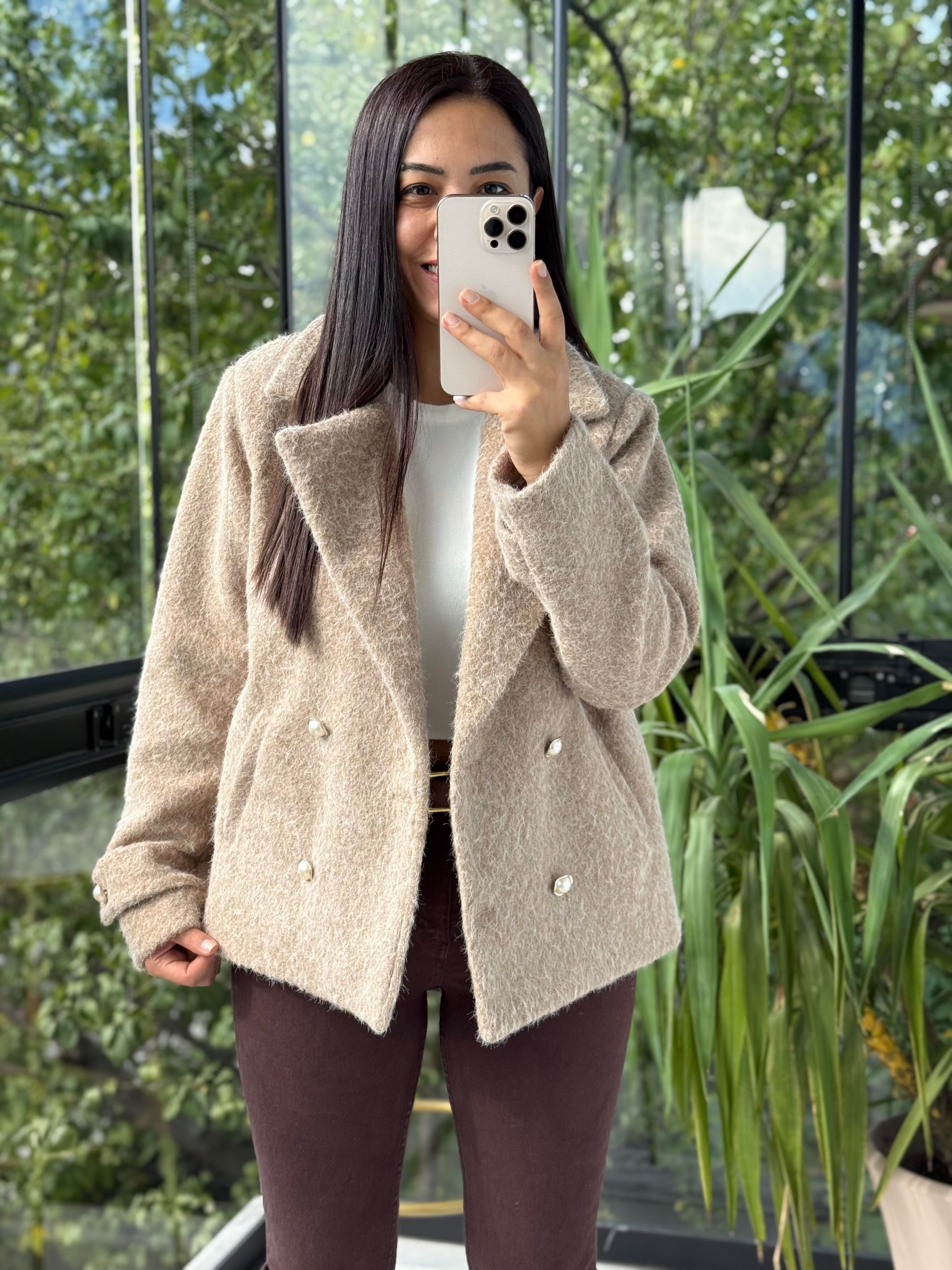 Gold Düğmeli Yün Kaban Ceket Bisküvi Kahvesi