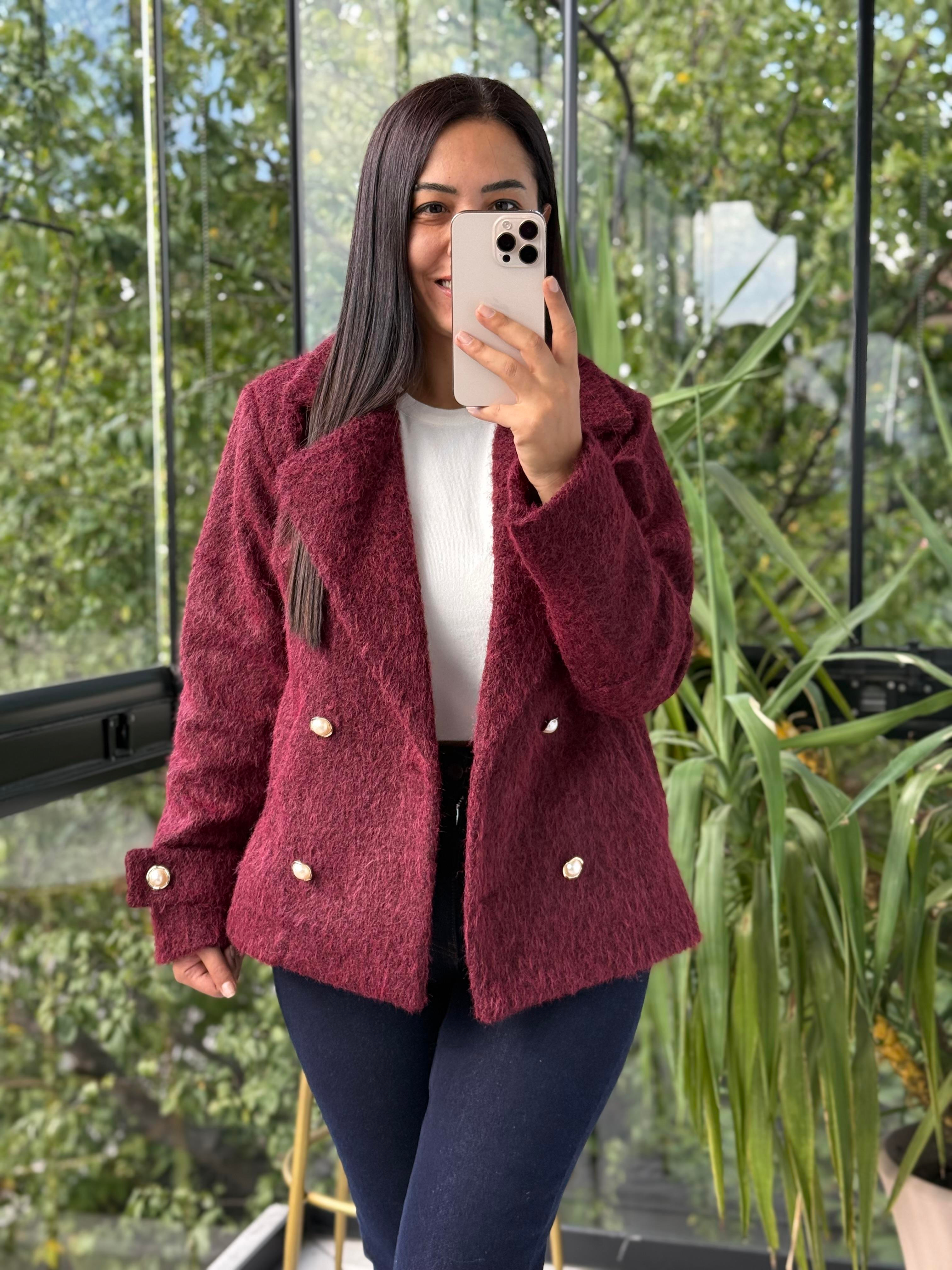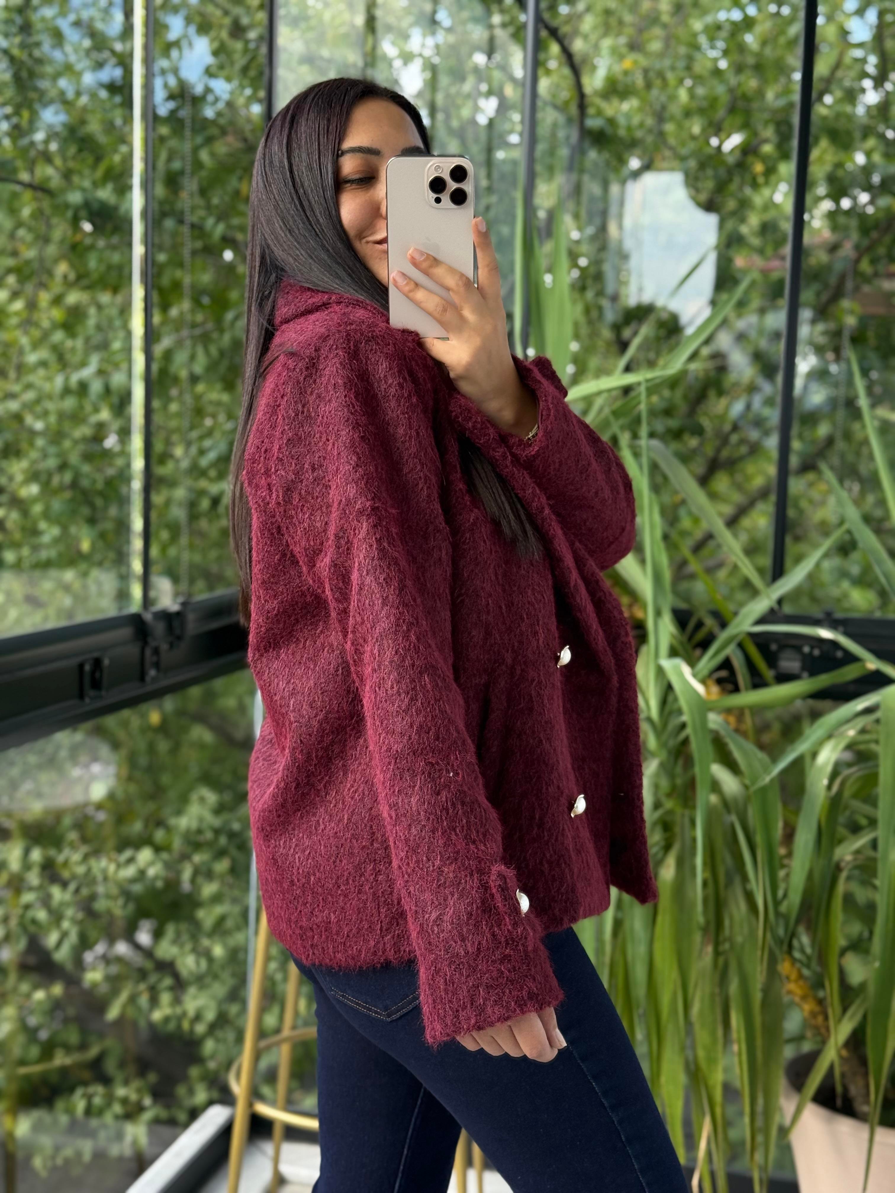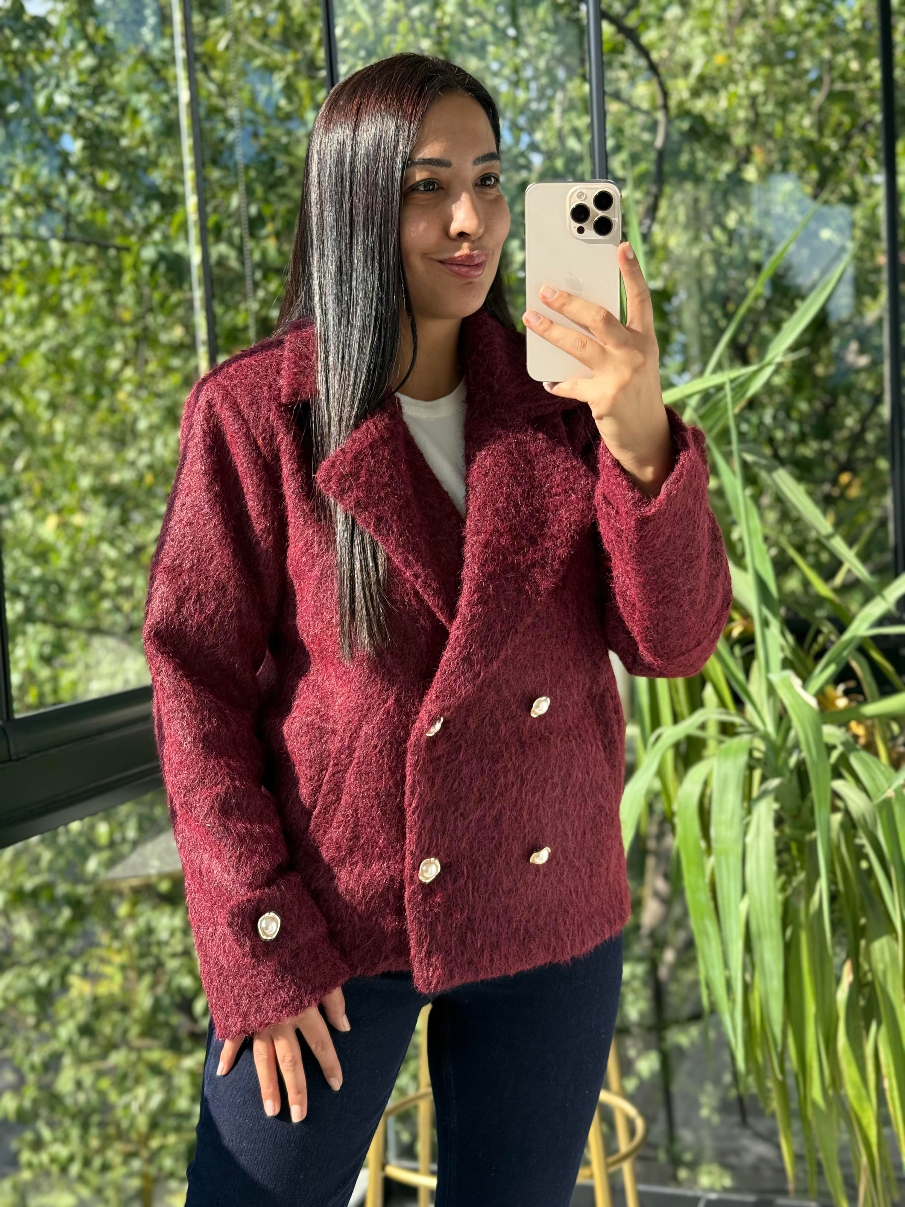 Gold Düğmeli Yün Kaban Ceket Bordo
