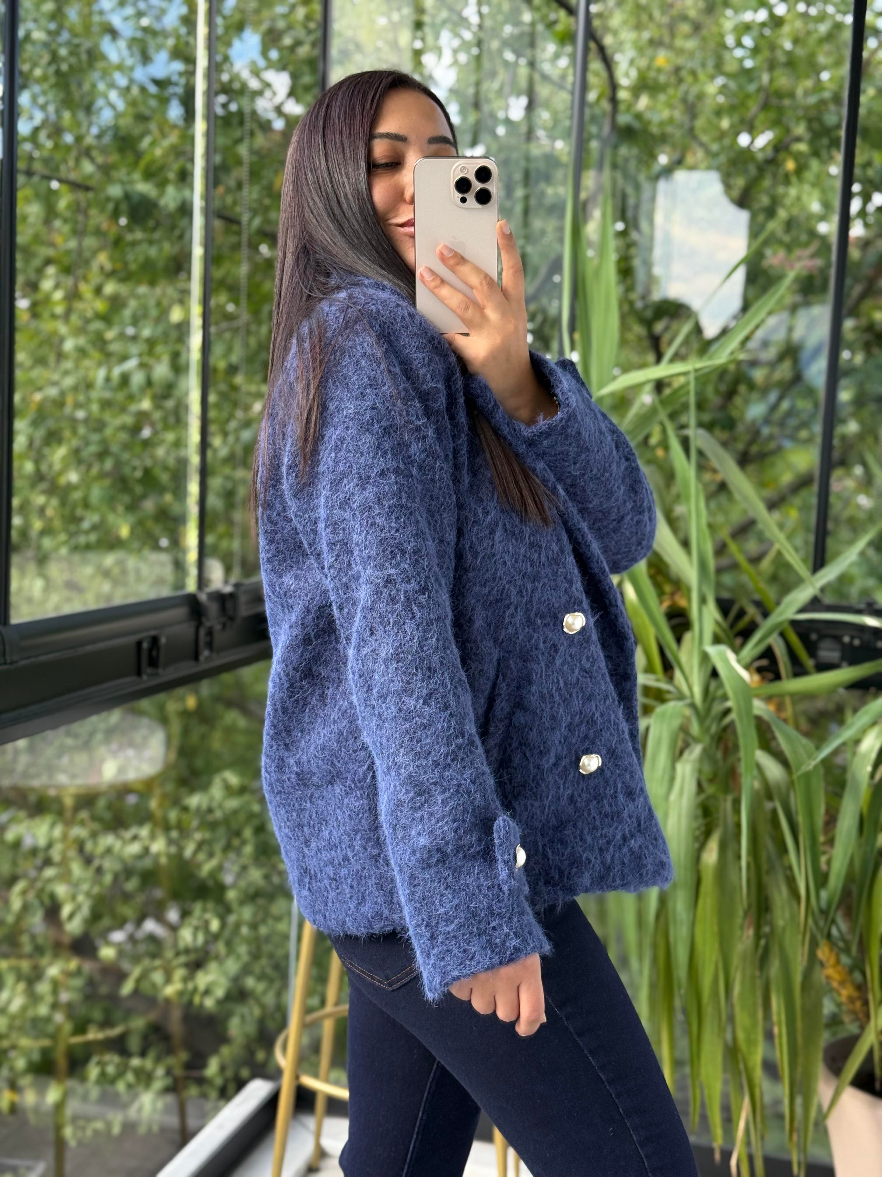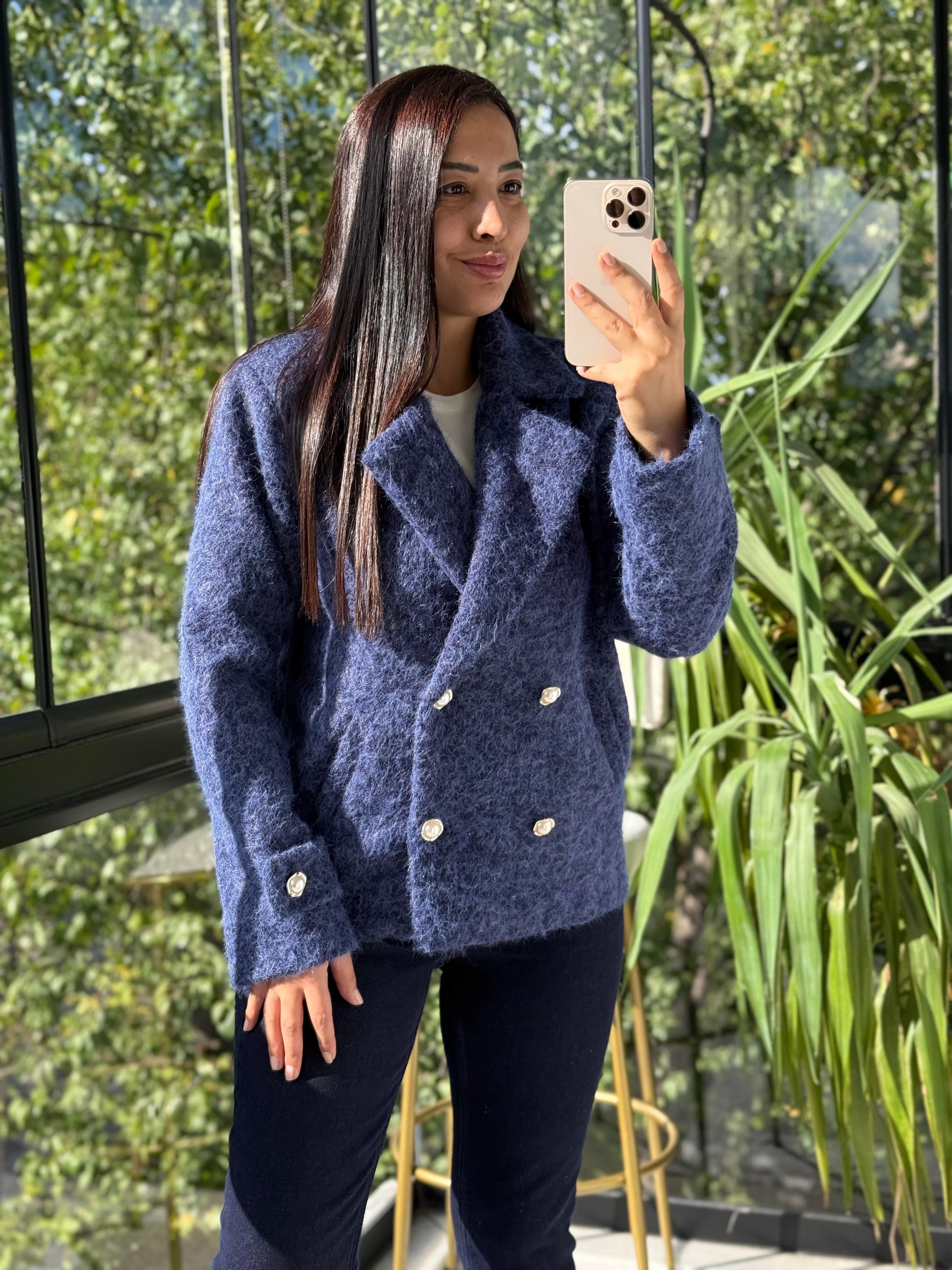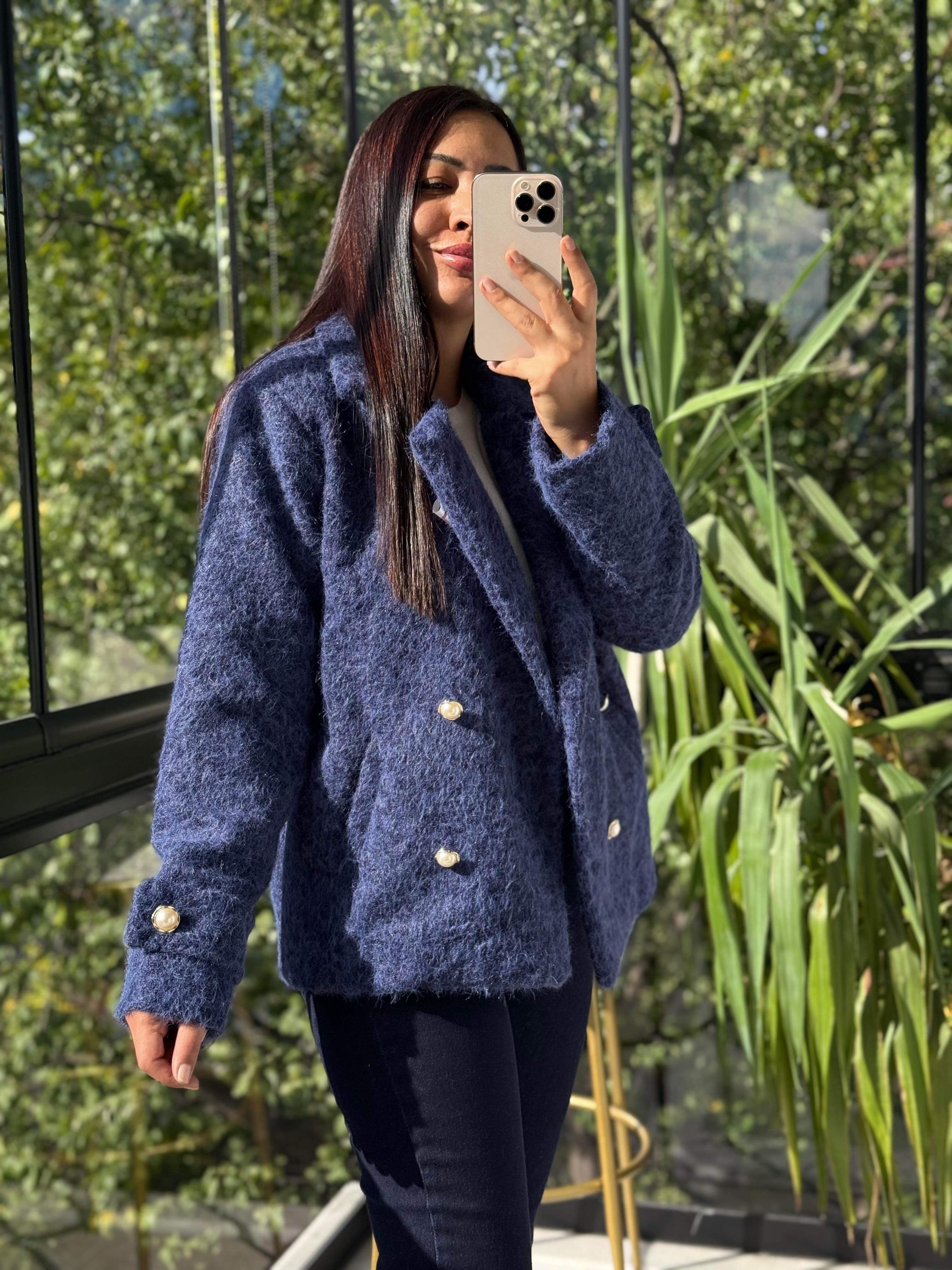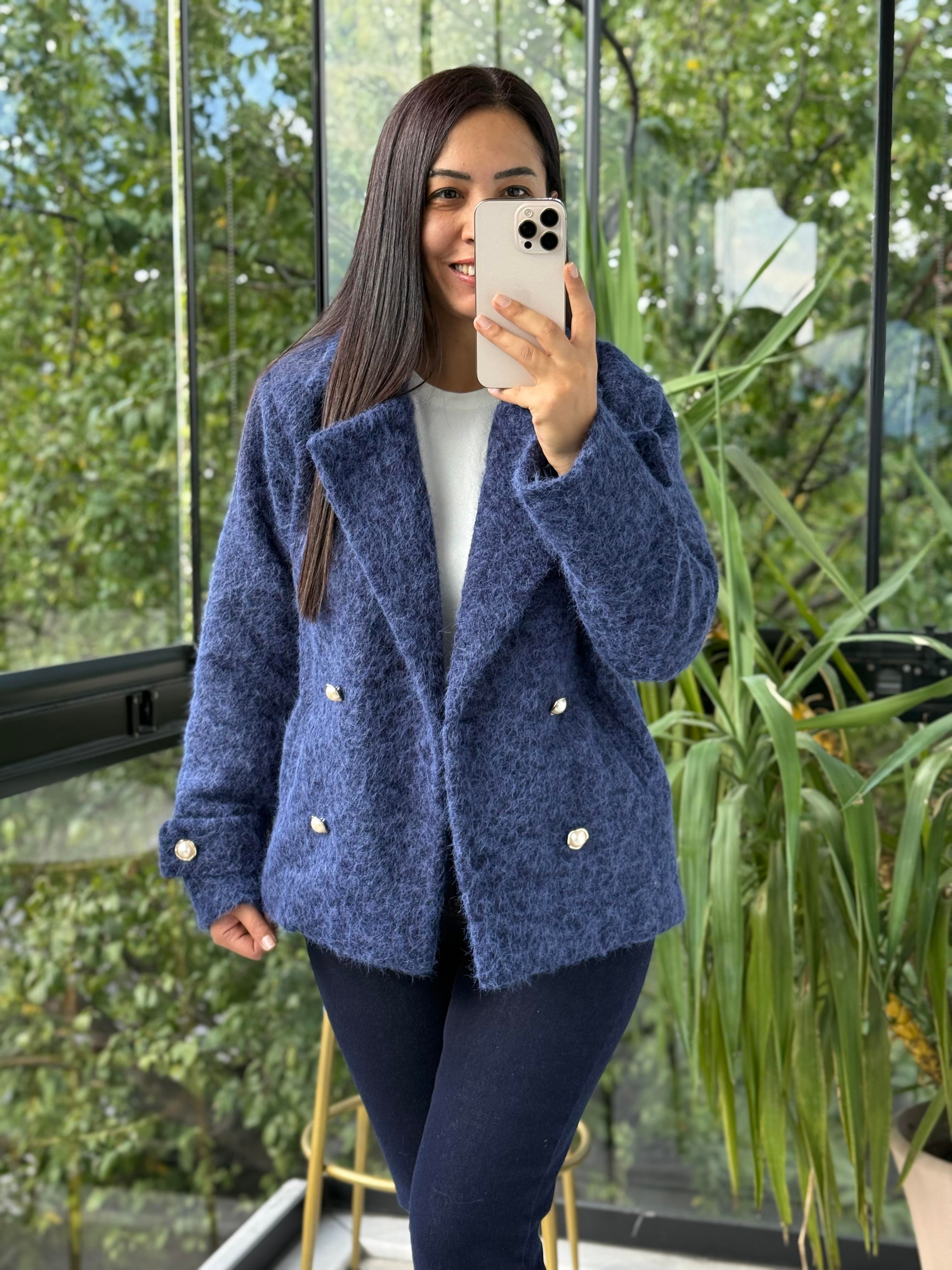 Gold Düğmeli Yün Kaban Ceket Lacivert