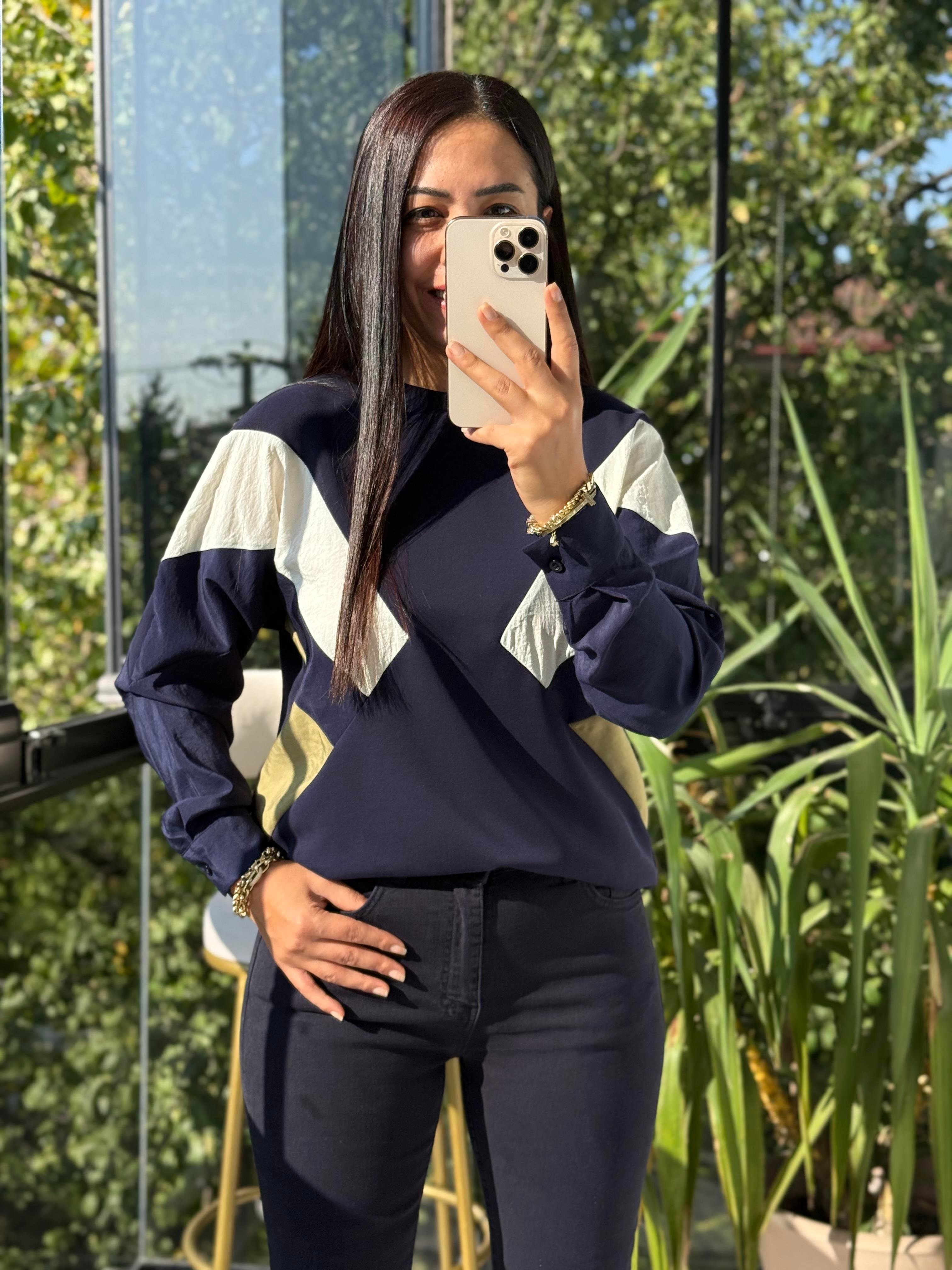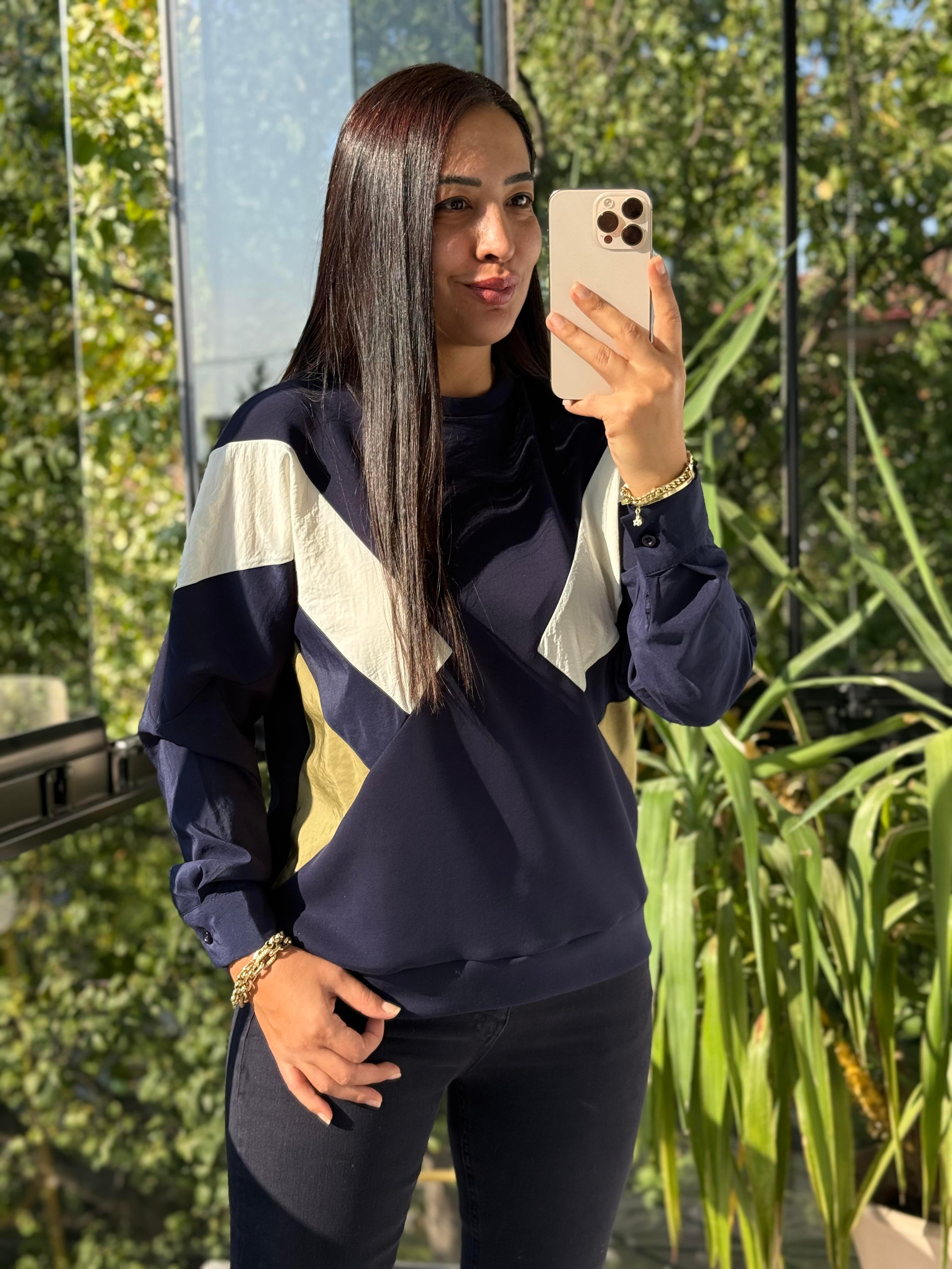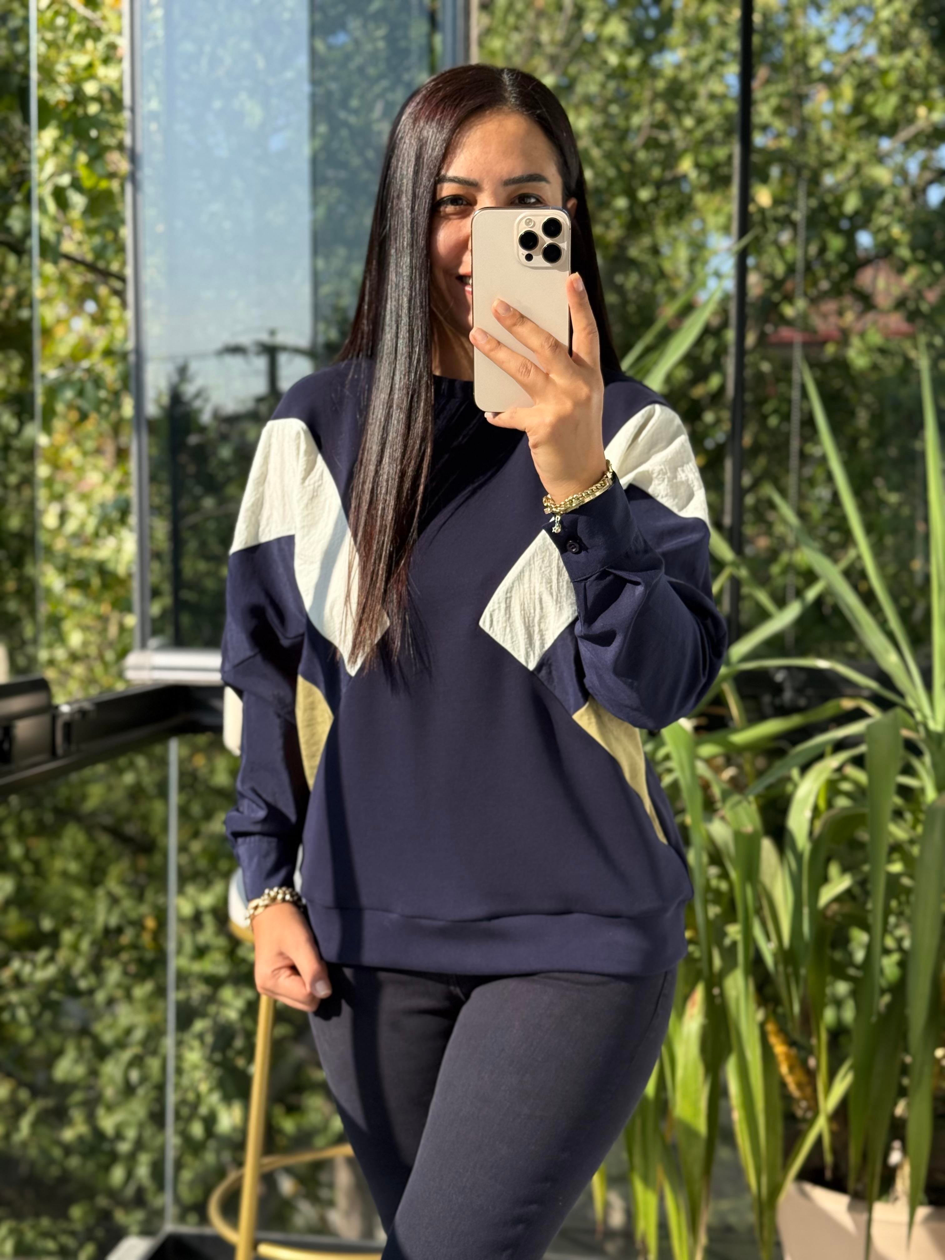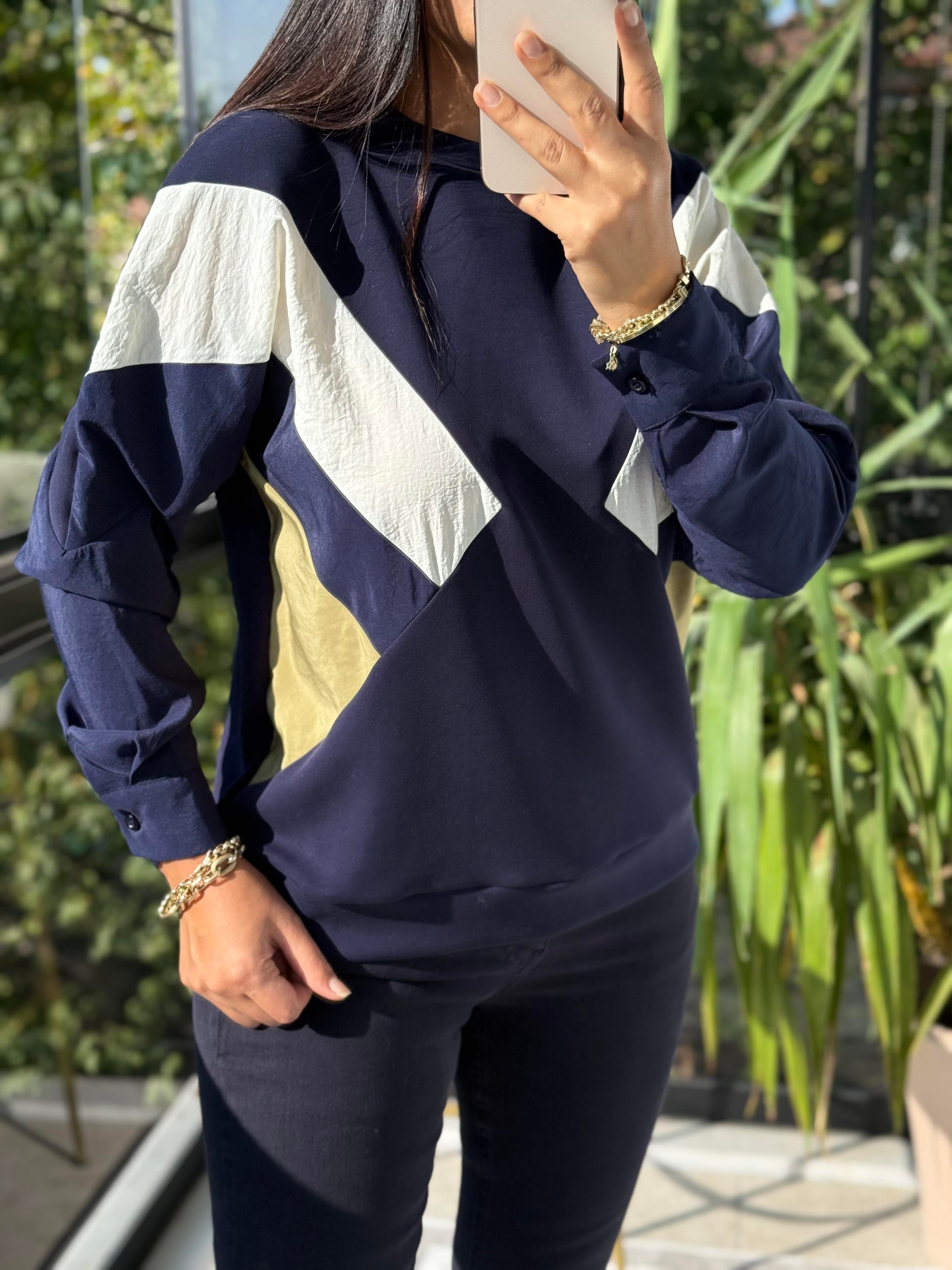 Gömlek Kol Mix Sweatshirt Beyaz Gömlek Kol Mix Sweatshirt Lacivert