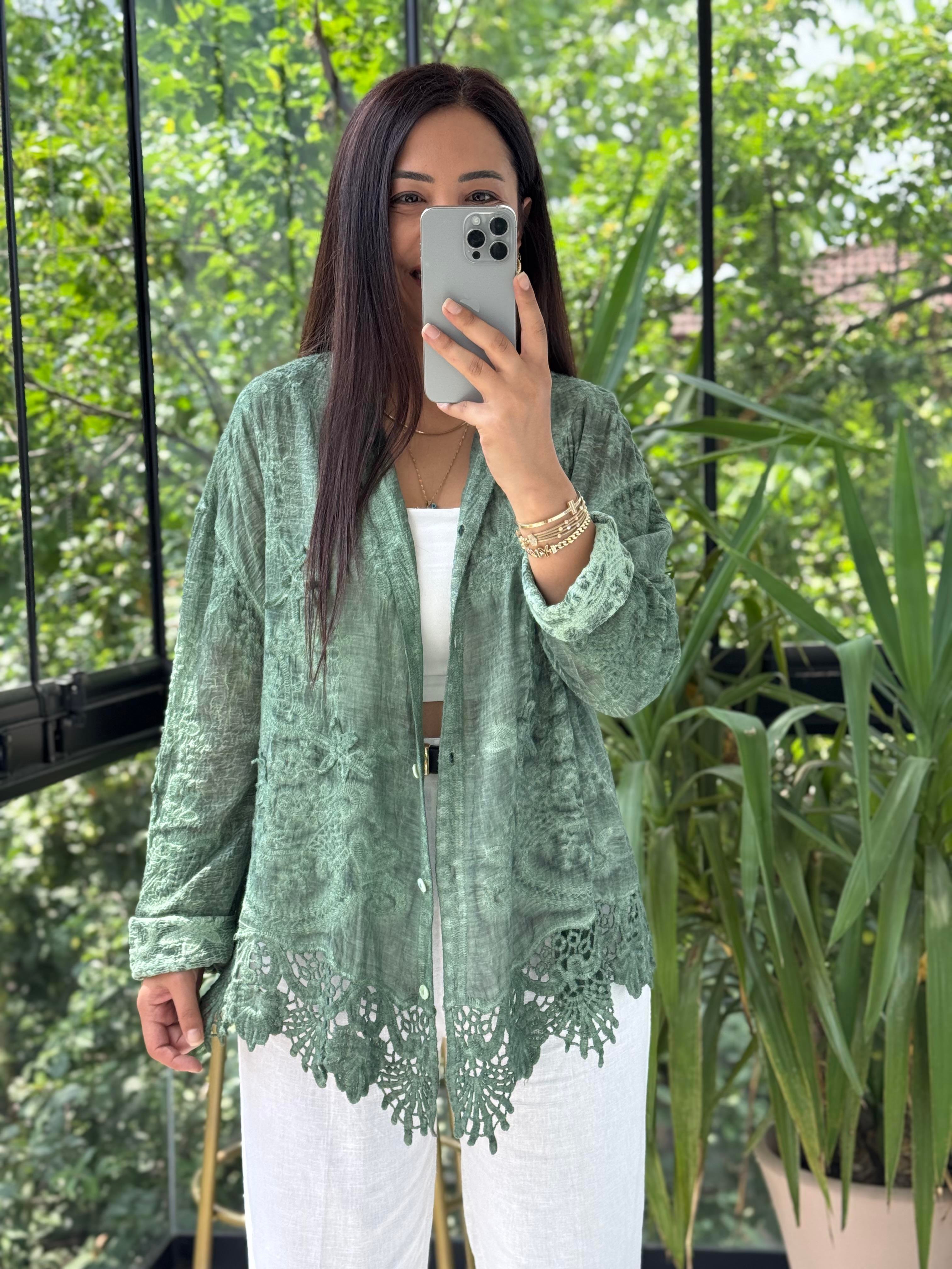 Güpür Detaylı Etnik Gömlek İndigo Mavi Güpür Detaylı Etnik Gömlek Yeşil Güpür Detaylı Etnik Gömlek Vizon