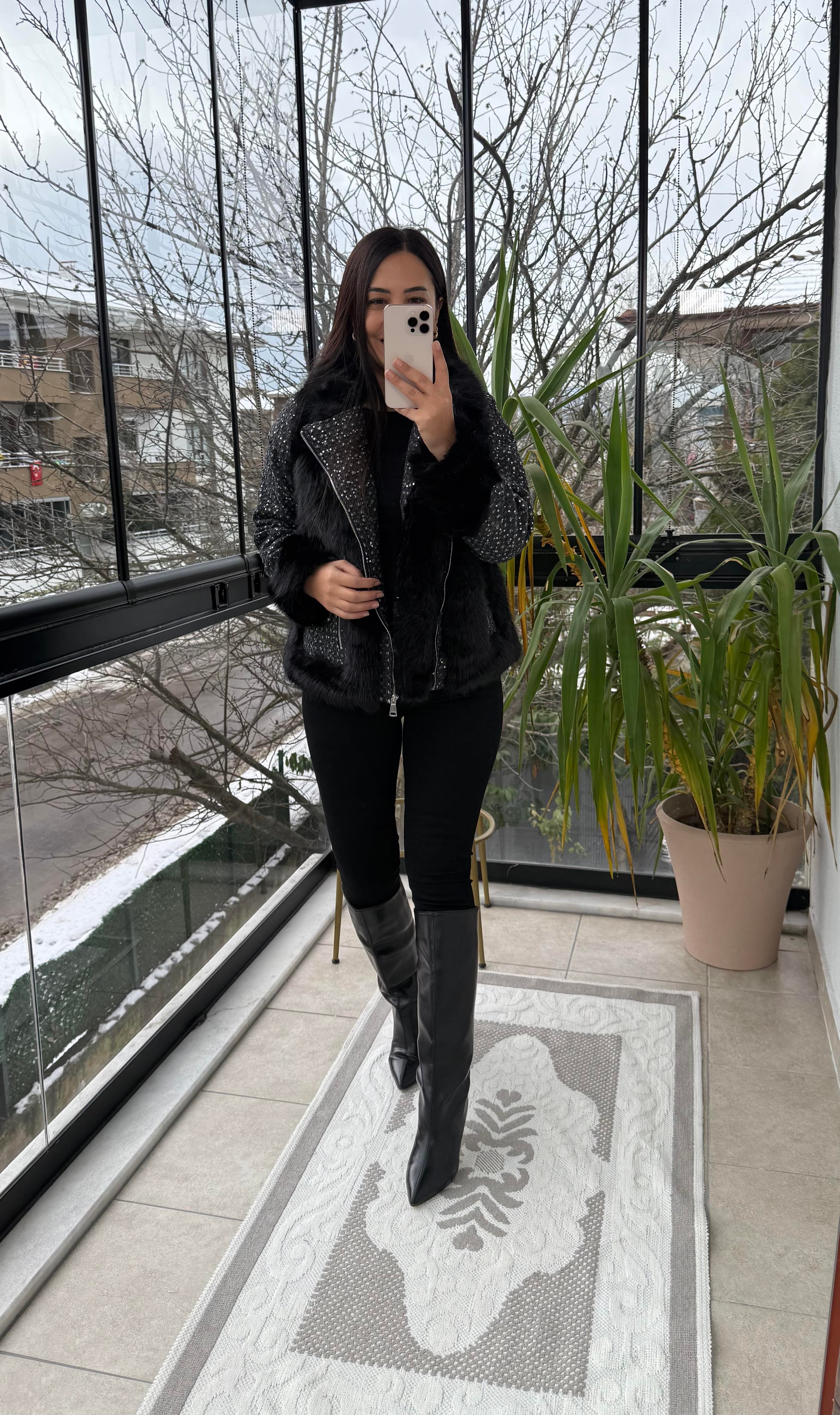 İthal Payetli Mont Siyah İthal Payetli Mont lacivert