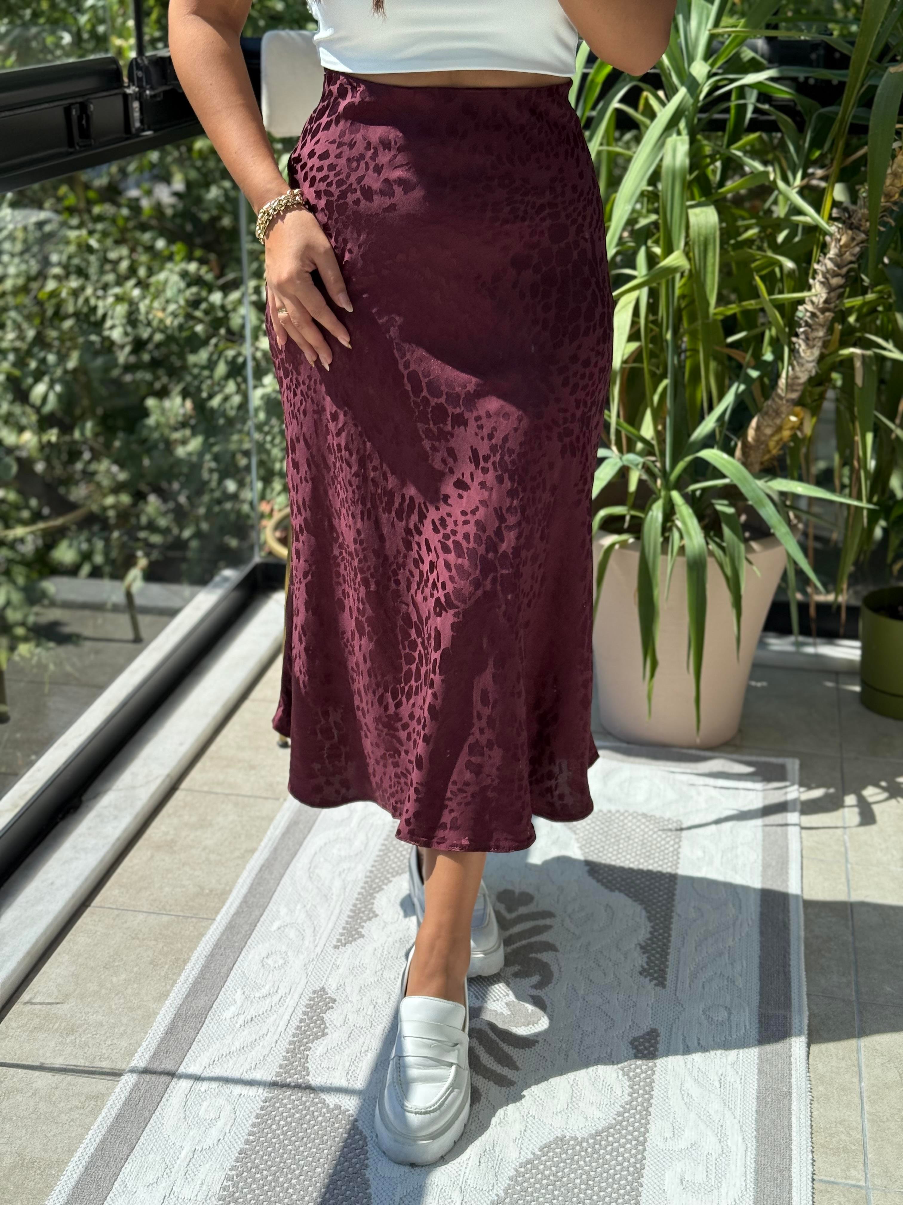 Jakarlı Saten Etek Mürdüm