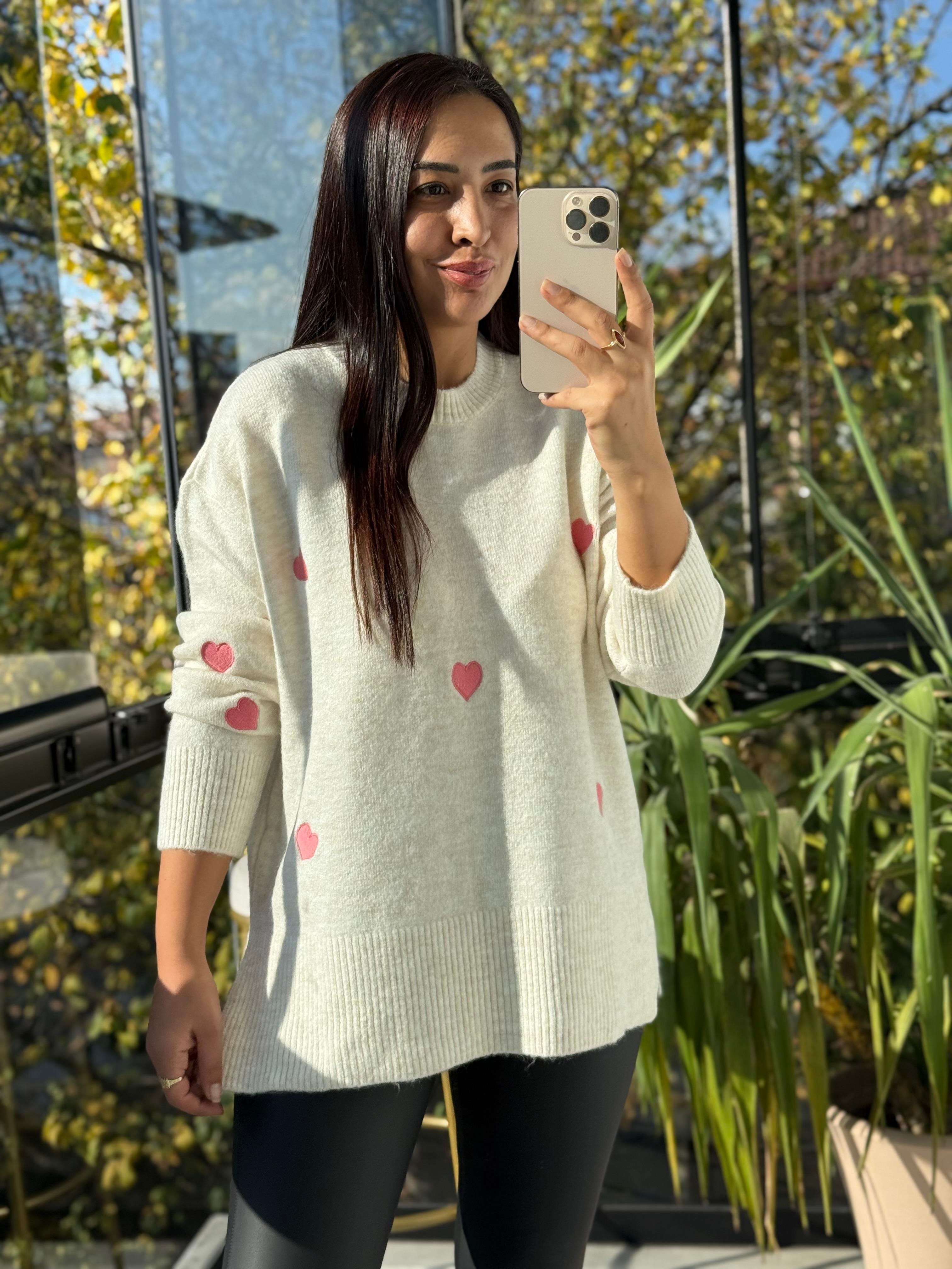 Kalp Detaylı Kazak Siyah Kalp Detaylı Kazak Ekru