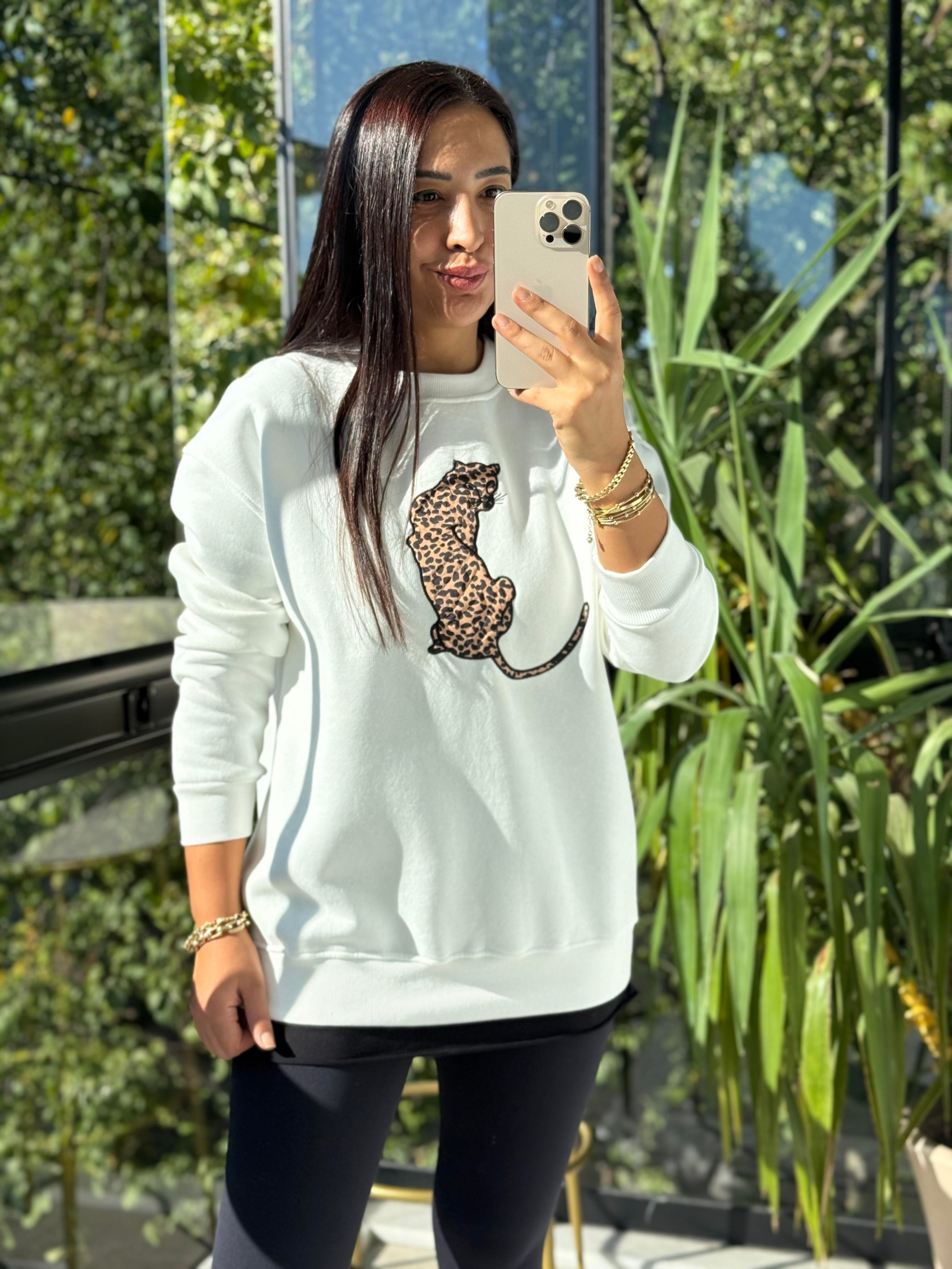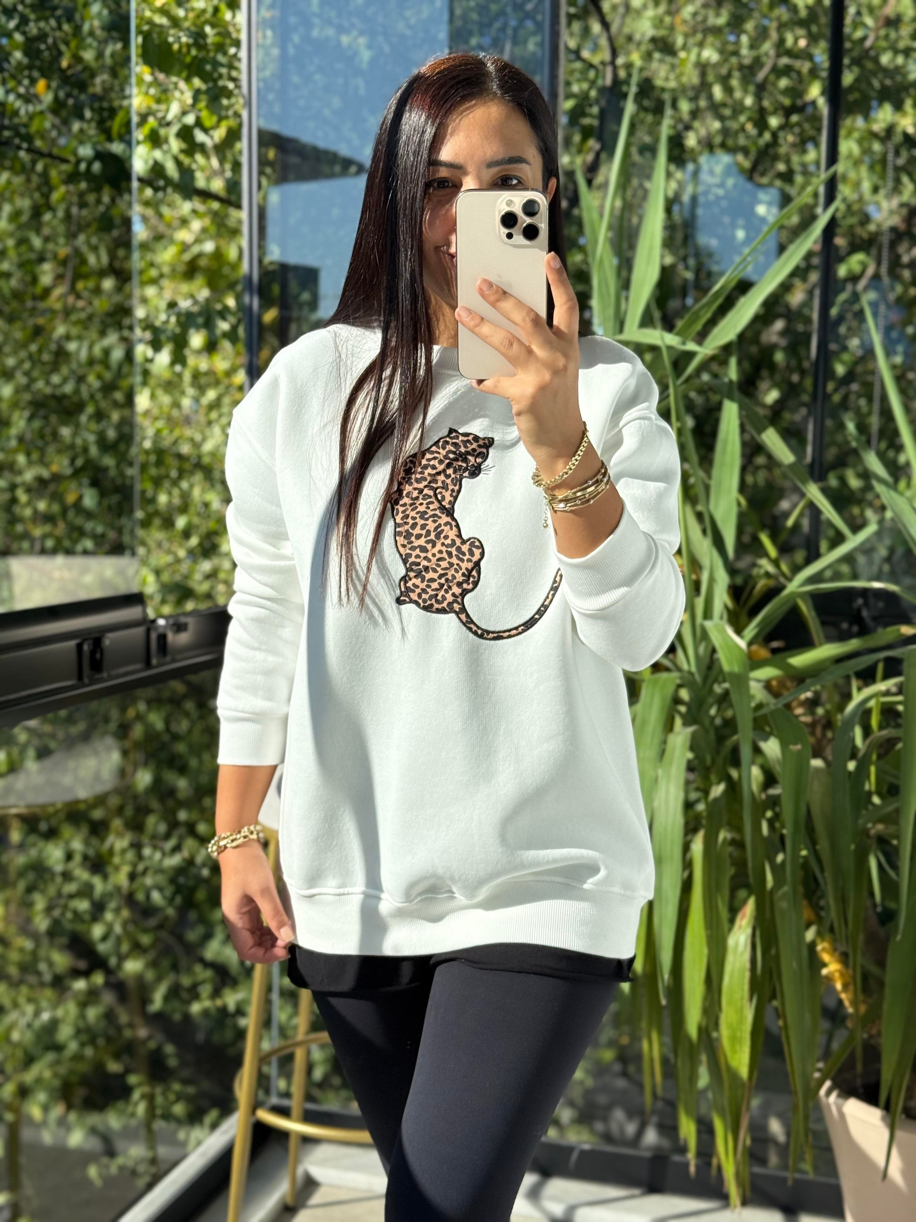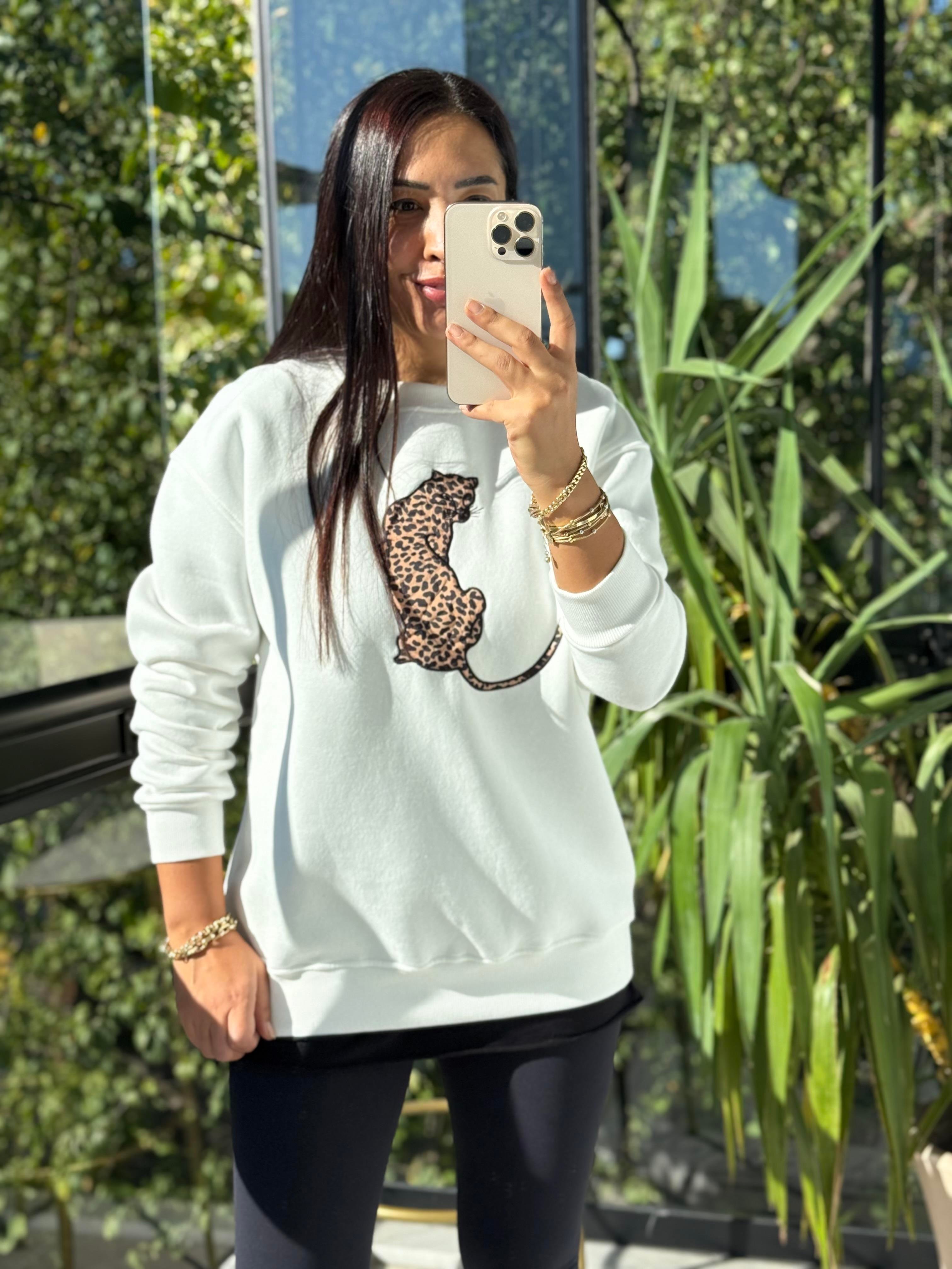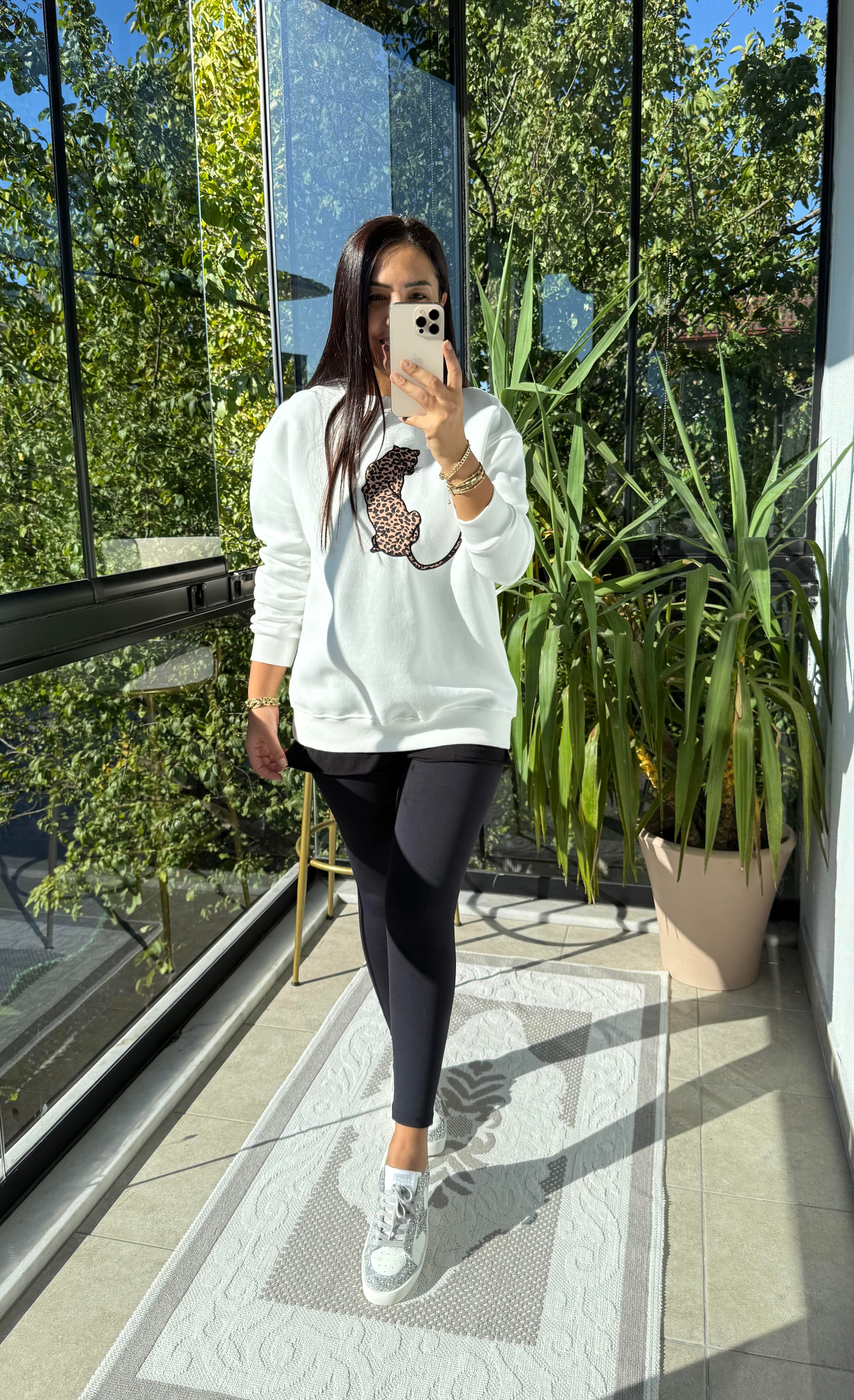 Kaplanlı Sweatshirt Beyaz Kaplanlı Sweatshirt Kahve