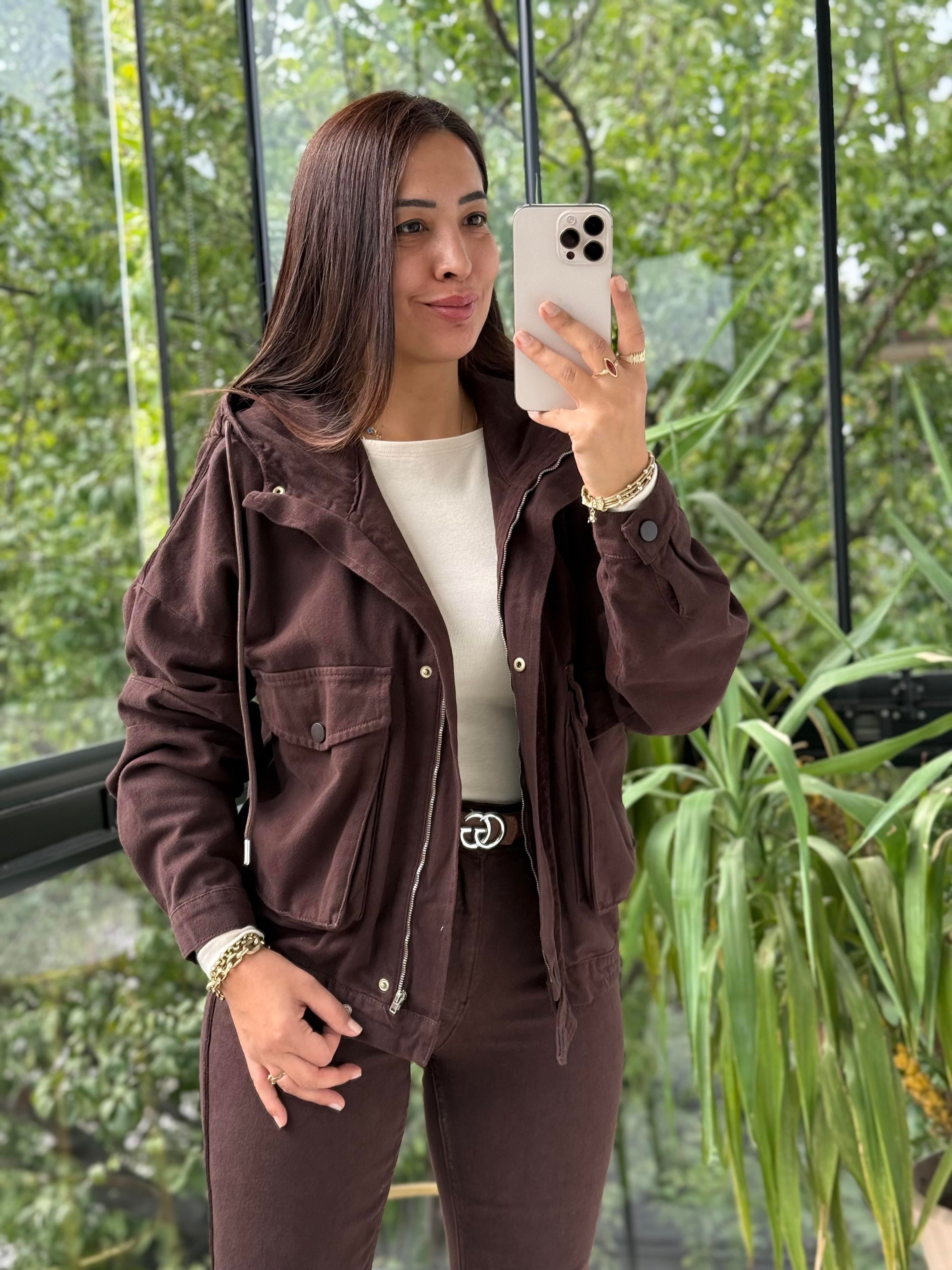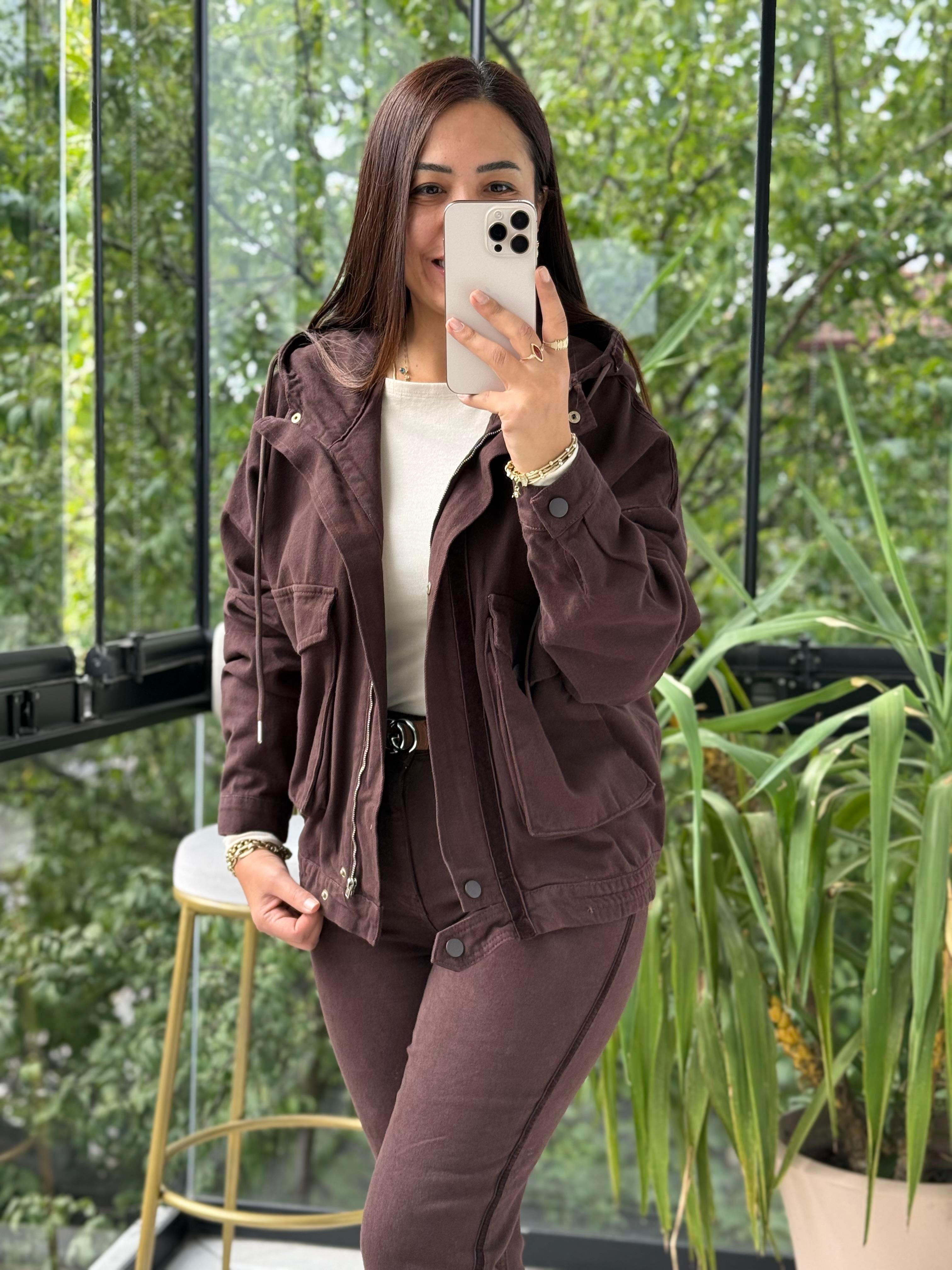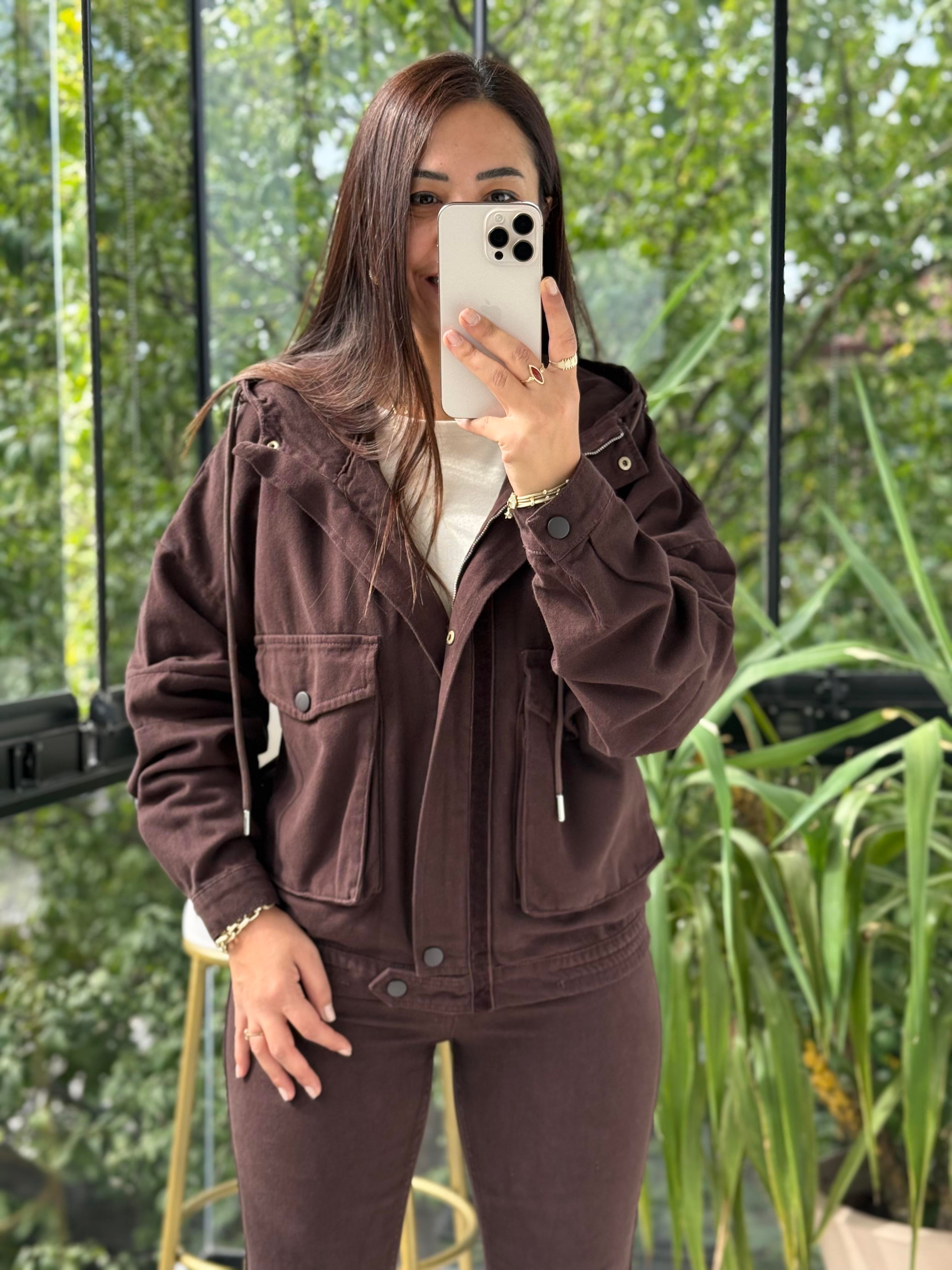 Kapüşonlu Kot Ceket Kahve Kapüşonlu Kot Ceket Camel