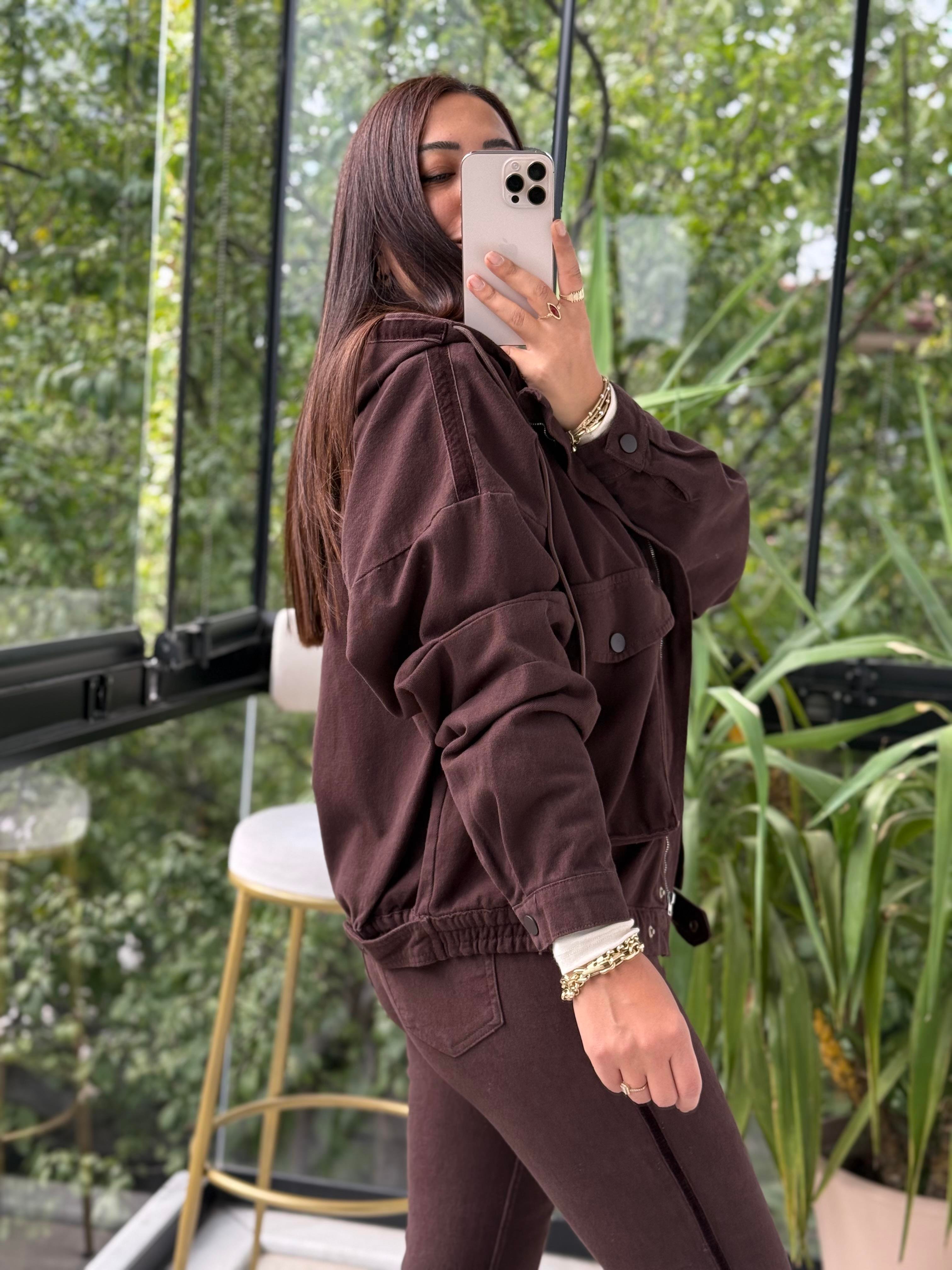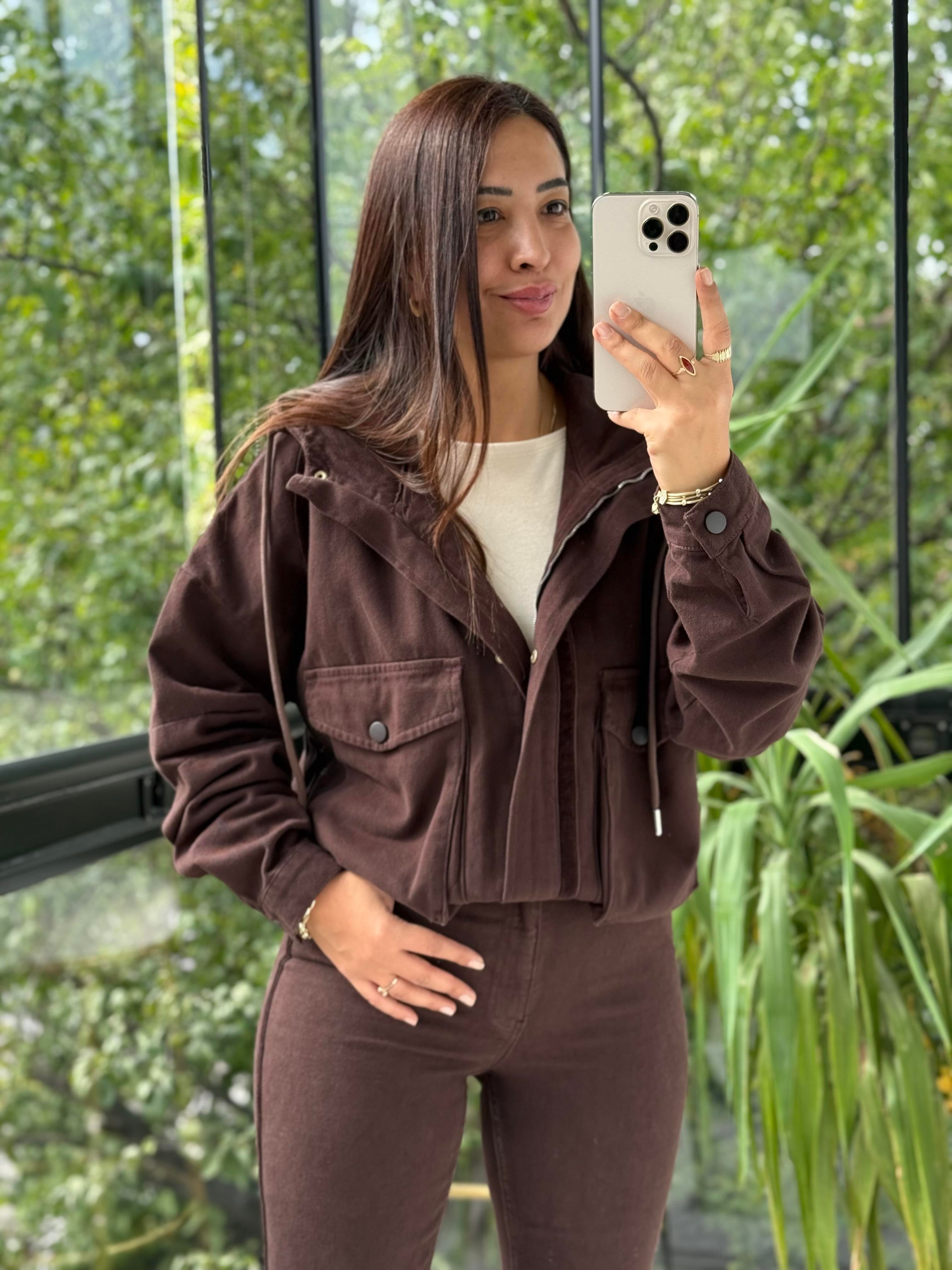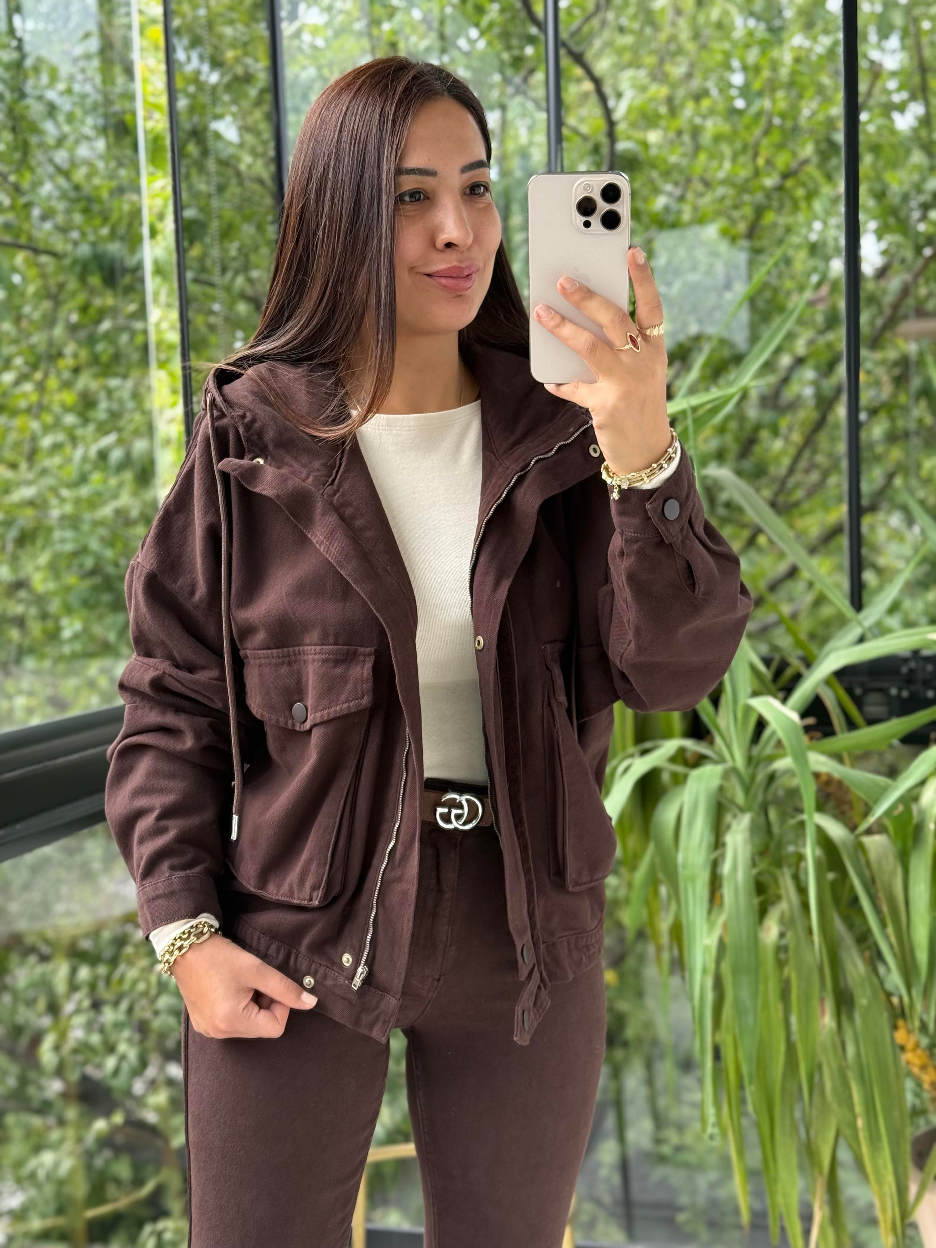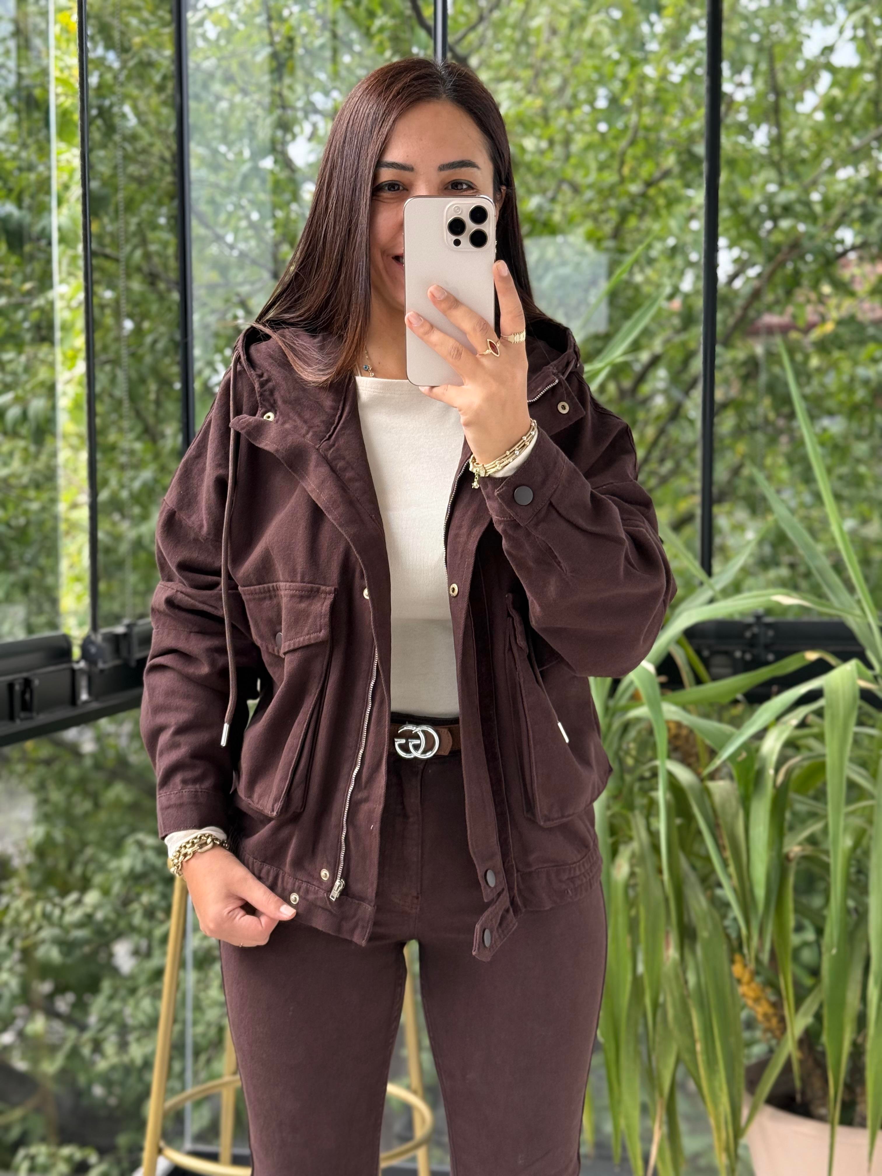 Kapüşonlu Kot Ceket Kahve Kapüşonlu Kot Ceket Camel