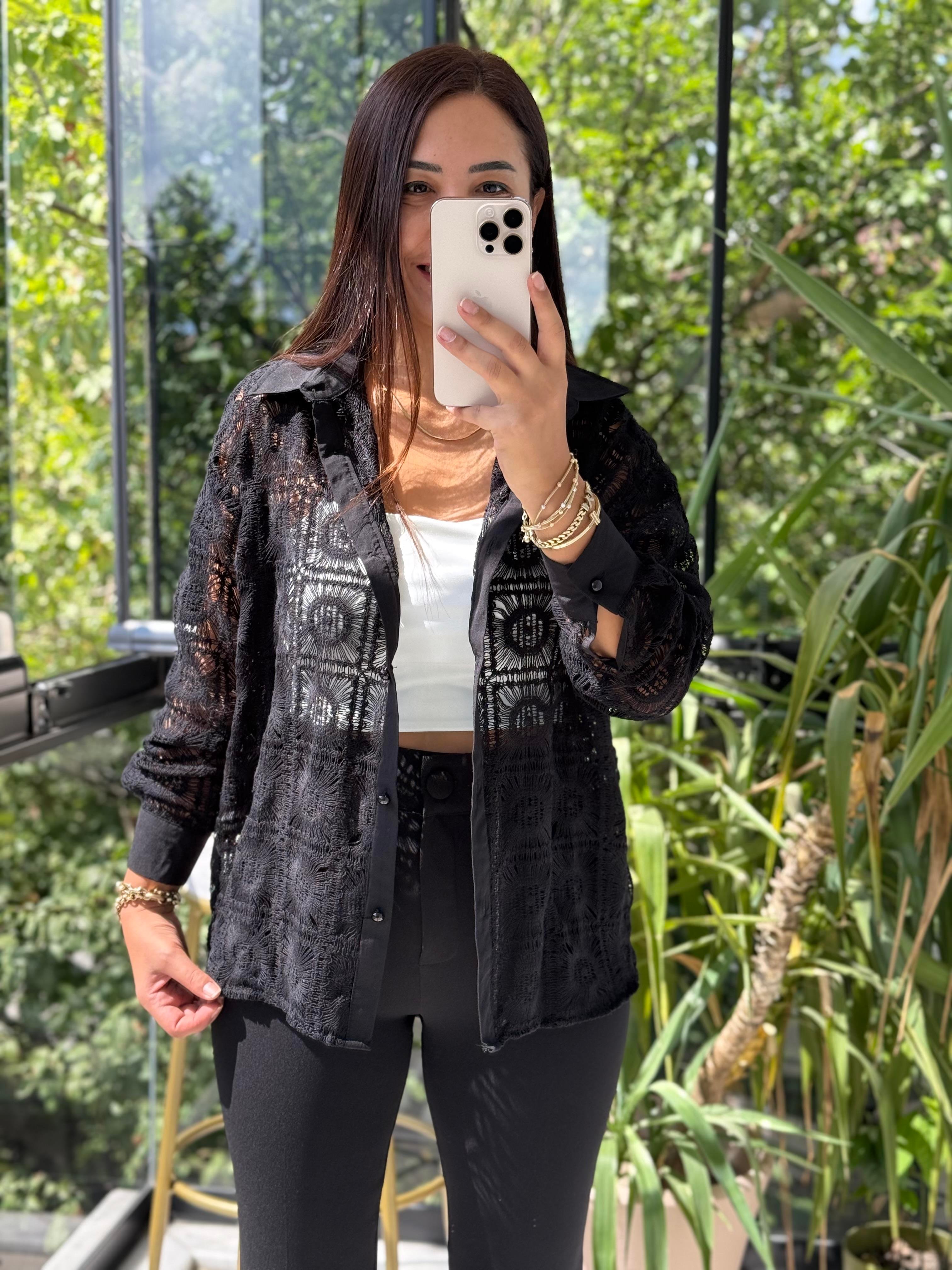 Kare Dantelli Gömlek Siyah Kare Dantelli Gömlek Beyaz