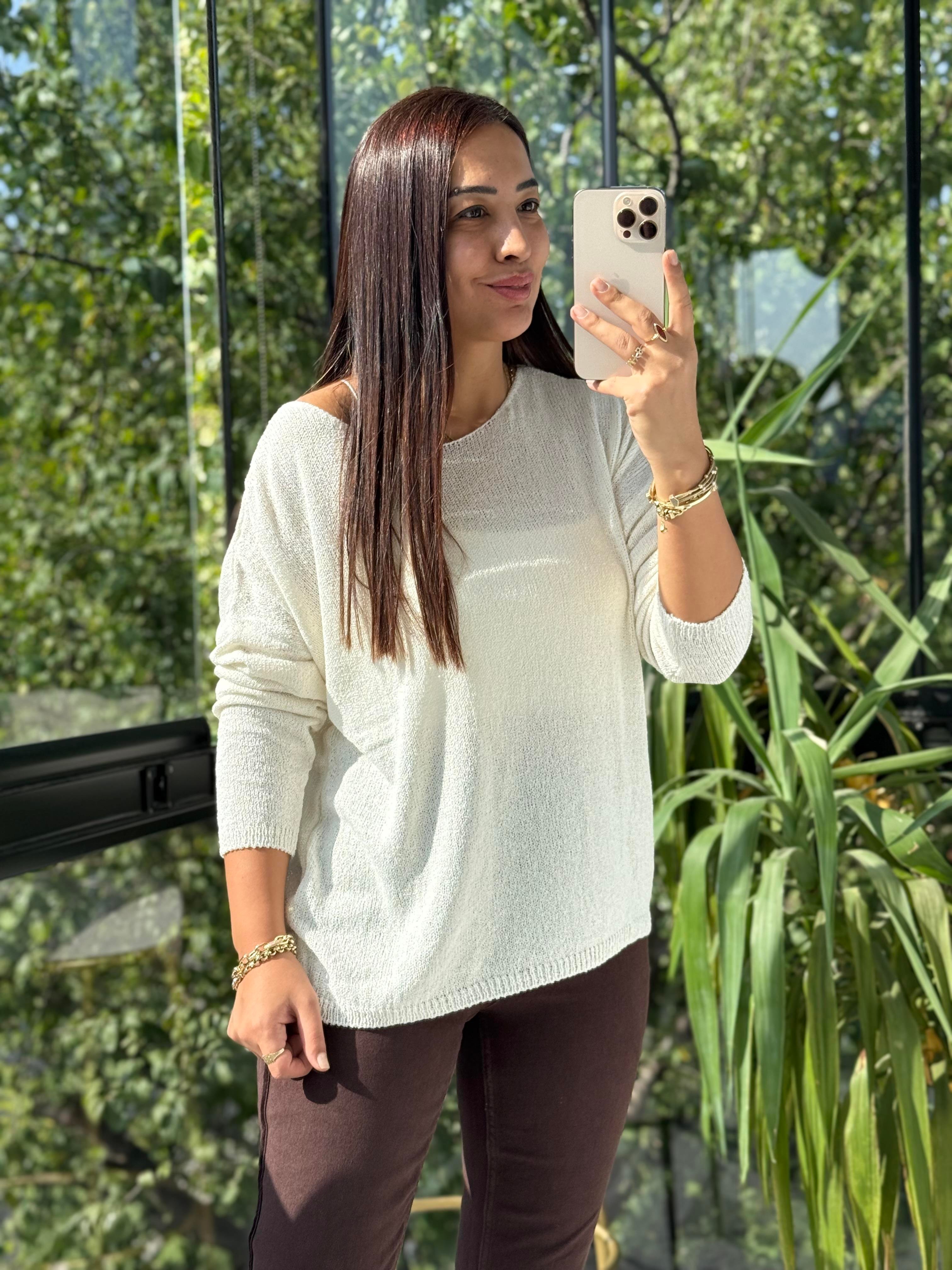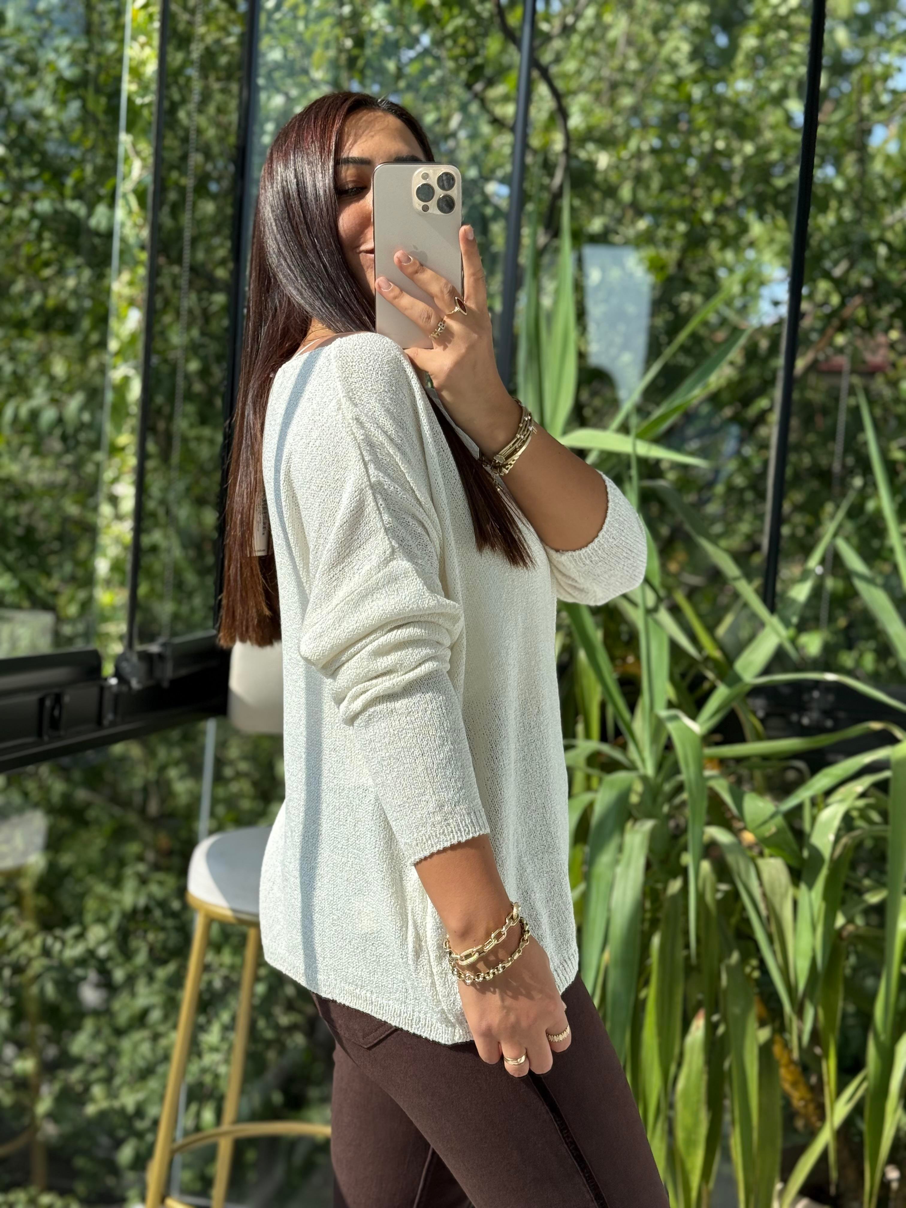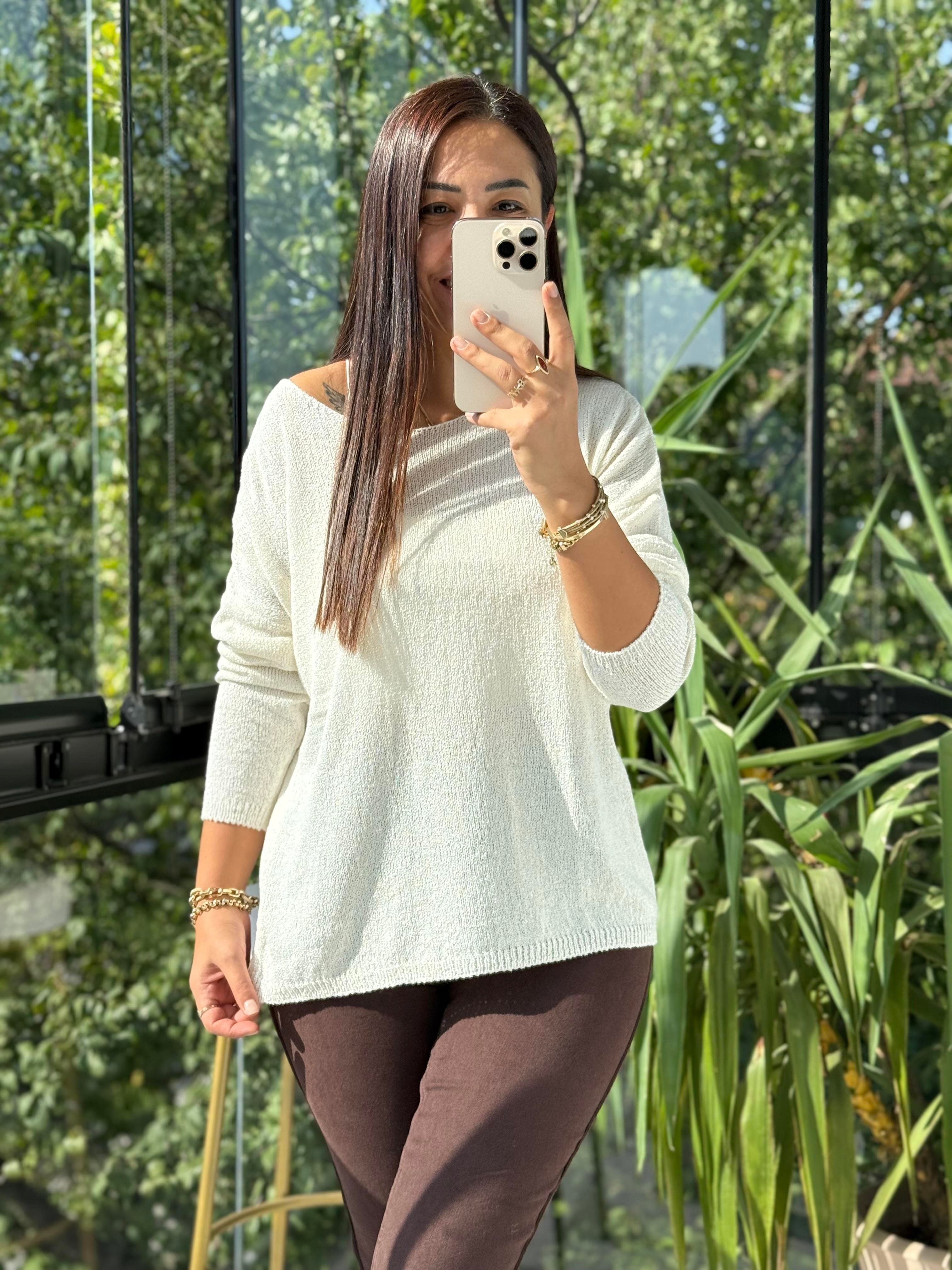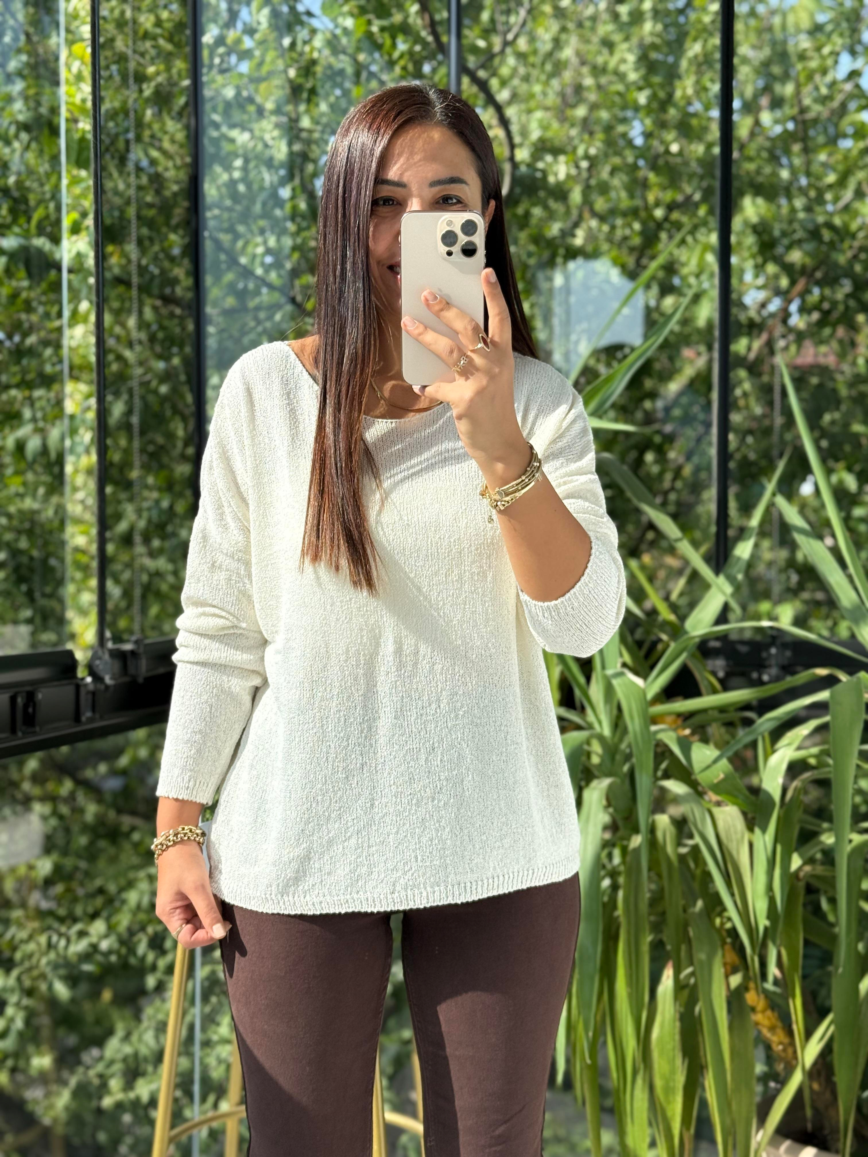 Kayık Yaka İnce Triko Ekru