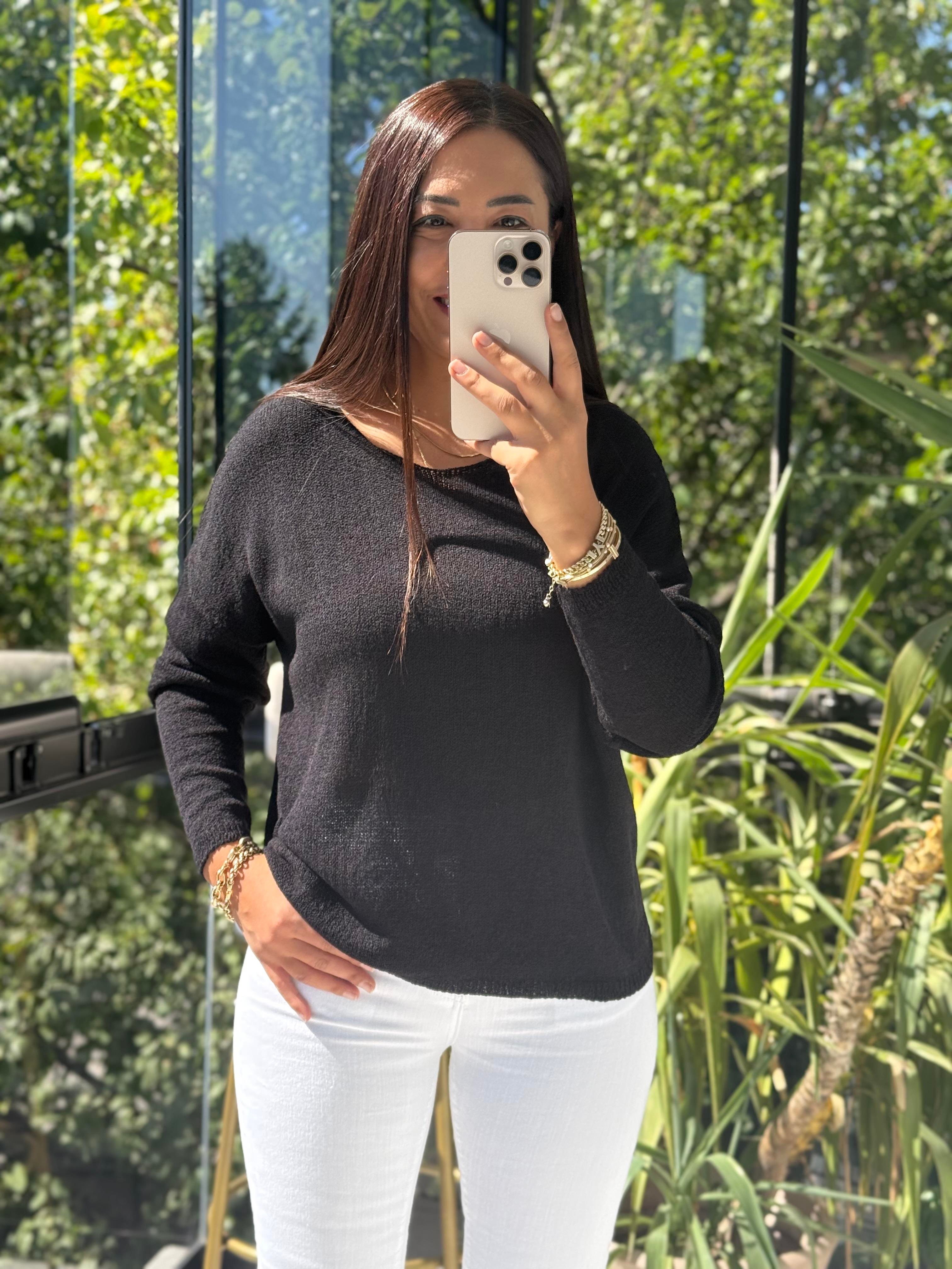 Kayık Yaka İnce Triko Siyah