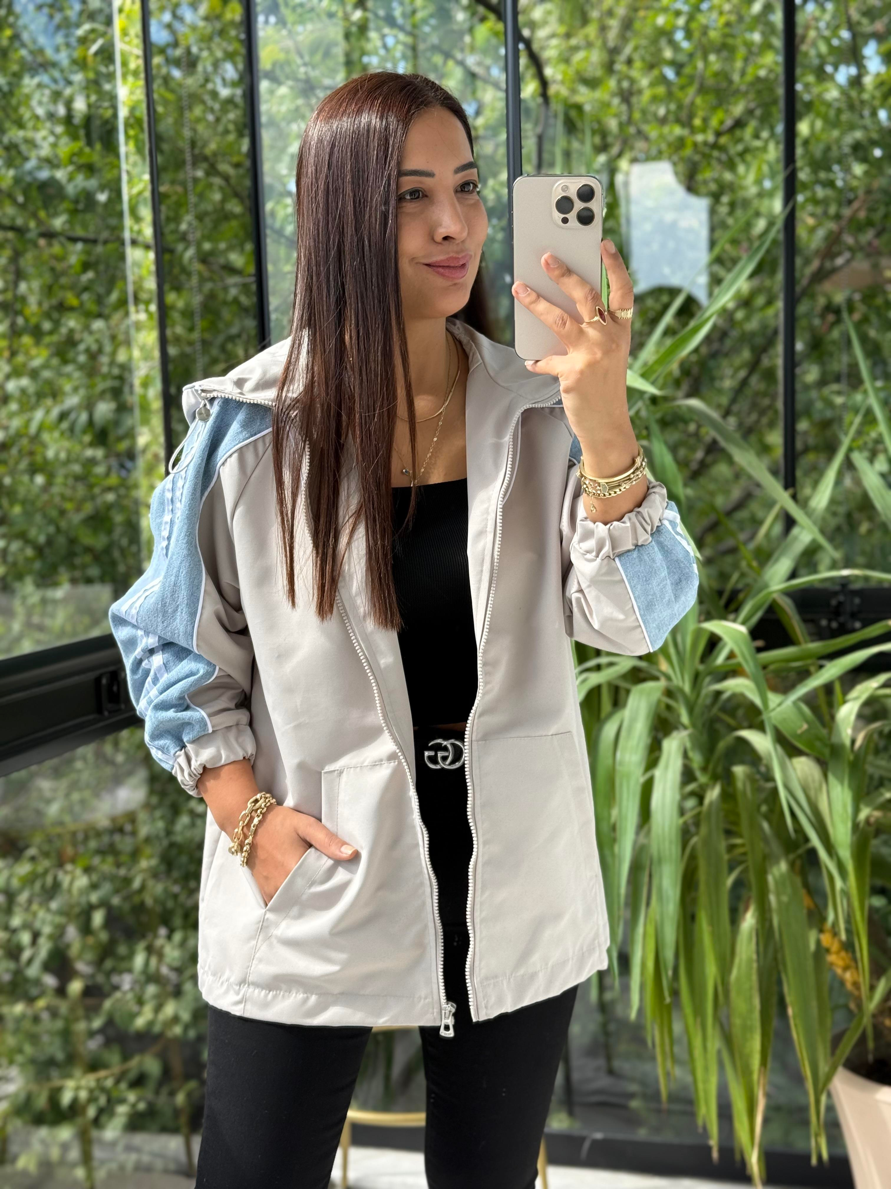 Kolu Çizgili Mix Yağmurluk Taş Kolu Çizgili Mix Yağmurluk Siyah