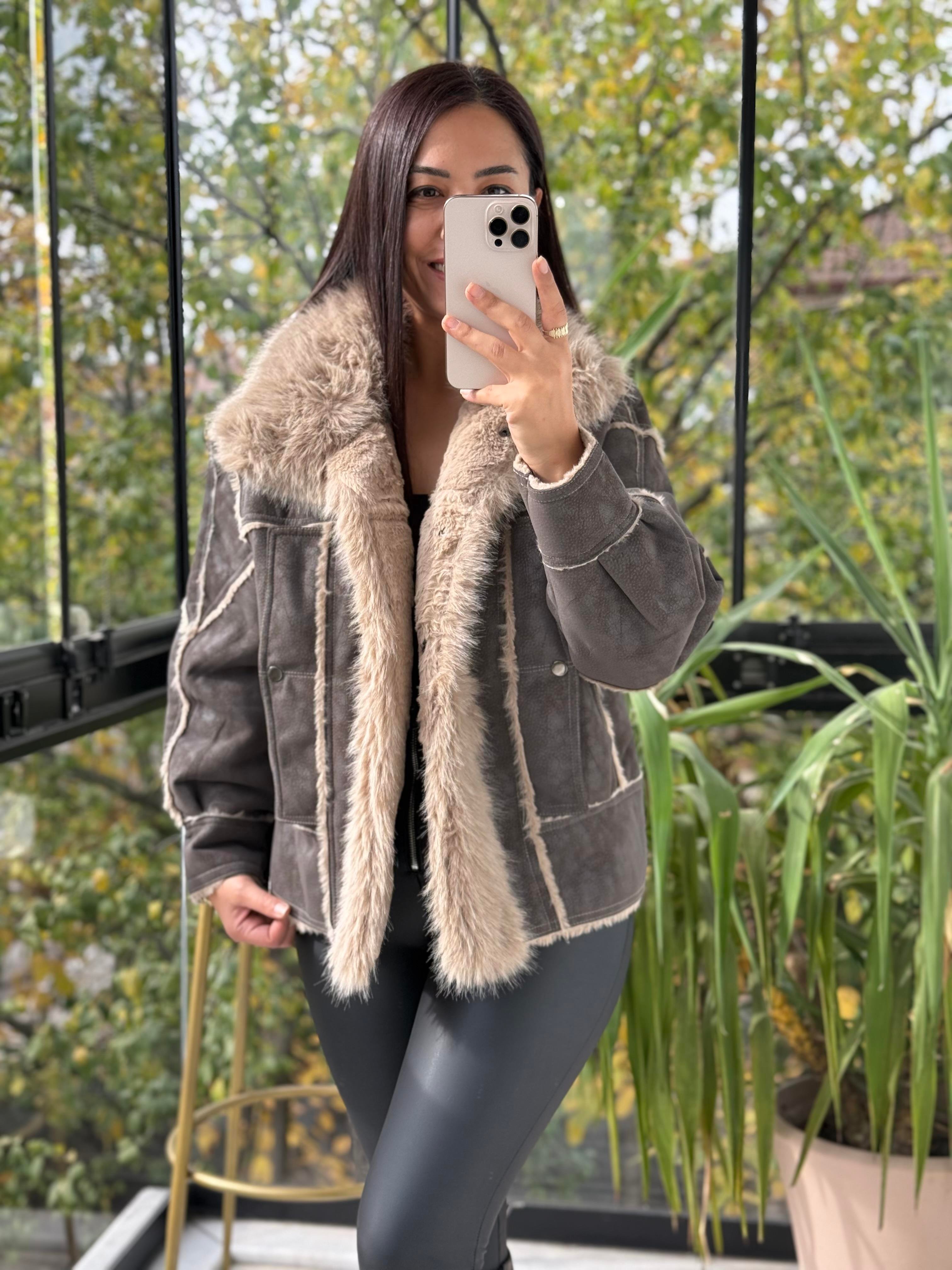 Kürk Detaylı Nubuk Mont Kahve Kürk Detaylı Nubuk Mont Koyu Kahve