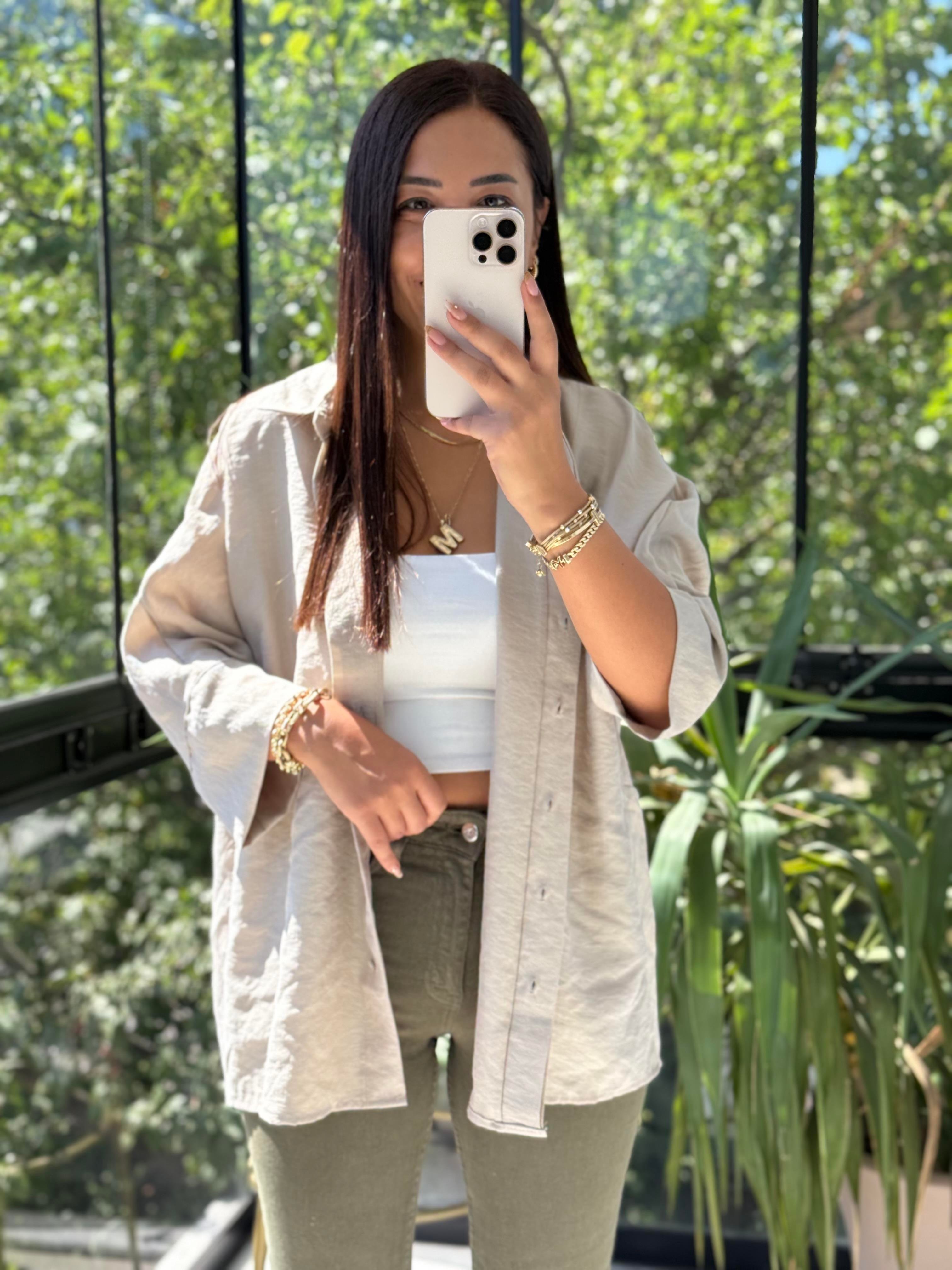 Lüx Seri Oversize Gömlek Bej