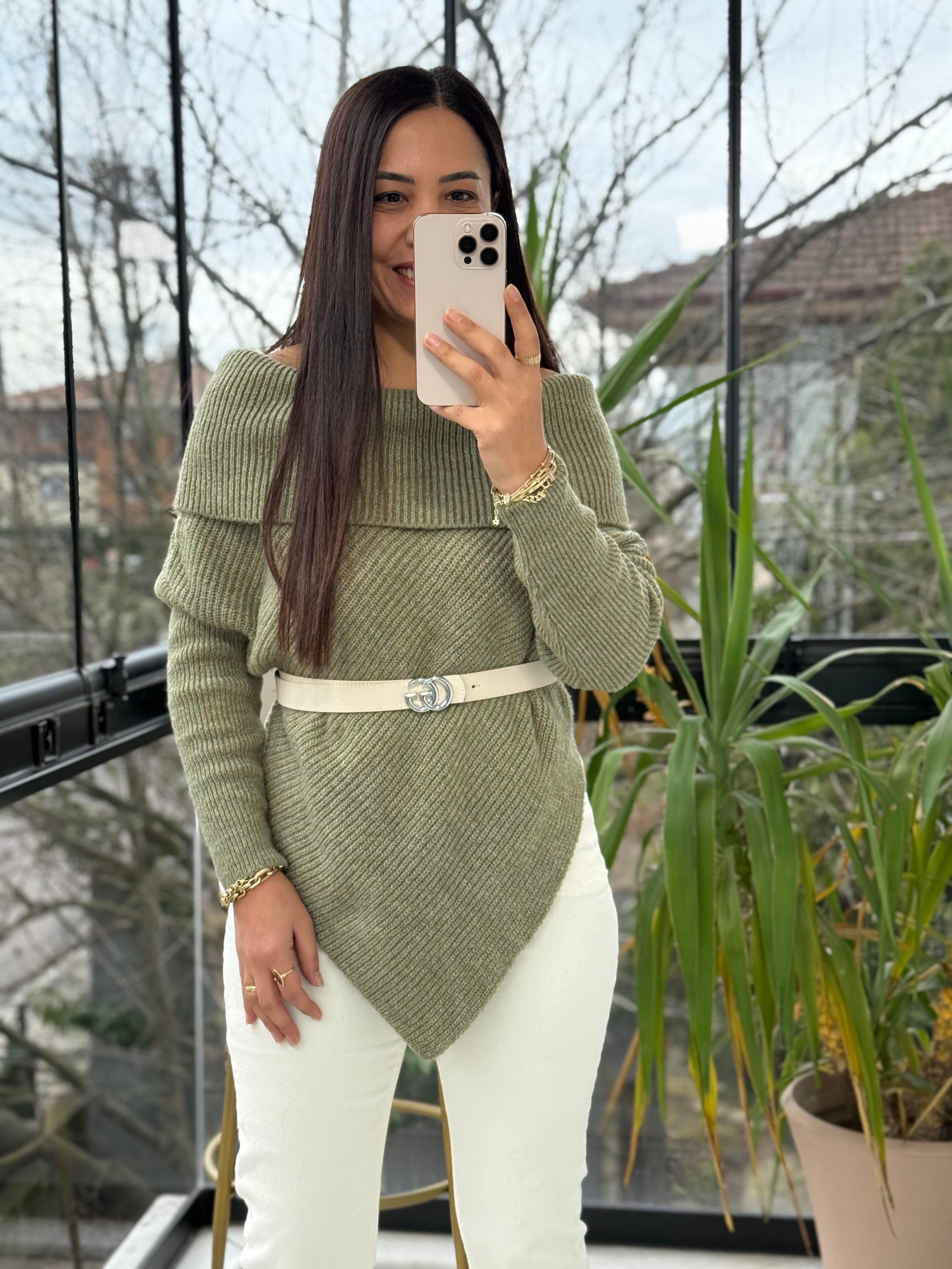 Madonna Yaka Asimetrik Kazak Vizon Madonna Yaka Asimetrik Kazak Krem Madonna Yaka Asimetrik Kazak Açık Yeşil Madonna Yaka Asimetrik Kazak Gri