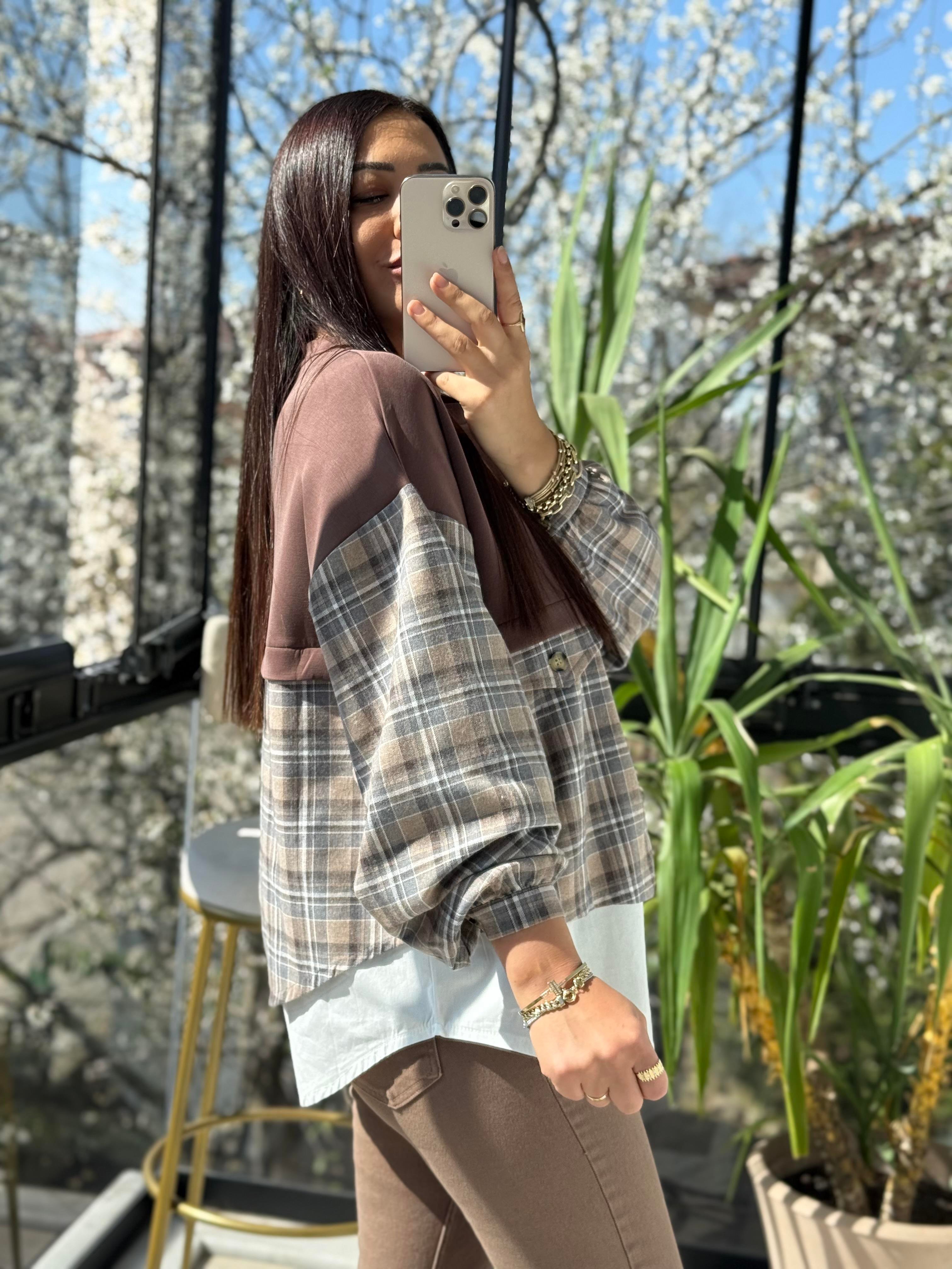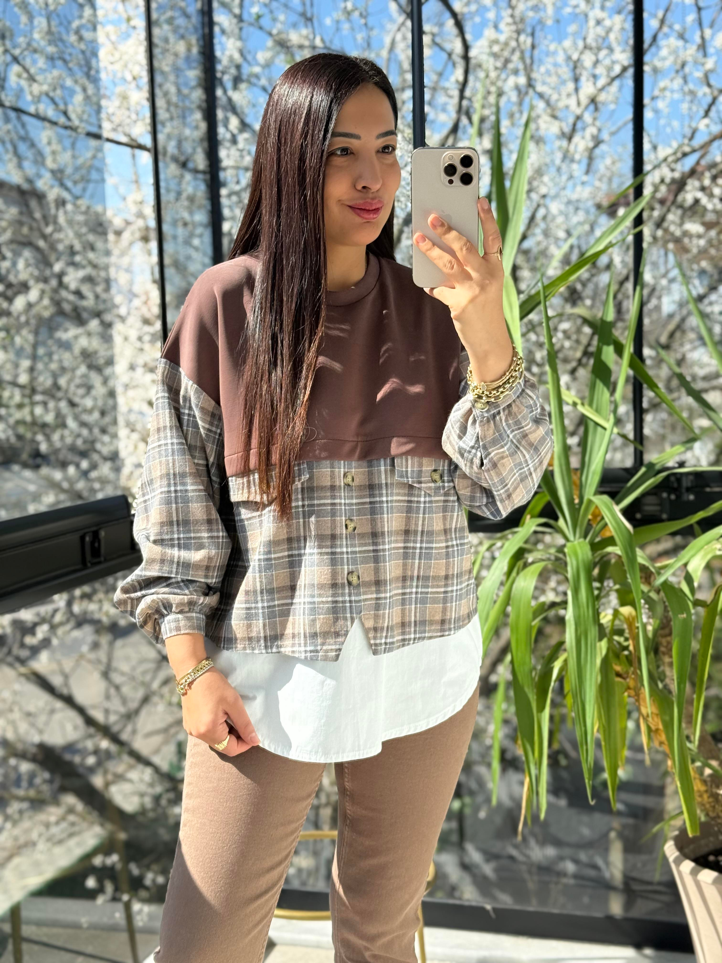 Mix kumaş Sweat Gömlek Siyah Mix kumaş Sweat Gömlek Kahve