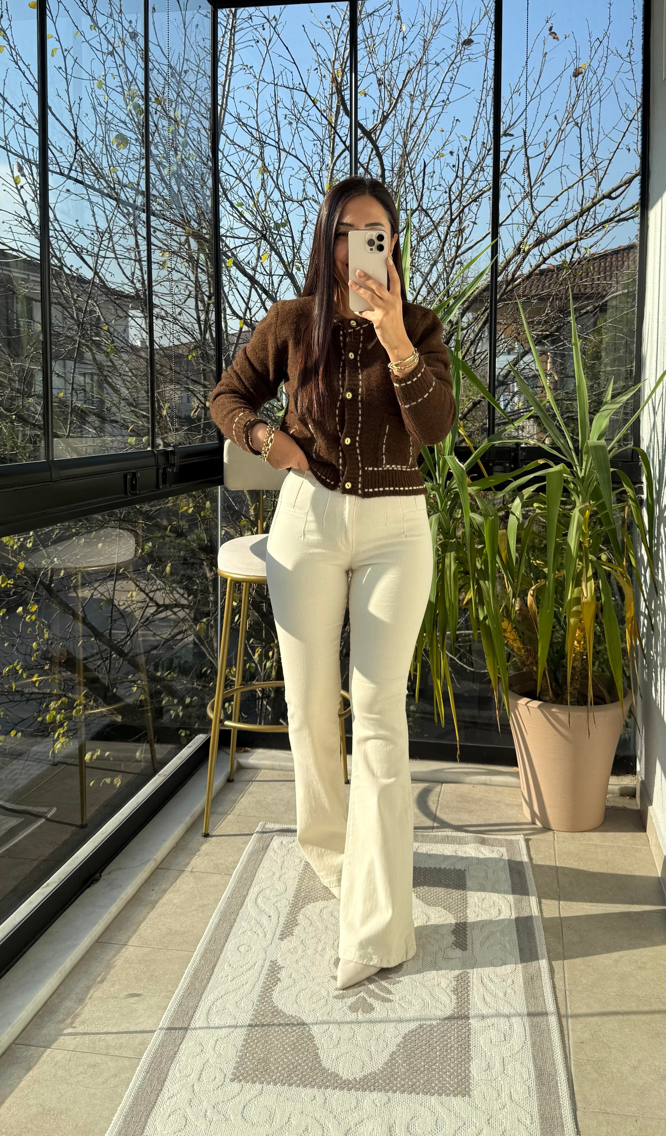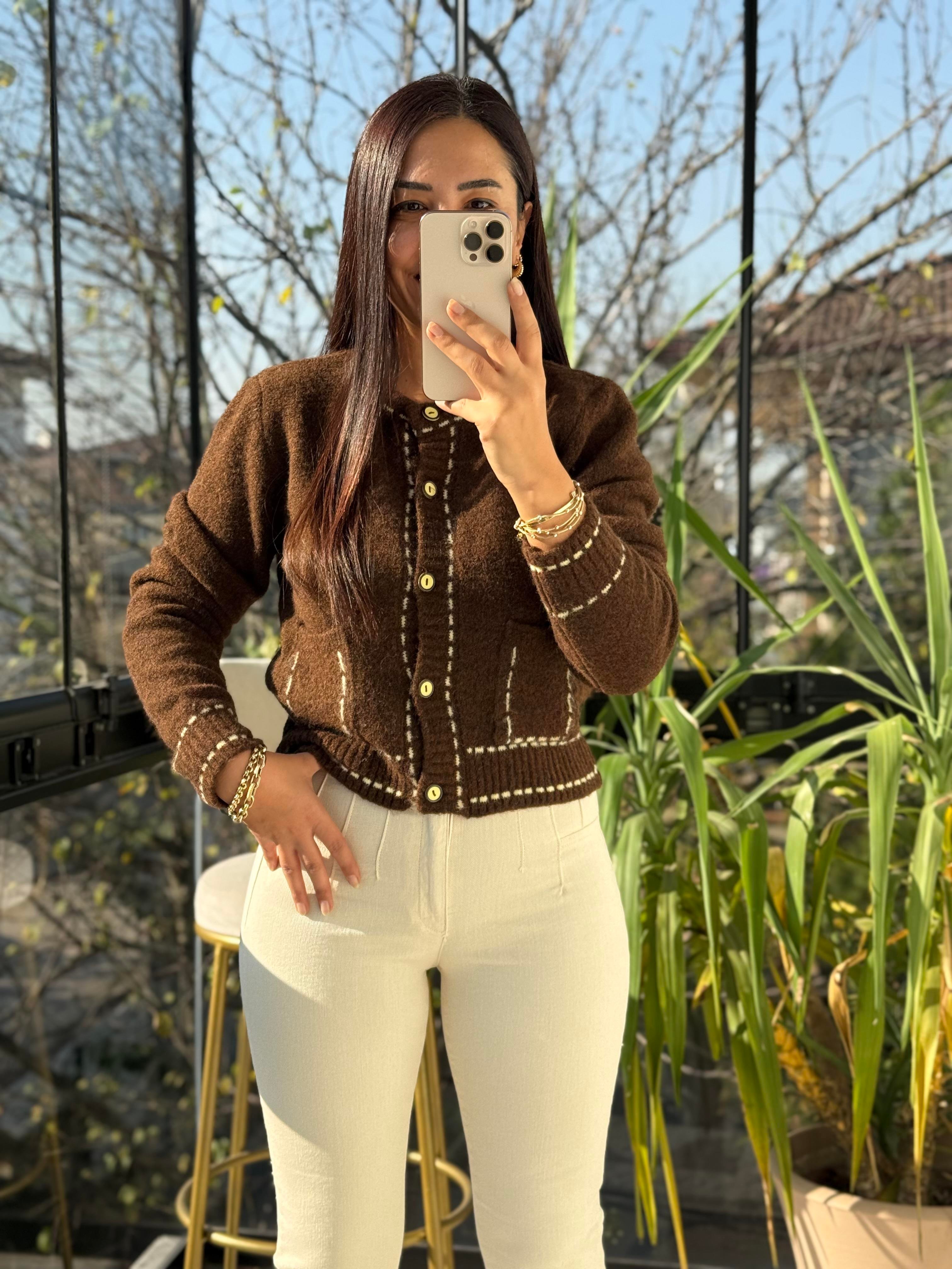 Önü Cep Detaylı Kısa Hırka Kahve Önü Cep Detaylı Kısa Hırka Bej