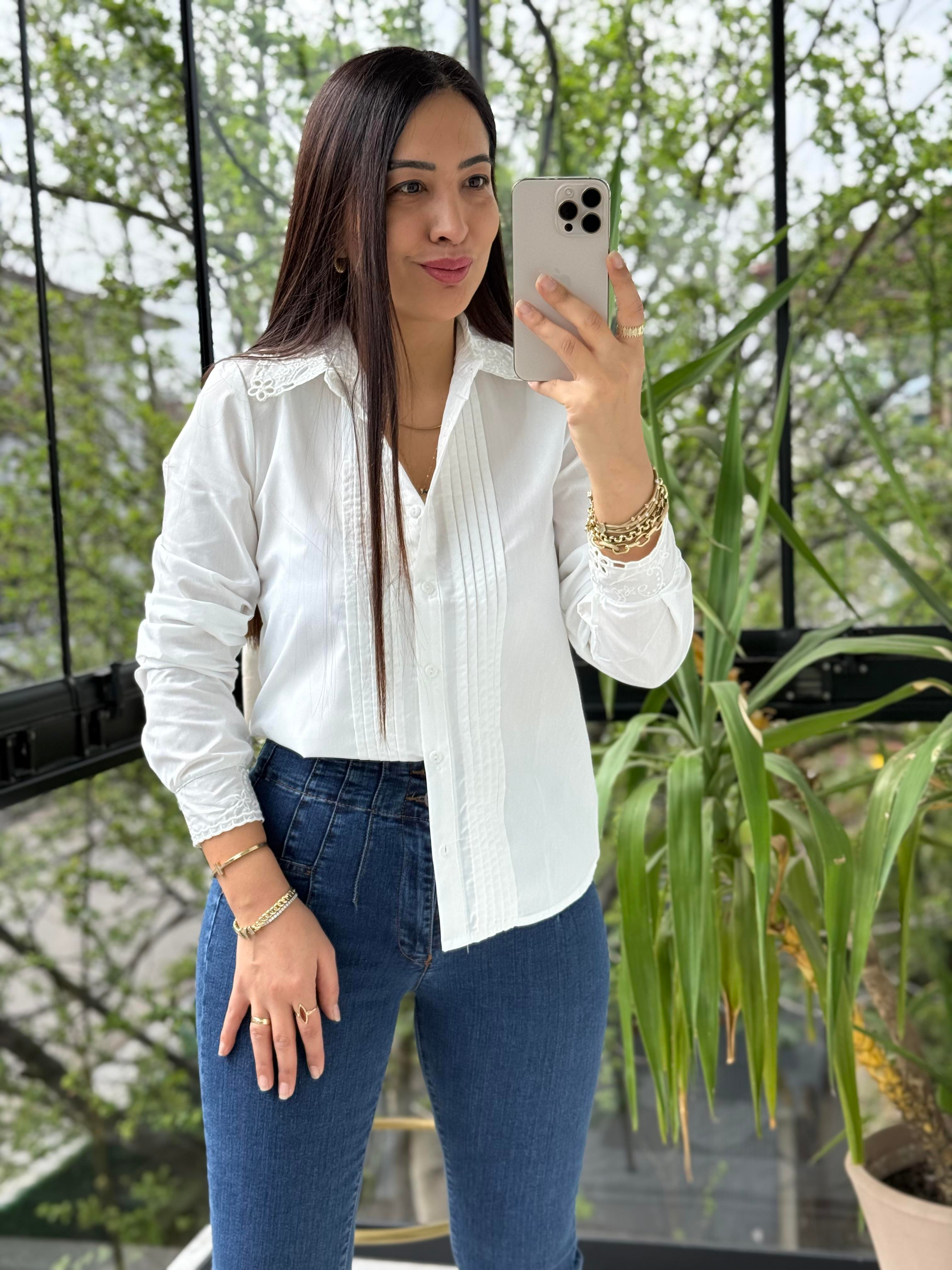 Paris Dantel Yakalı Gömlek Beyaz