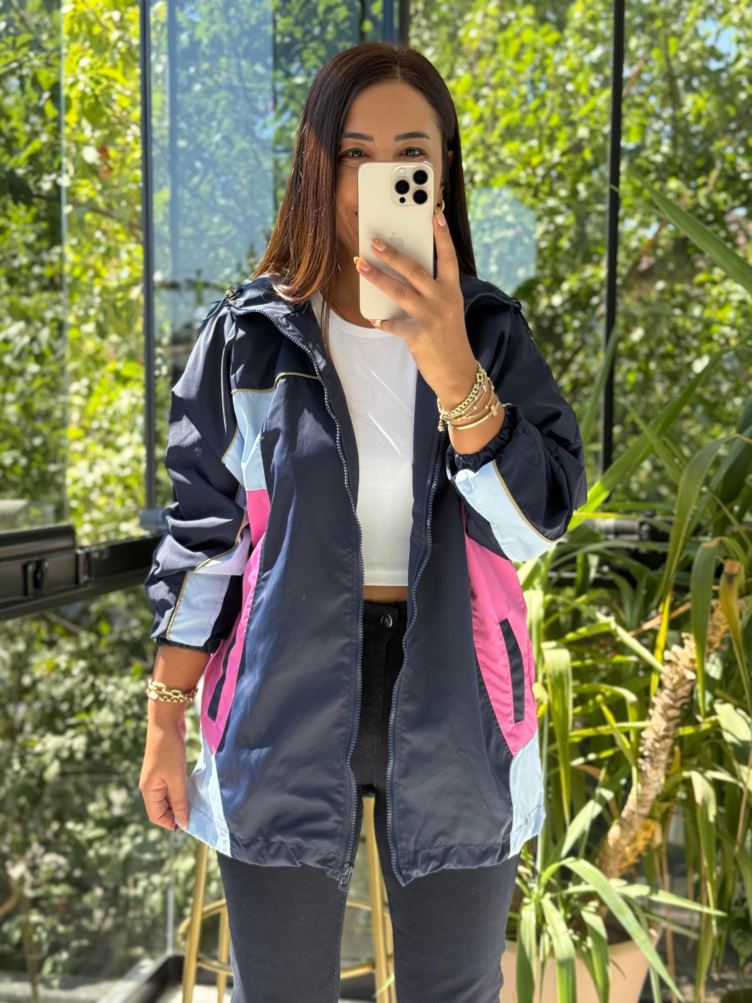 Renk Bloklu Yağmurluk Taş Renk Bloklu Yağmurluk Lacivert