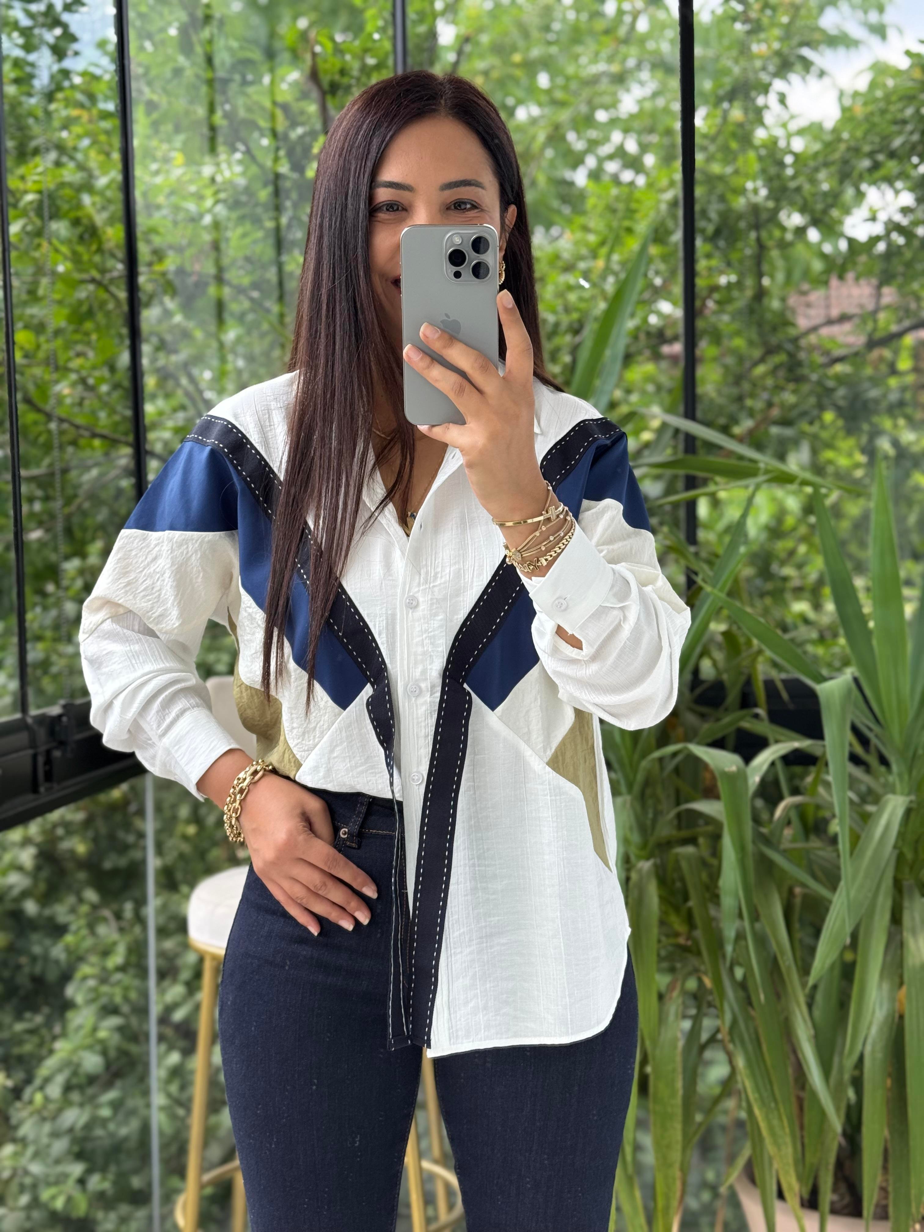 Şerit Detaylı Tasarım Gömlek Beyaz