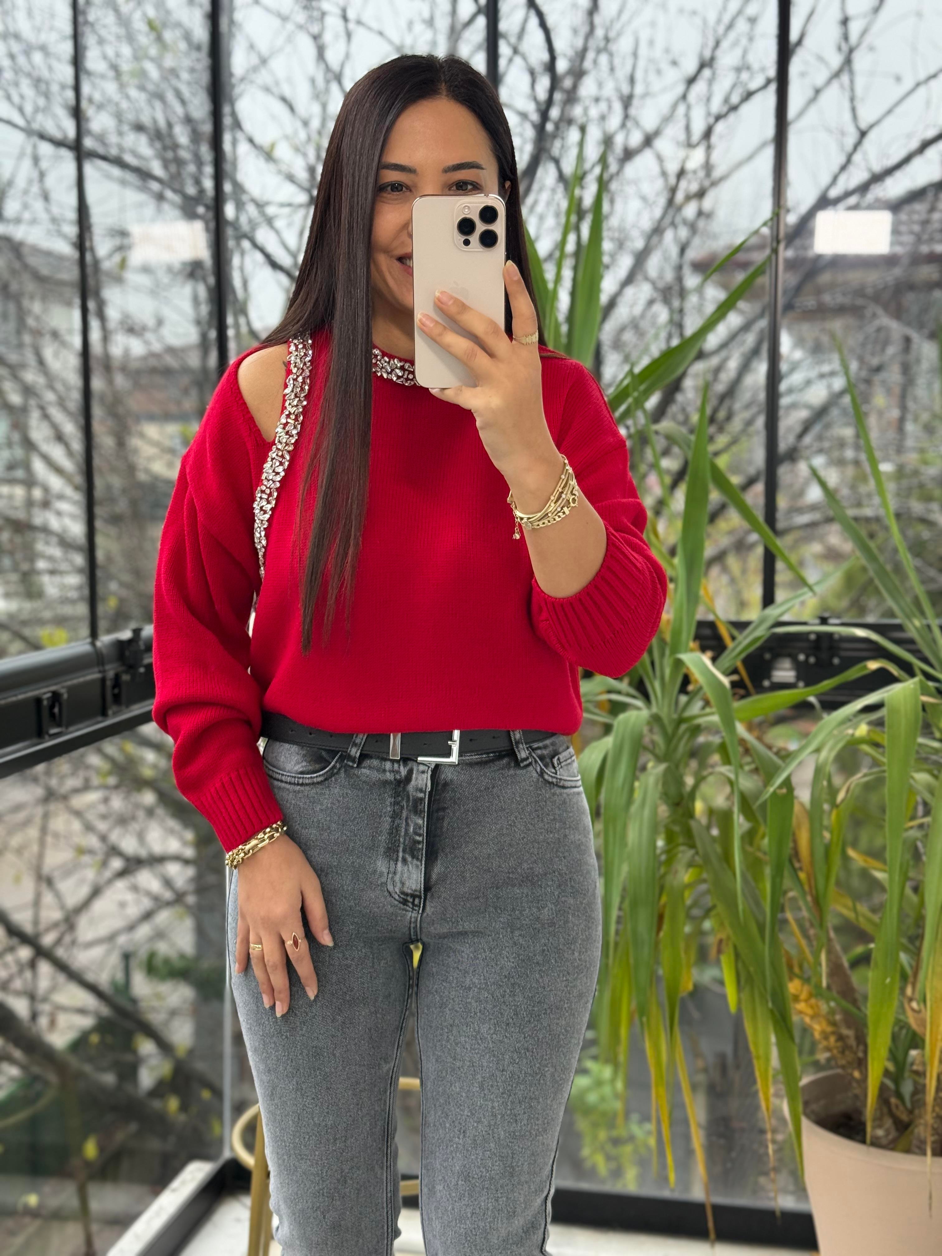 Taş Şerit işleme Cut Aut Kazak Kırmızı