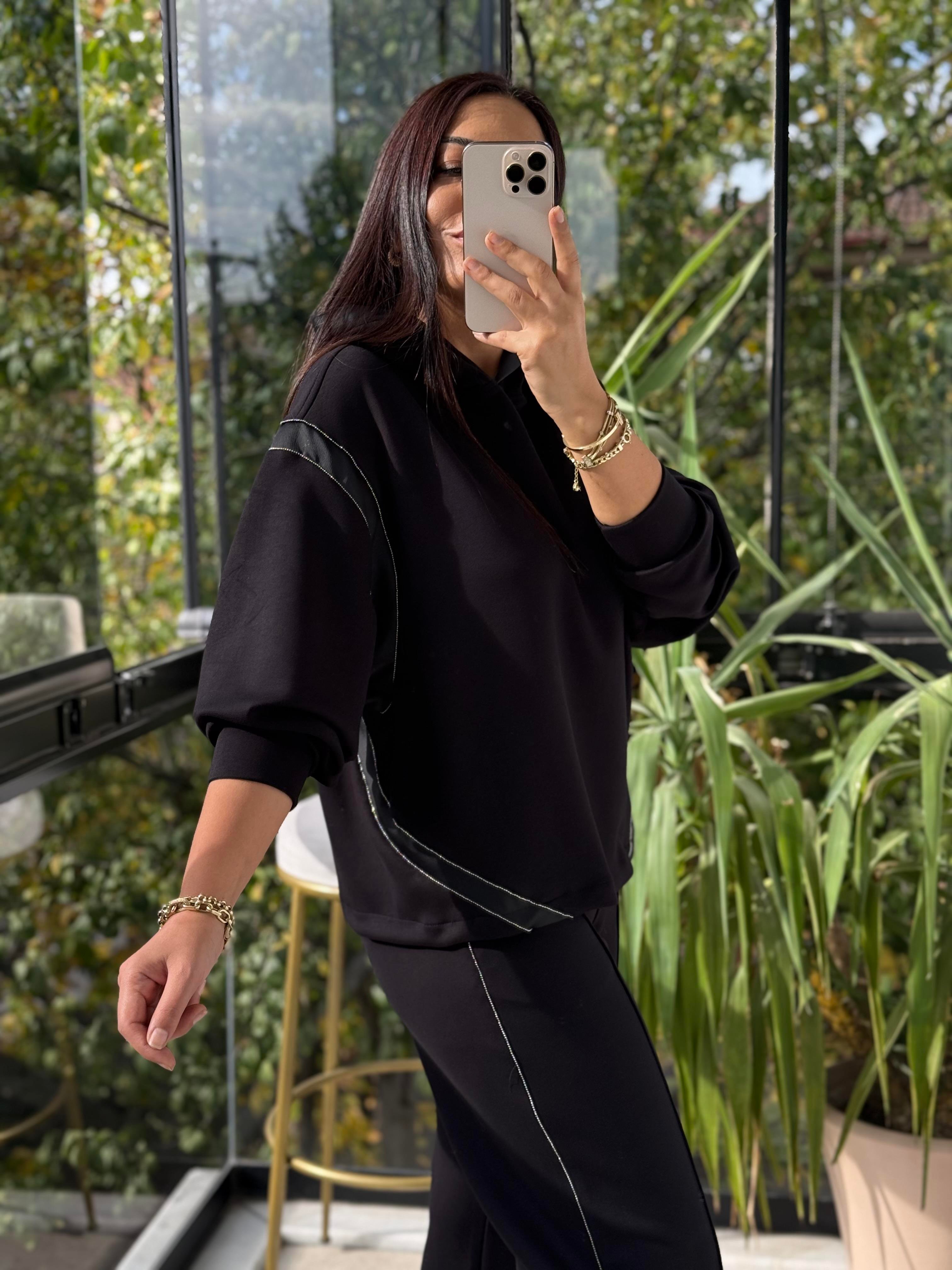 Taşlı Şeritli Takım Mürdüm Taşlı Şeritli Takım Lacivert Taşlı Şeritli Takım Siyah