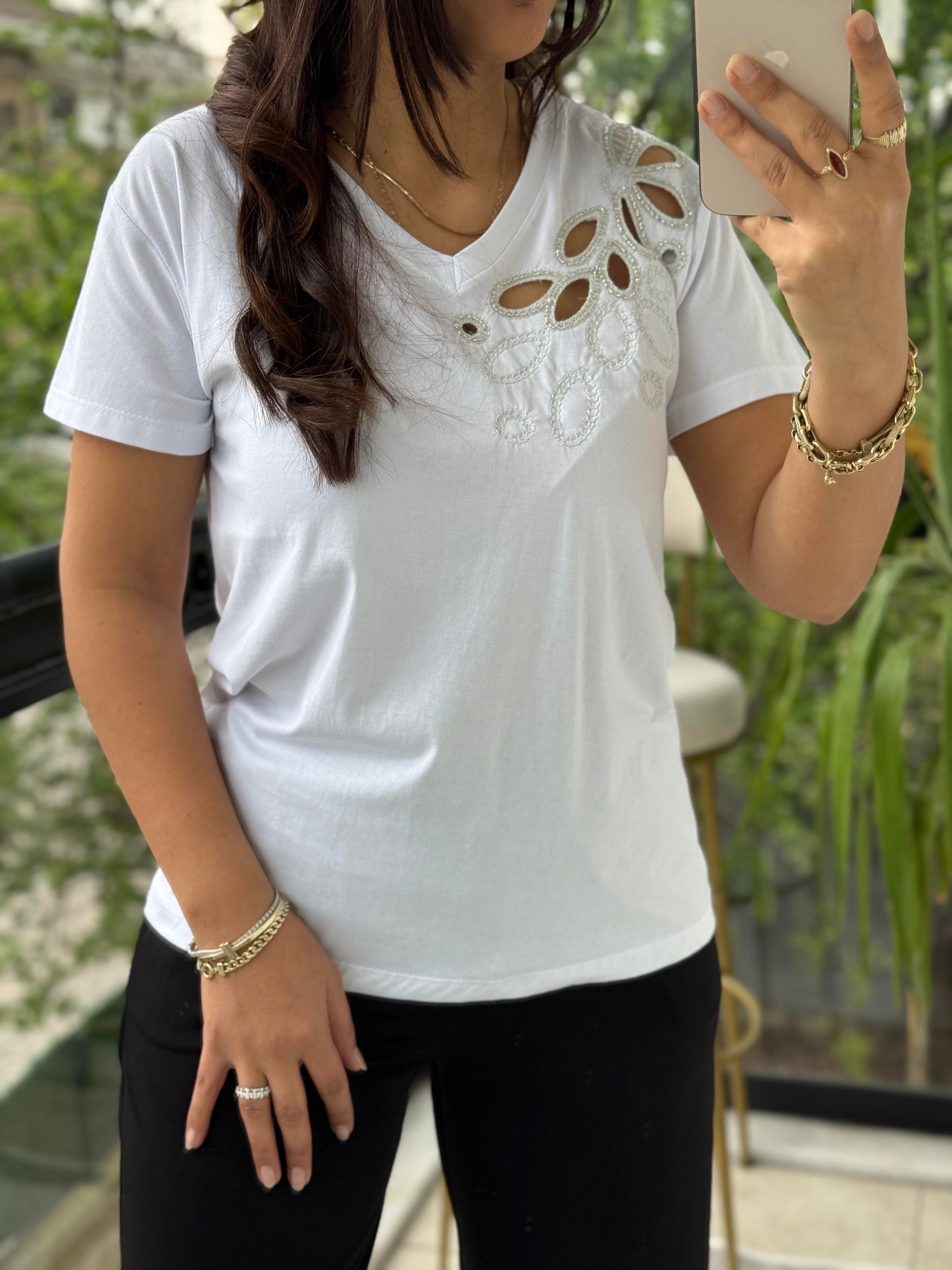 Tek Omzu Lazerli Boncuklu Beyaz